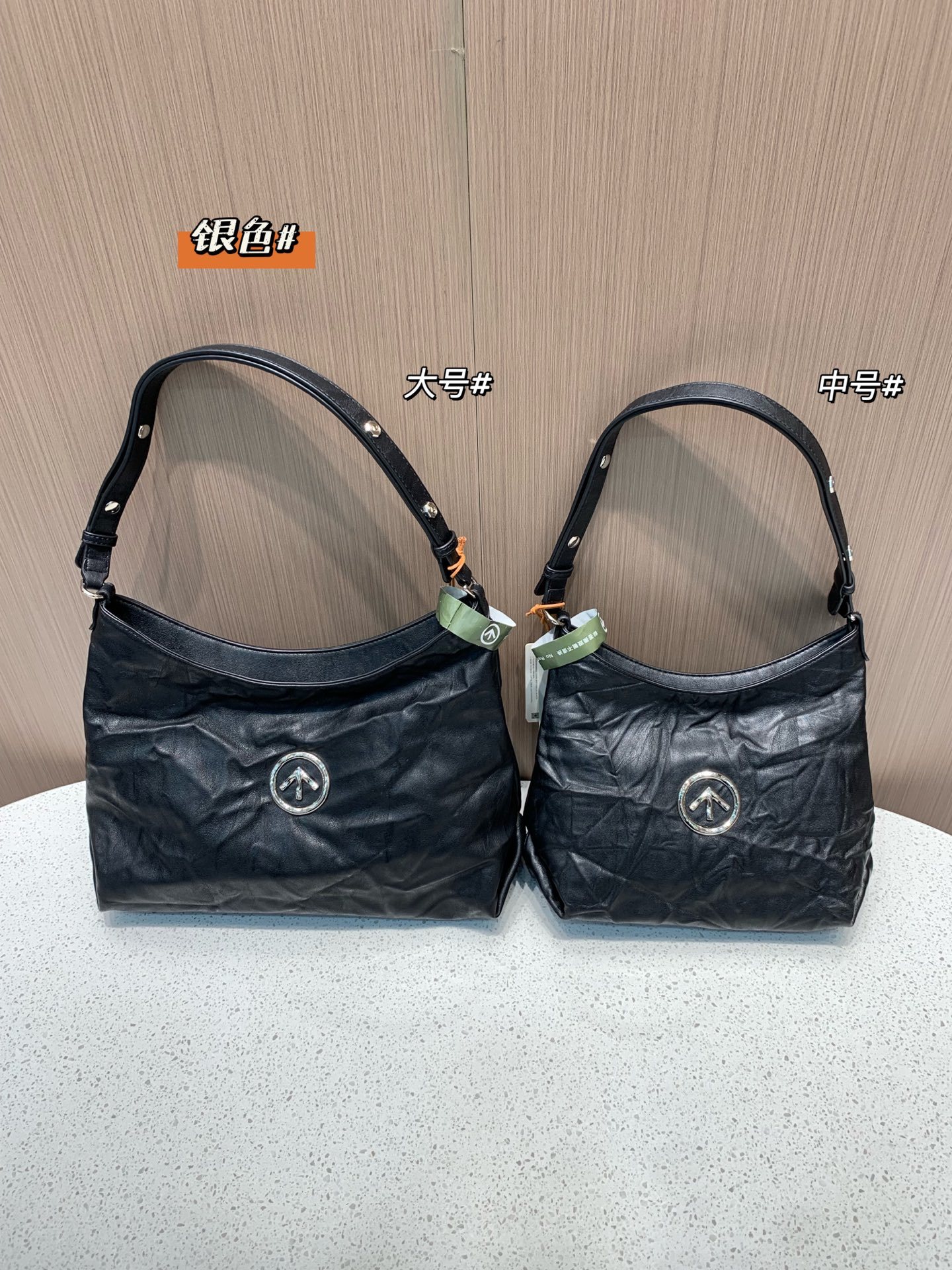 GROTT*|个乐黑石hobo包】来了哈,金色、银色两个颜色,大号和中号两个尺寸咱们都在了,戚薇、陈立农、马伯骞等等众明星都在背!咱们独家渠道,整批都是Y版的工艺哈,3D立体褶皱的皮料太有辨识度了,小众设计,简约高级
