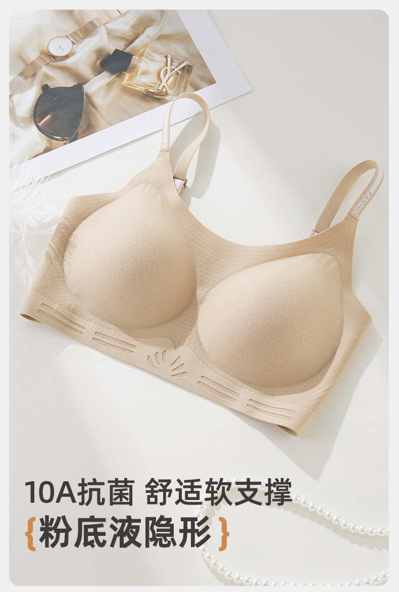 雅黛俪背心式女士内衣隐形肤无痕全罩杯聚拢美背文胸罩10A级抑菌