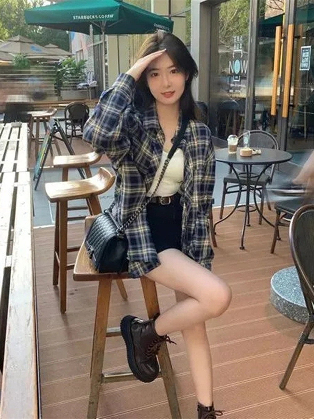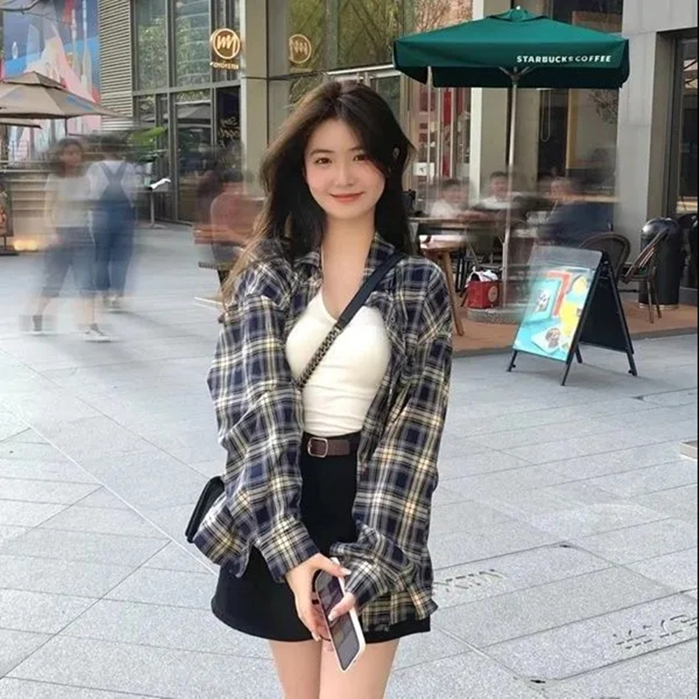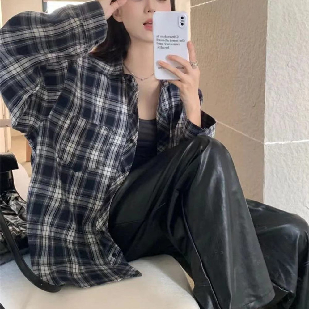 【秋季新款❗️慵懒风长袖衬衣】柔软舒适,修身显瘦,超好看!格子衬衫外套女式春秋季宽松开衫女上衣