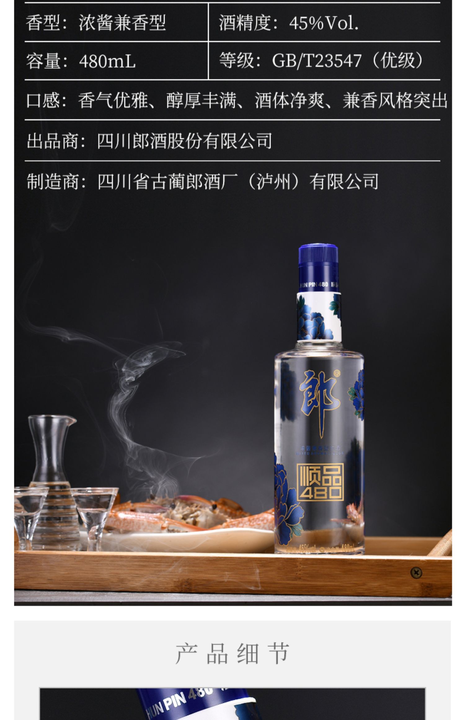 郎酒郎牌顺品郎蓝顺 兼香型白酒480ml(45度)