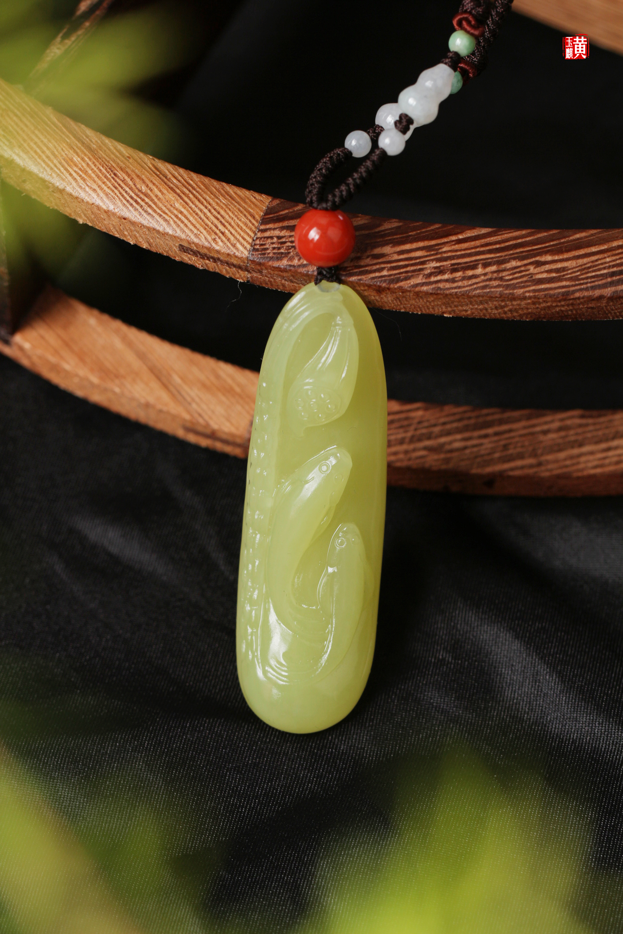 和田玉黄玉金鱼吊坠 【连年有鱼】 配精美编织挂绳