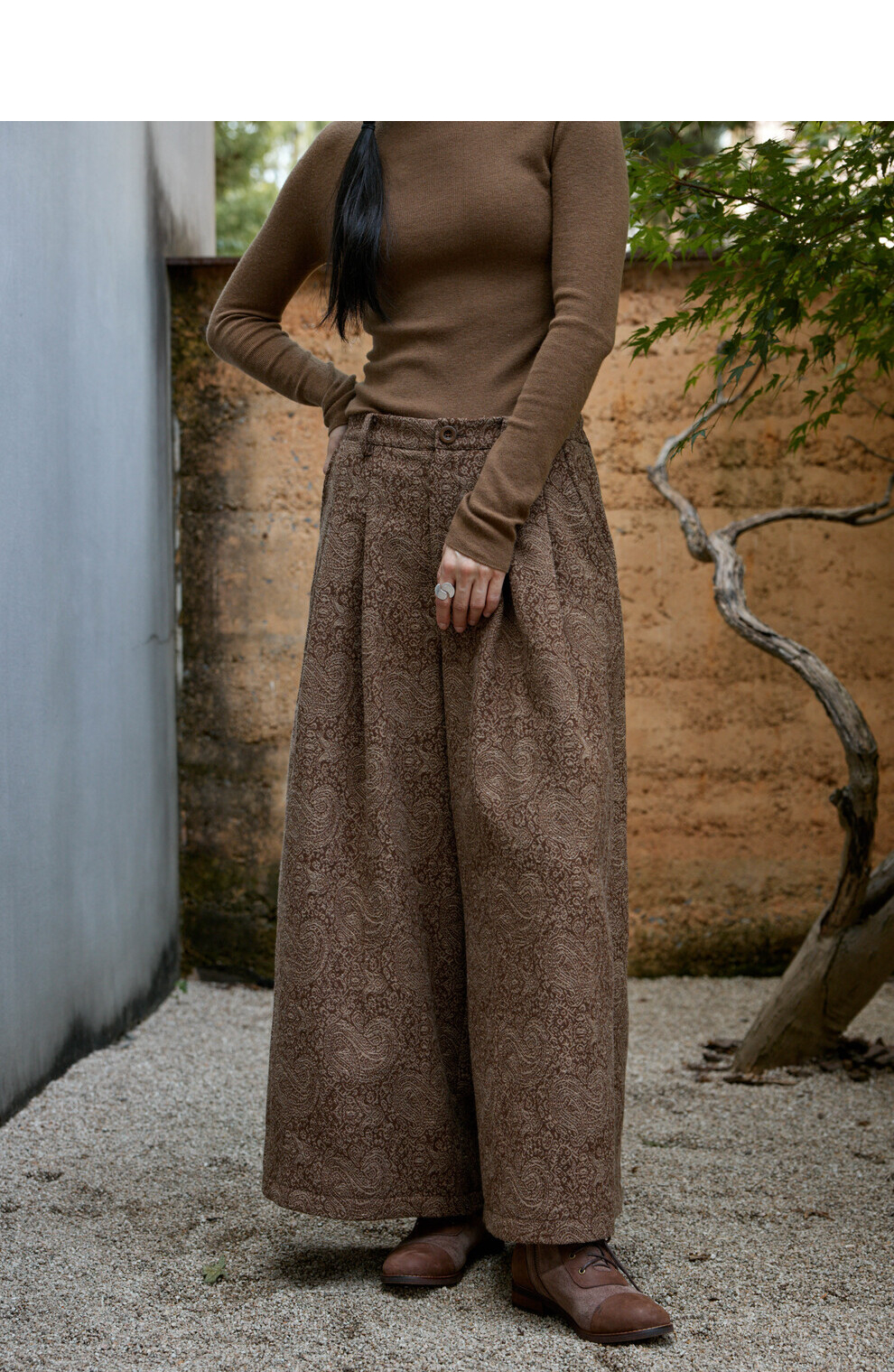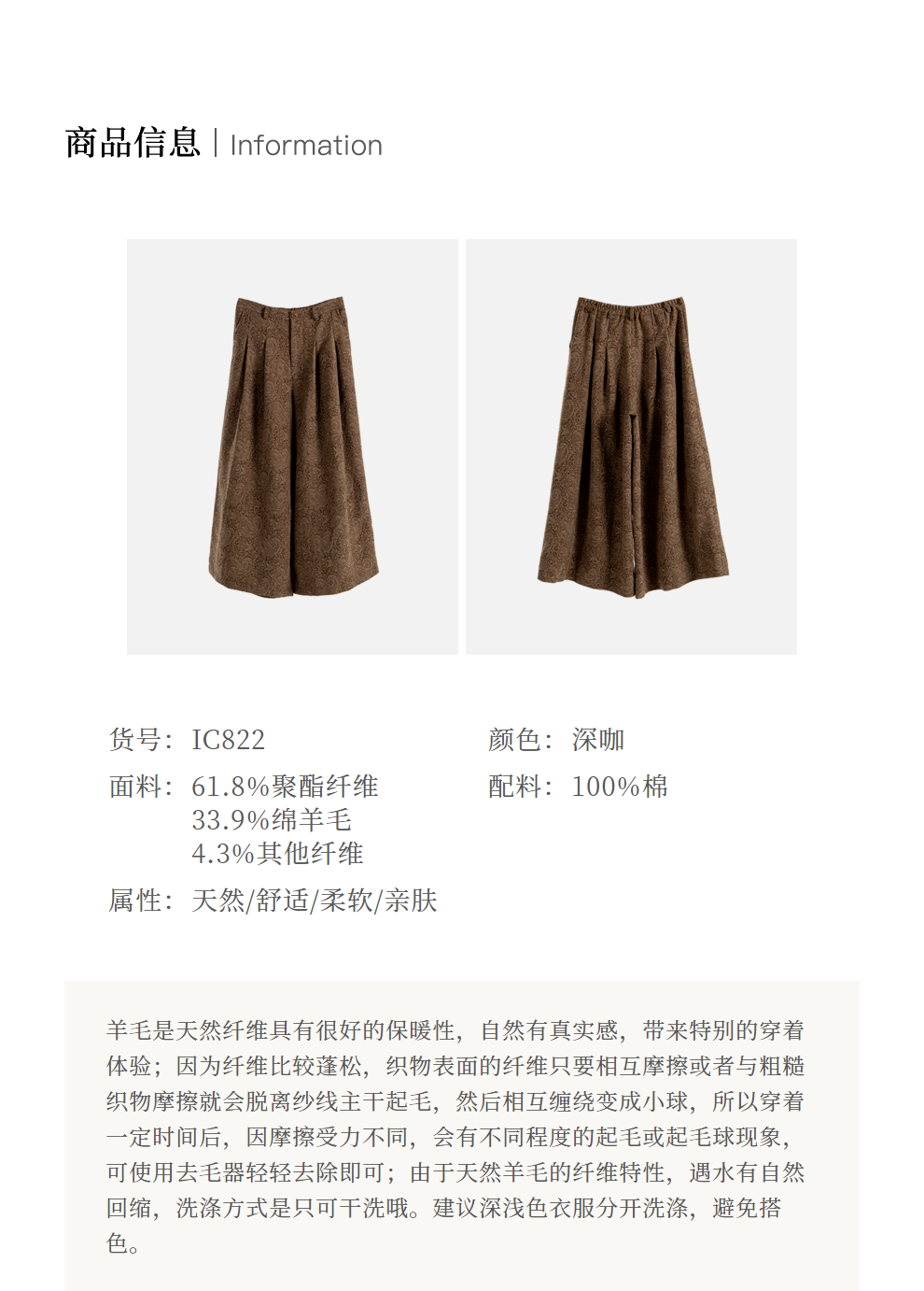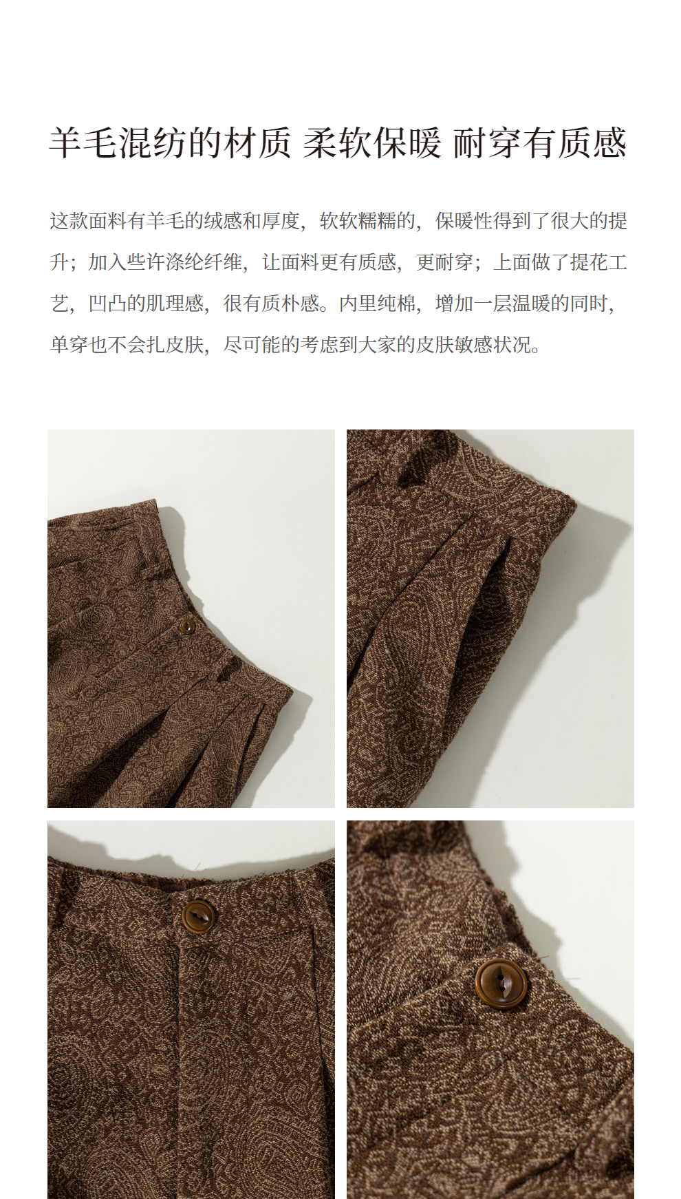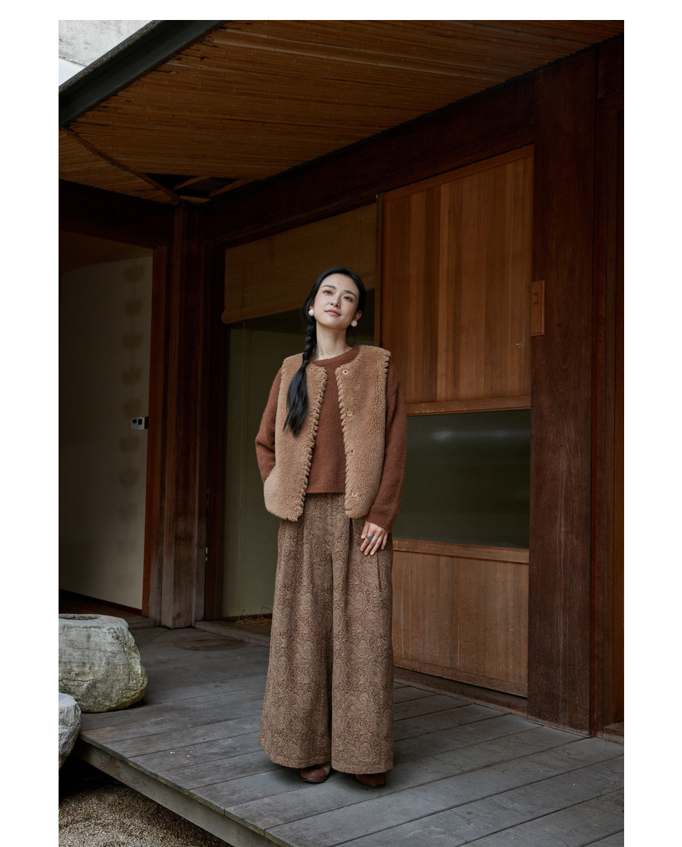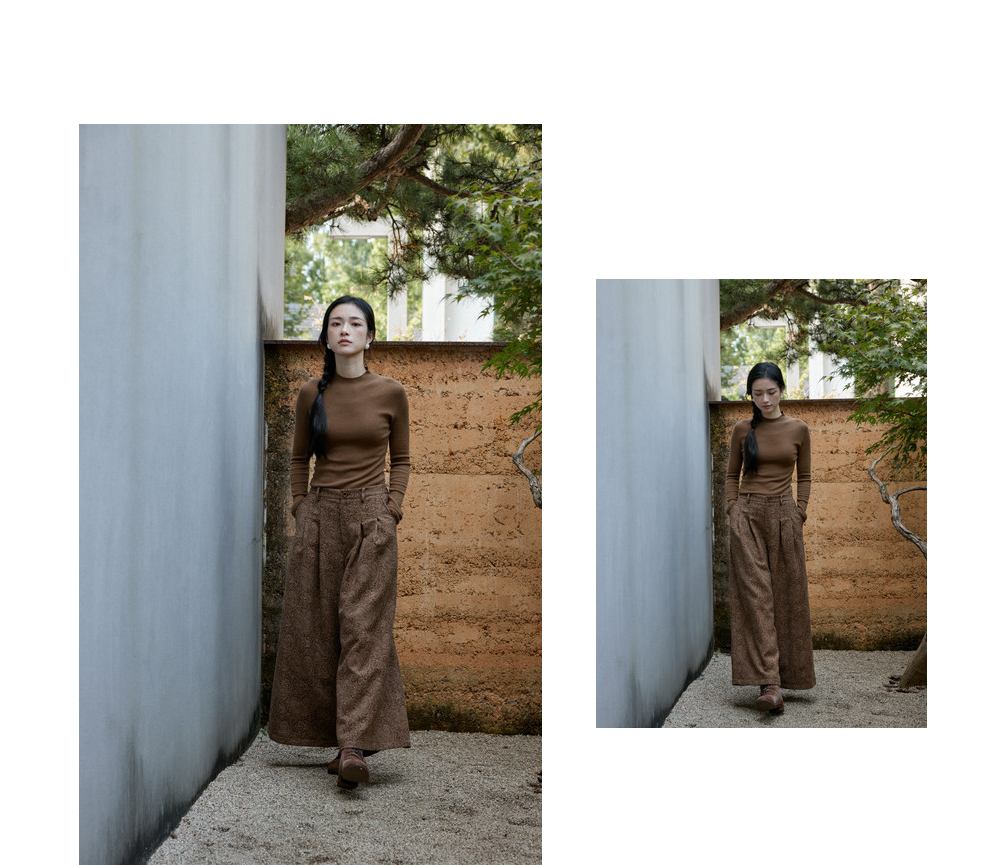 绽放822朵/高端深咖色羊毛混纺复古提花休闲宽松文艺百搭阔腿裤子