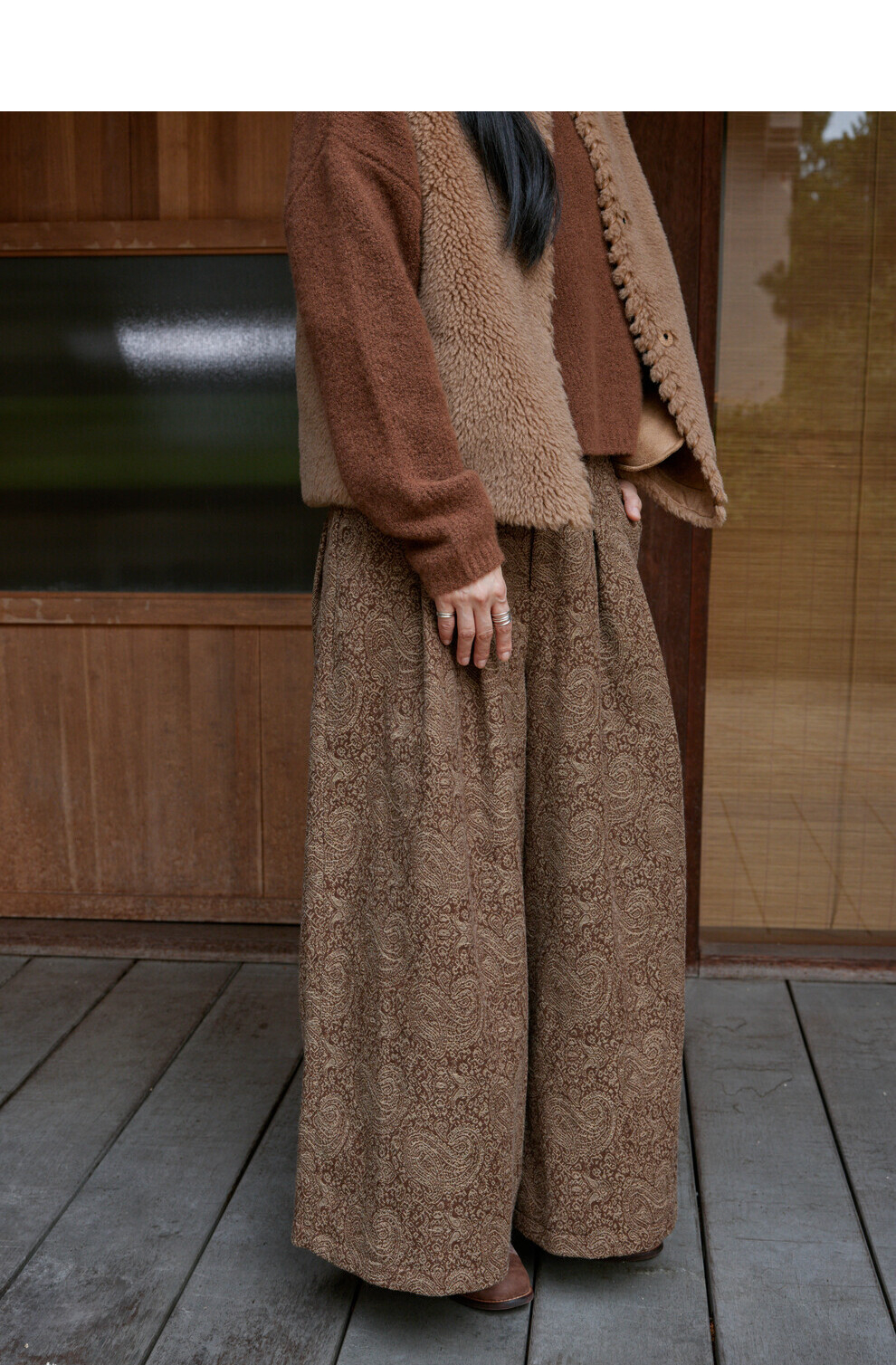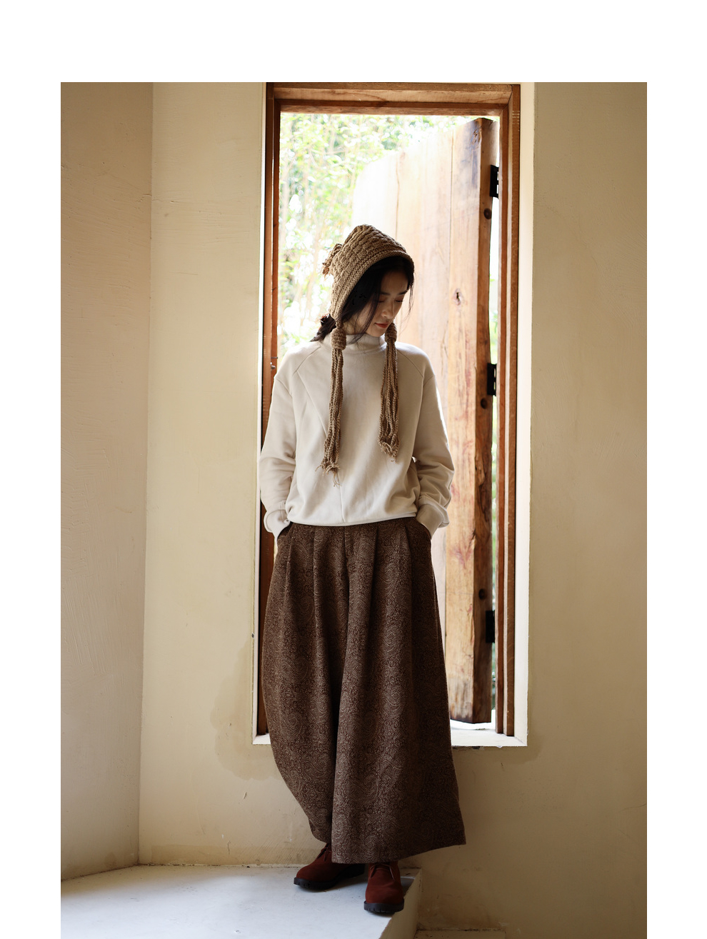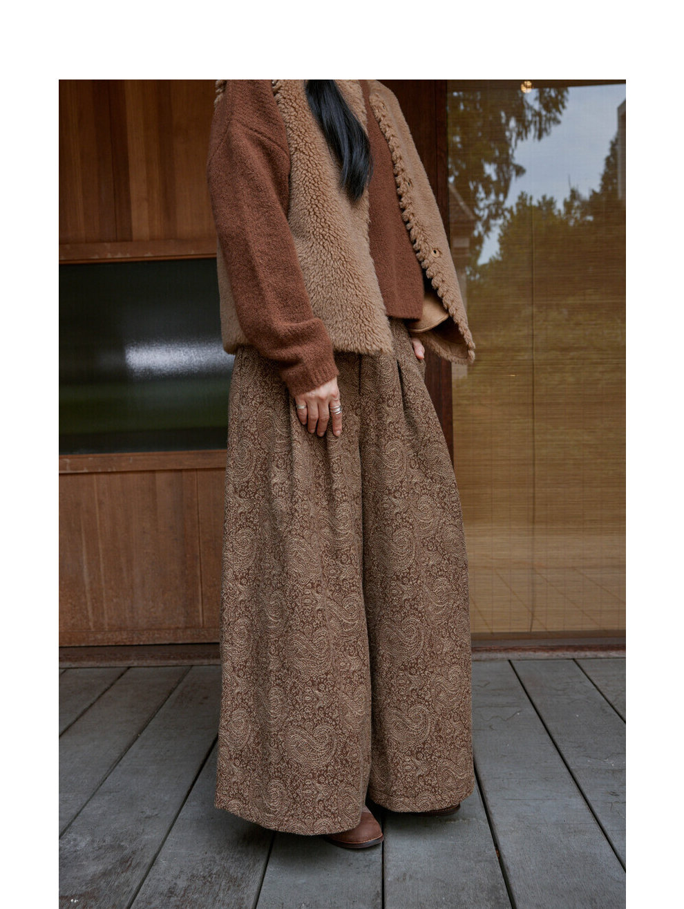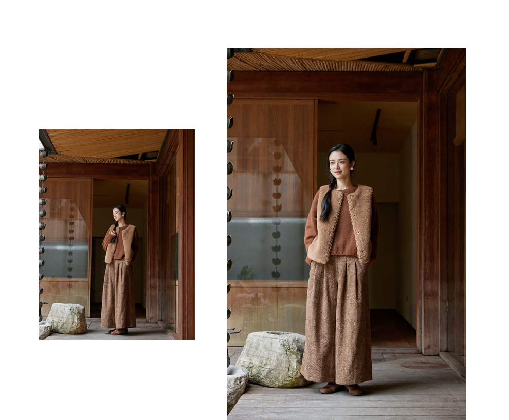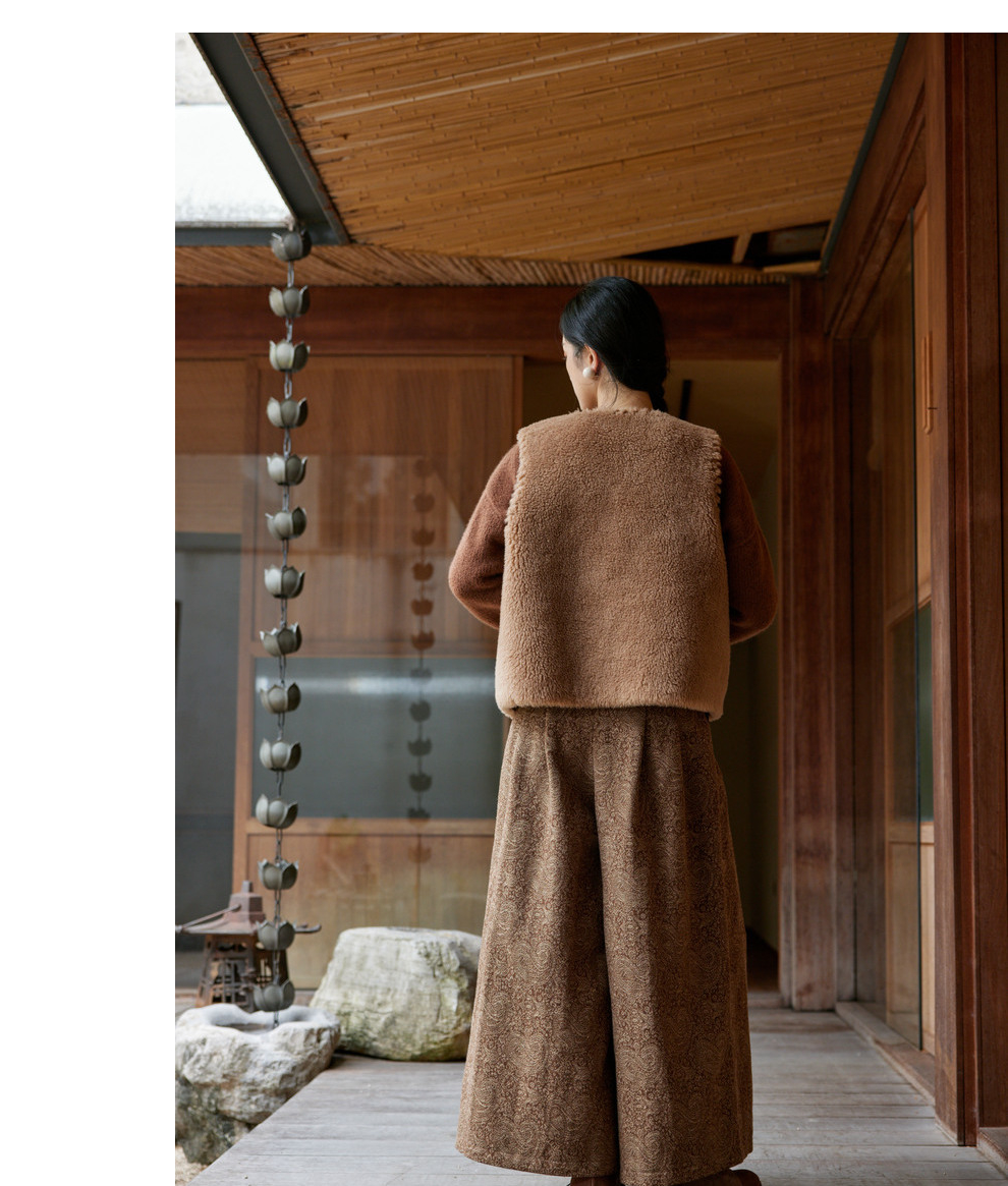 绽放822朵/高端深咖色羊毛混纺复古提花休闲宽松文艺百搭阔腿裤子