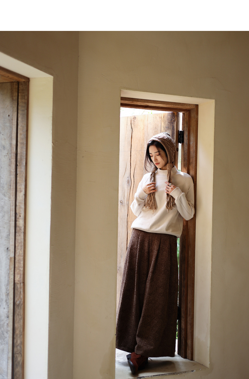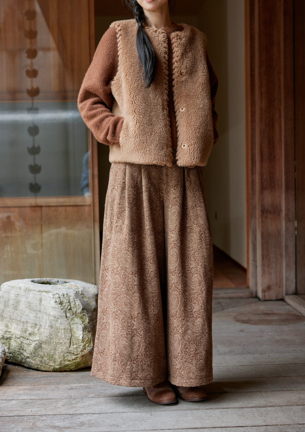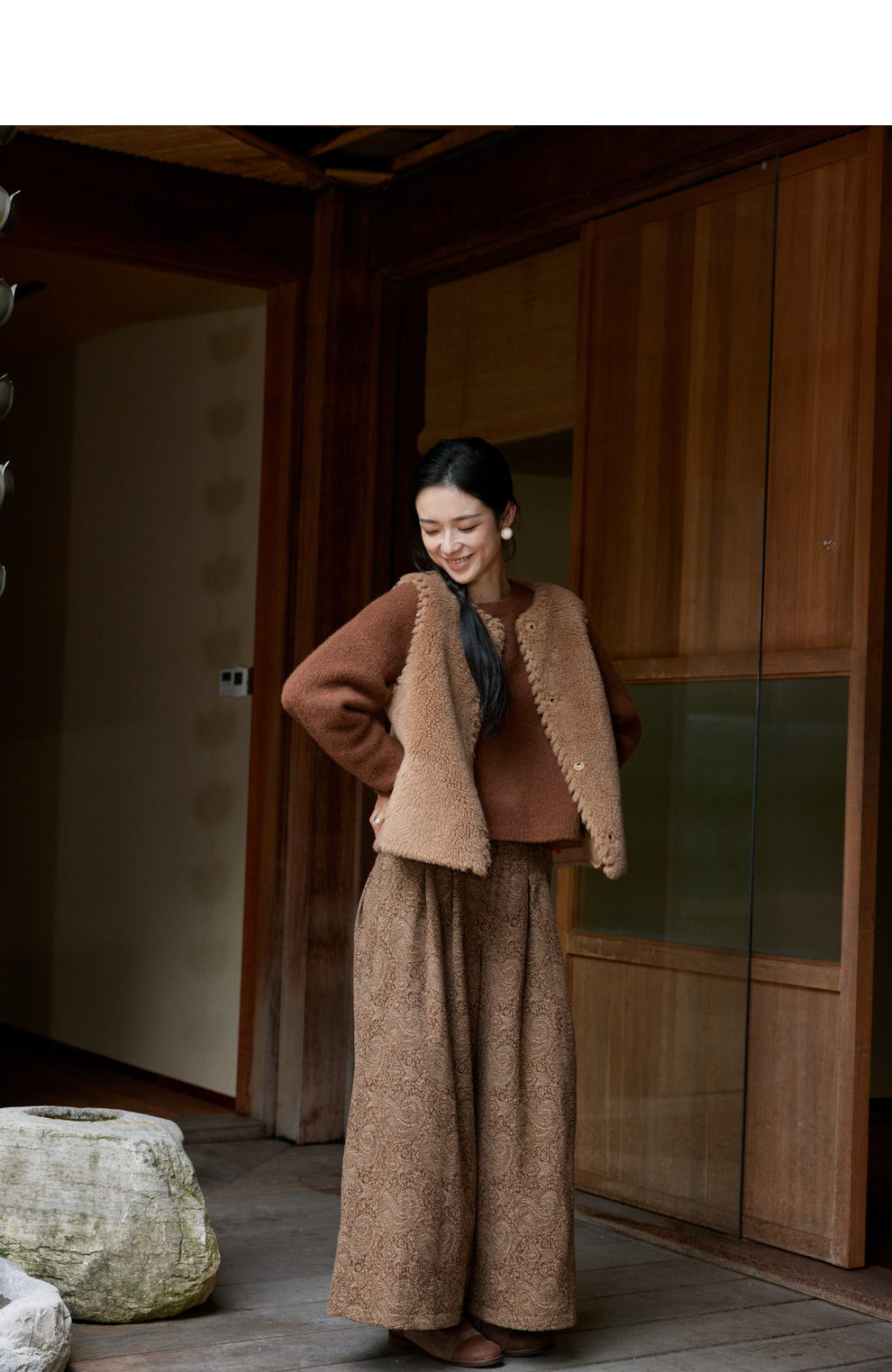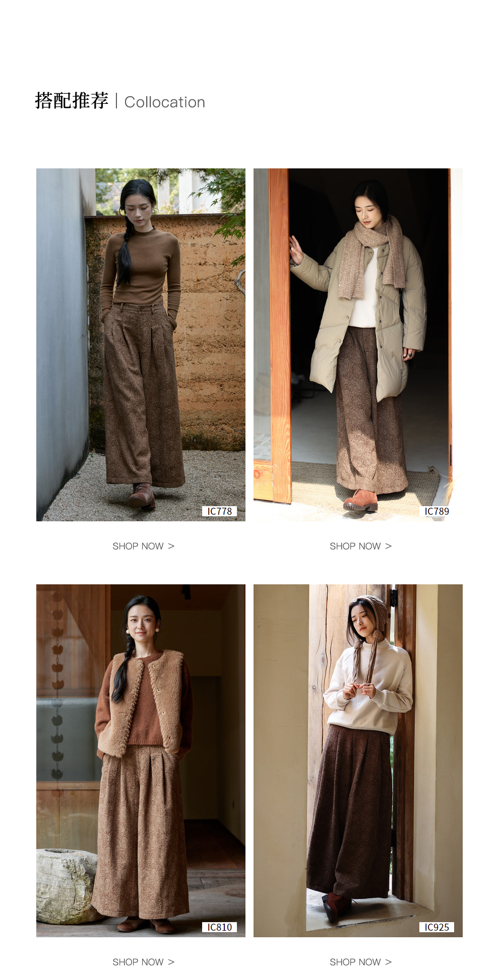 绽放822朵/高端深咖色羊毛混纺复古提花休闲宽松文艺百搭阔腿裤子