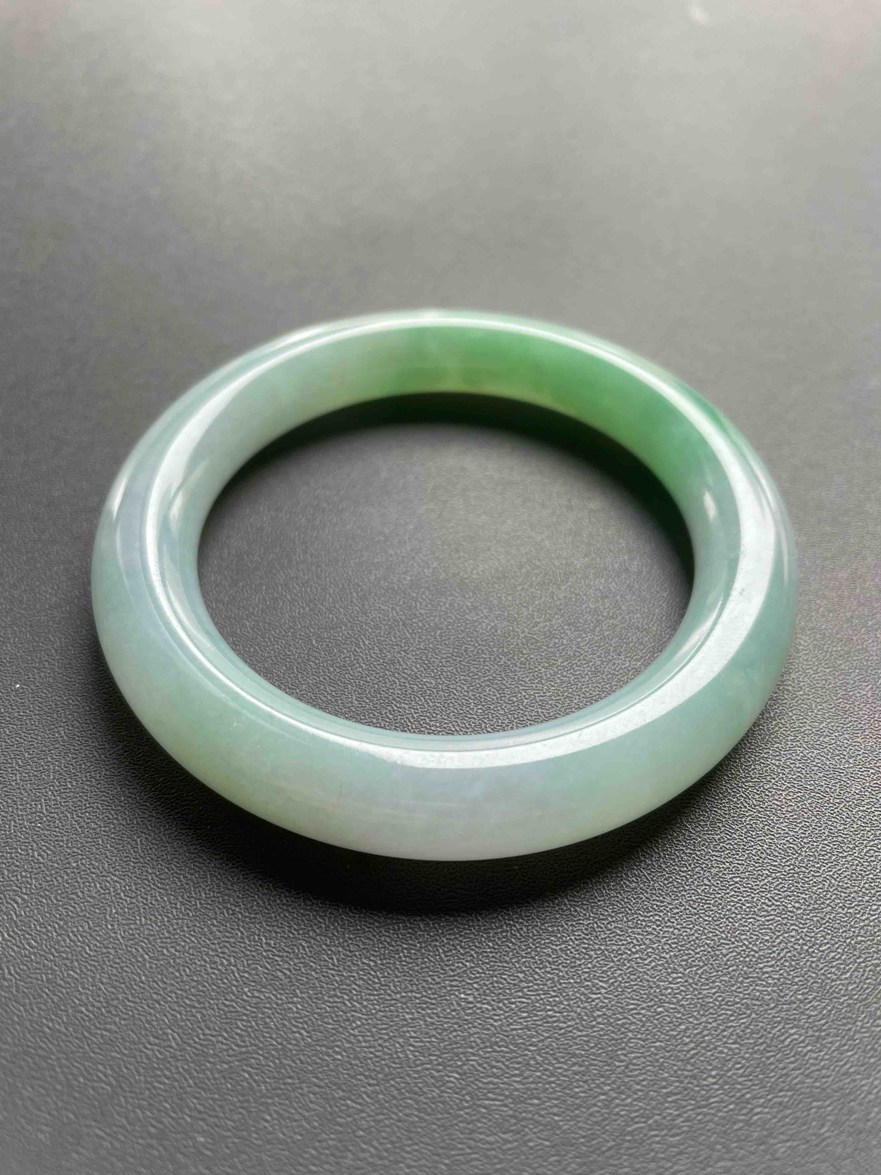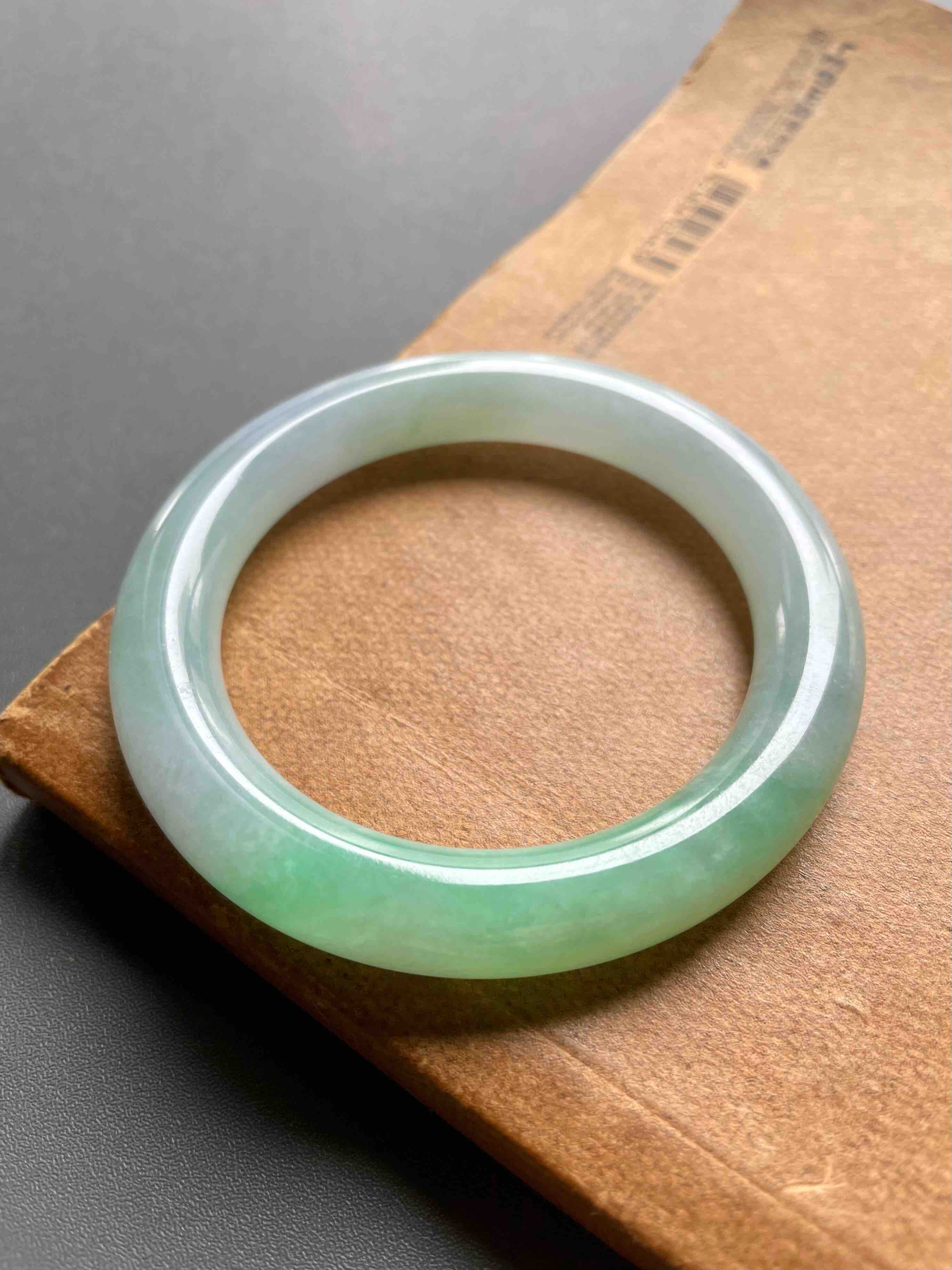 糯冰种阳绿圆条翡翠手镯55.5 55