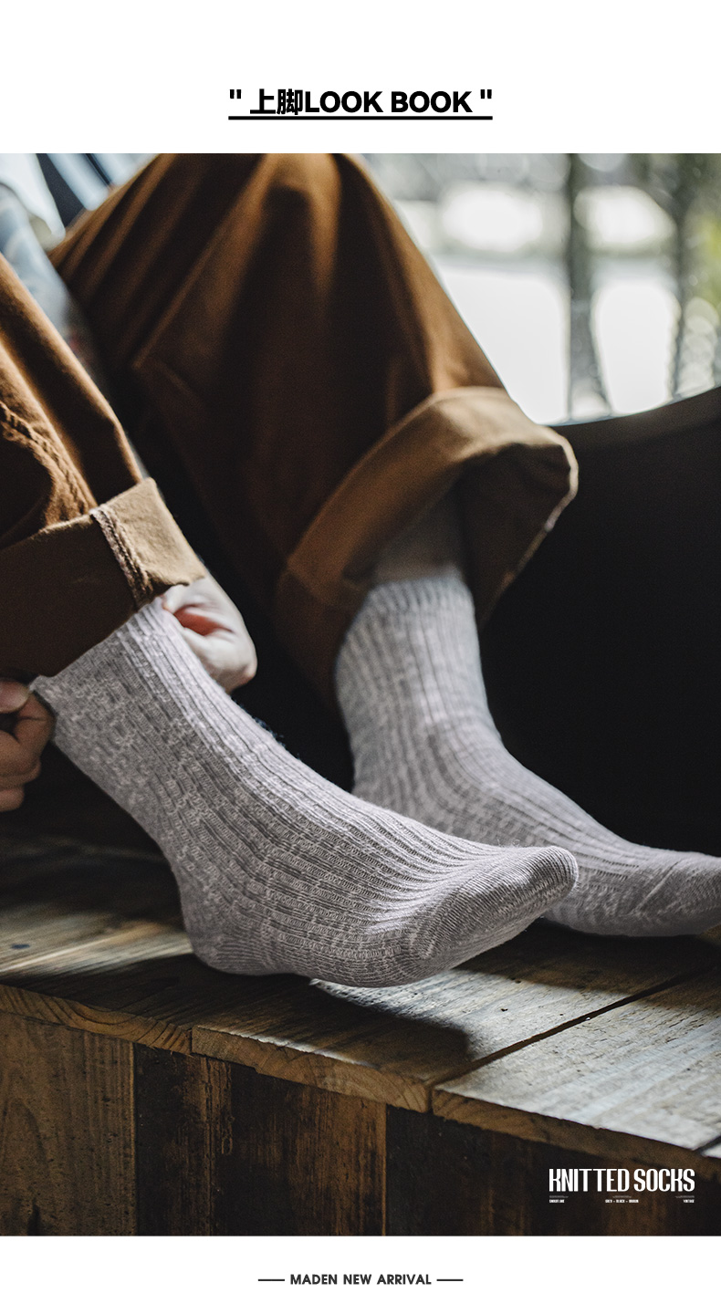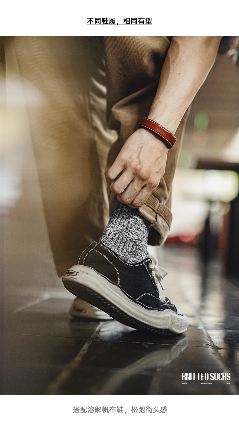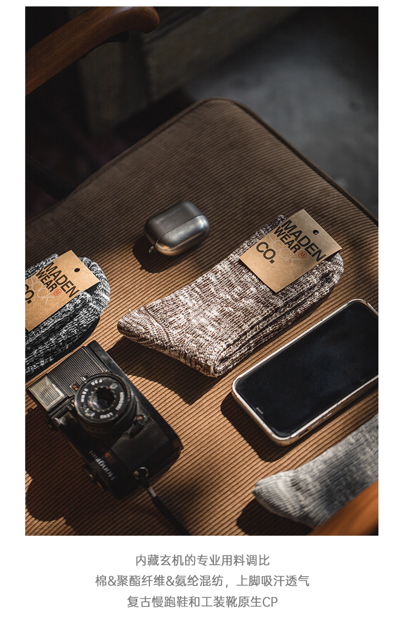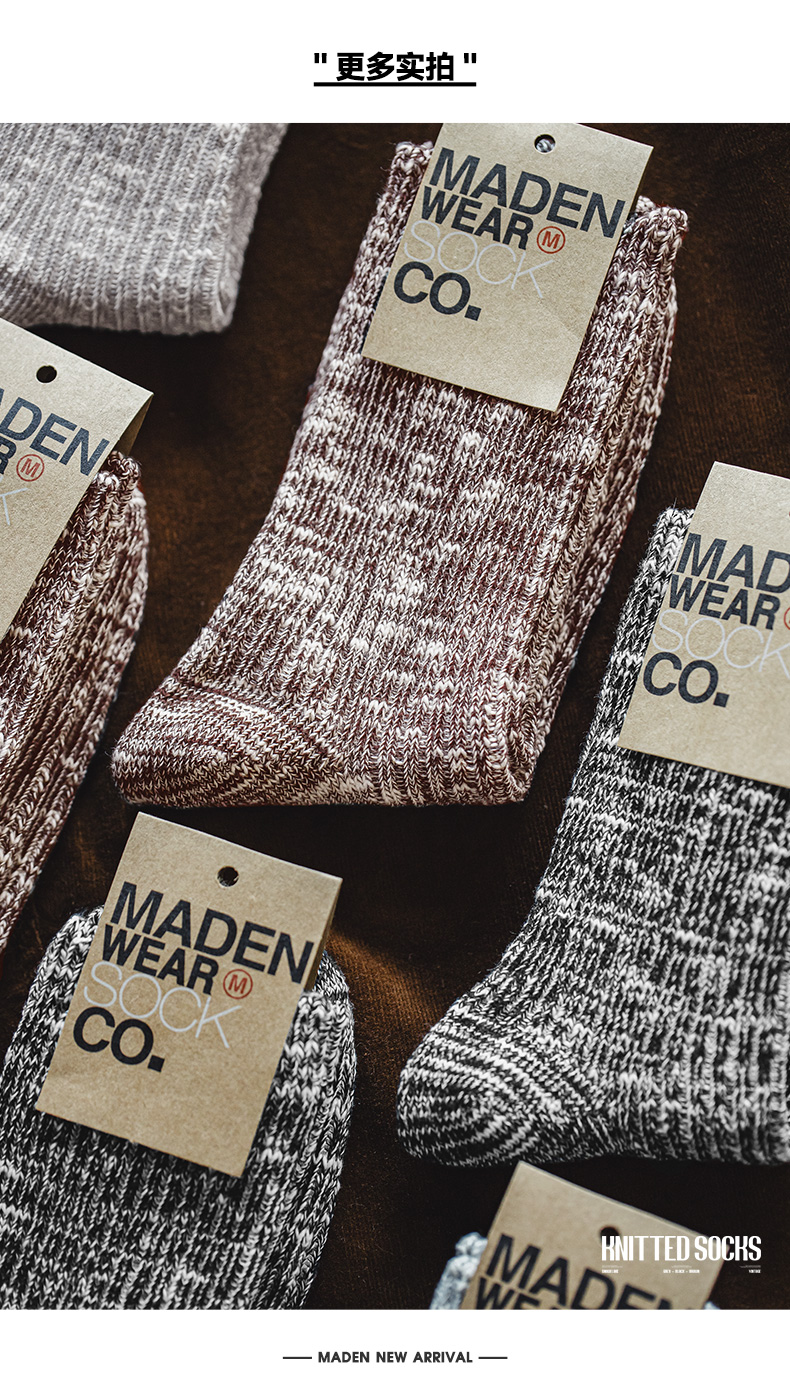 工装优选 美式复古雪花针织中筒棉袜休闲运动吸汗透气长袜子男女秋