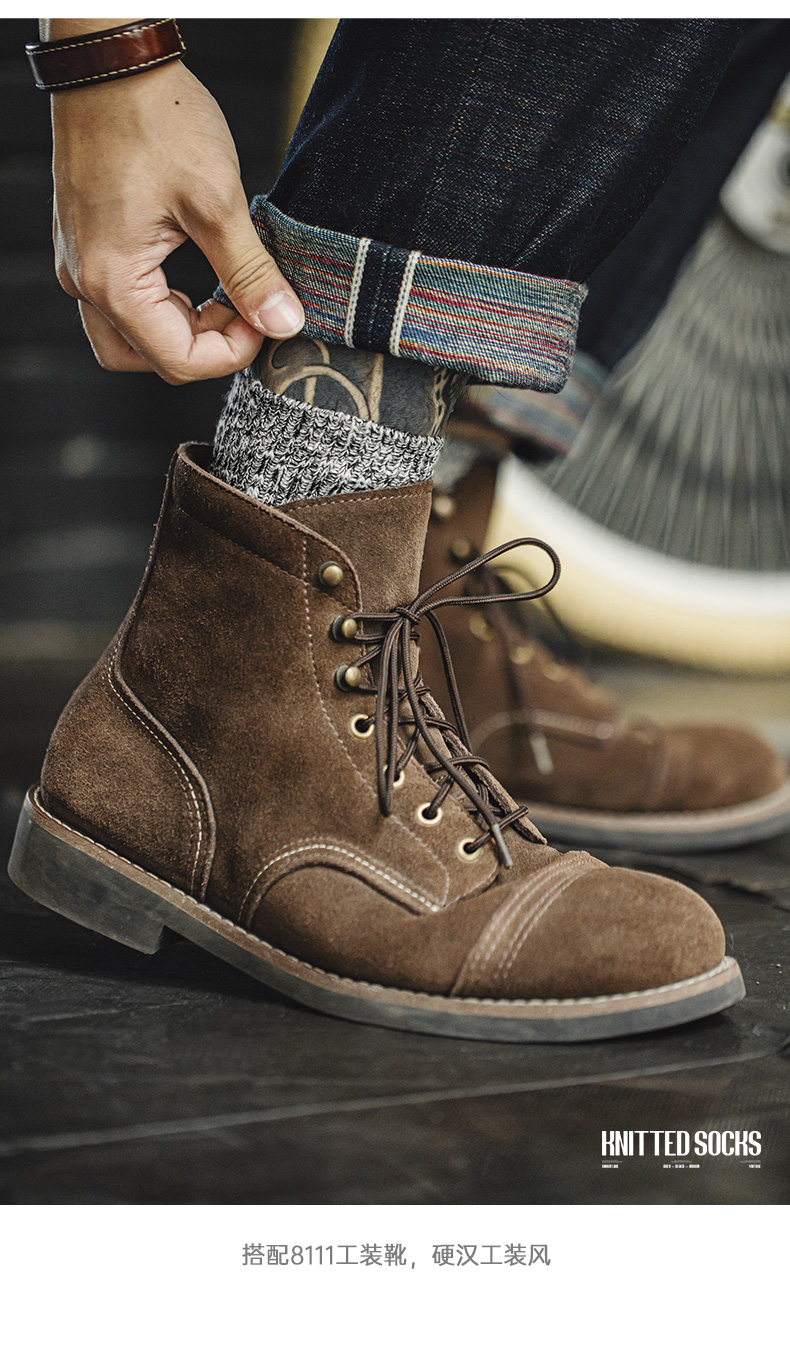 秋季新款工装靴男鞋美式高帮鞋中帮短靴子复古马丁靴百搭沙漠靴