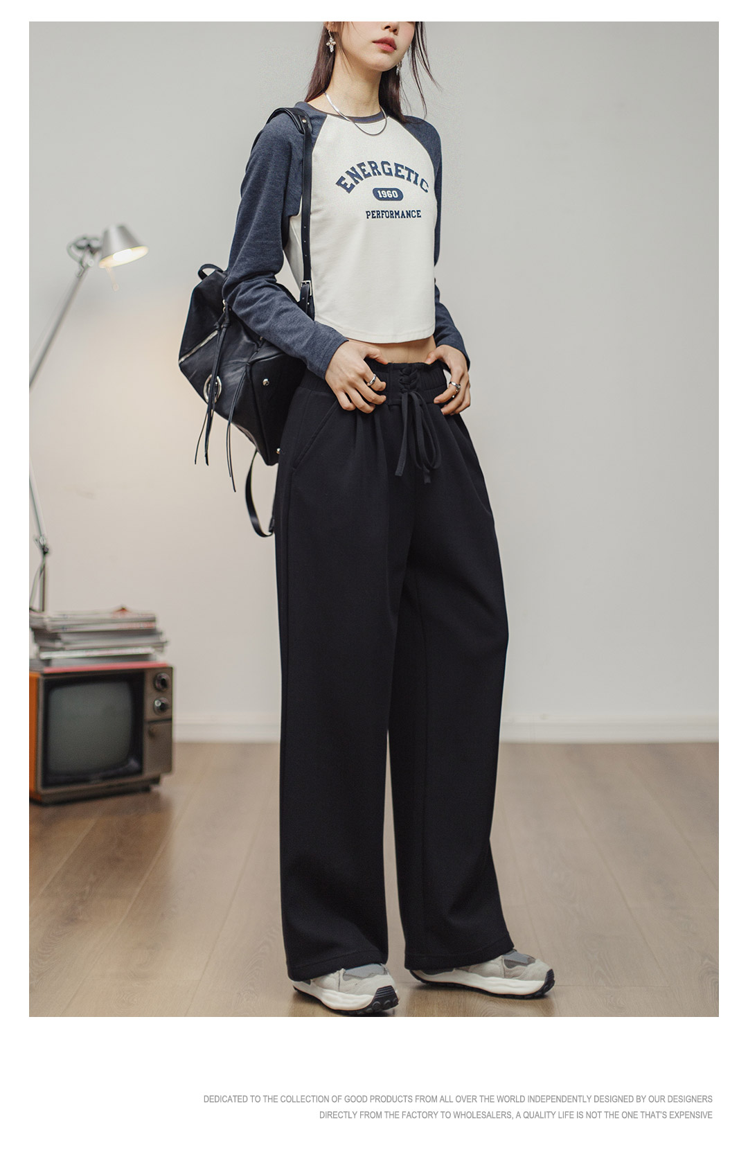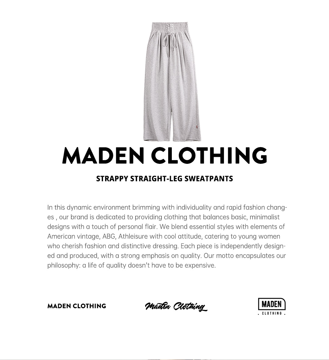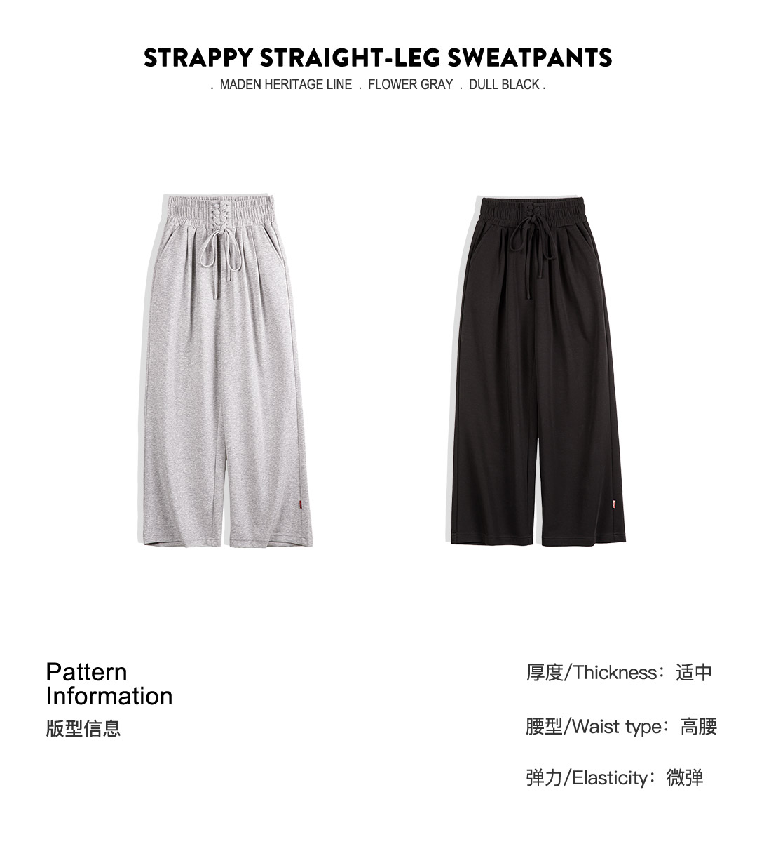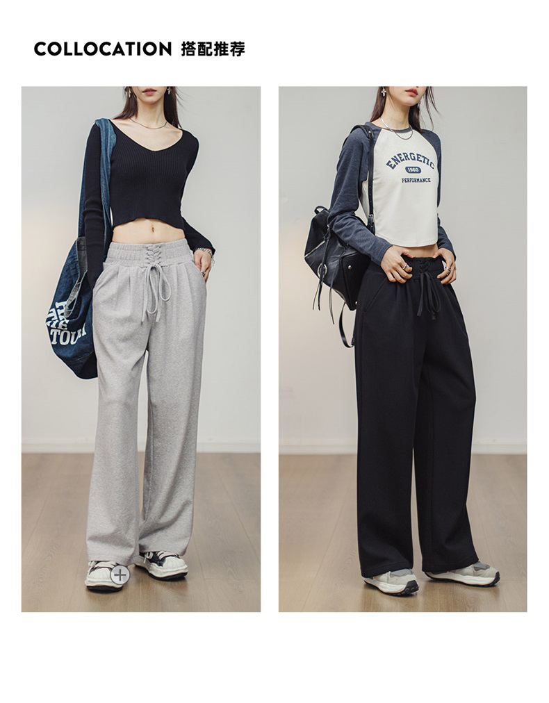 马登女装收腹束腰绑带喇叭卫裤直筒运动裤美式复古阔腿香蕉裤大码