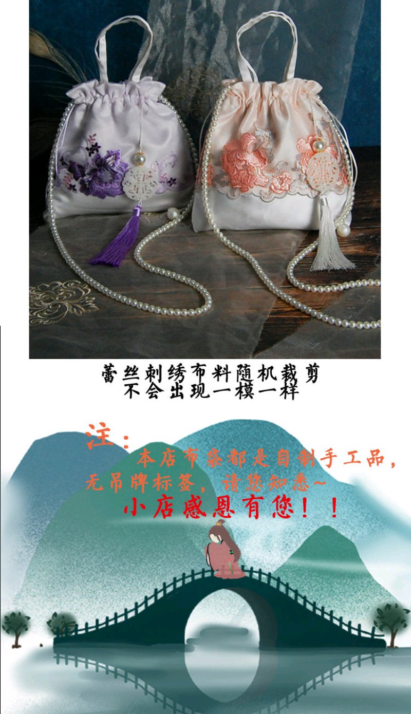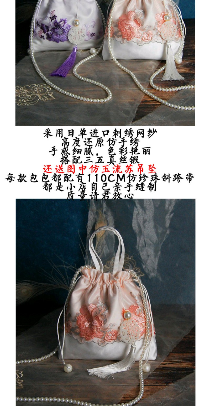 原创中国古风仙女斜挎汉服包配古风蕾丝刺绣的单肩流苏包手提