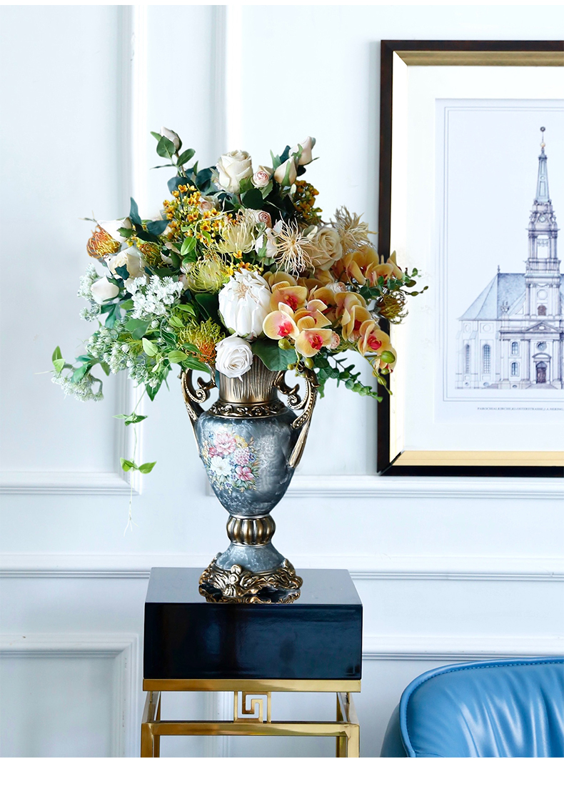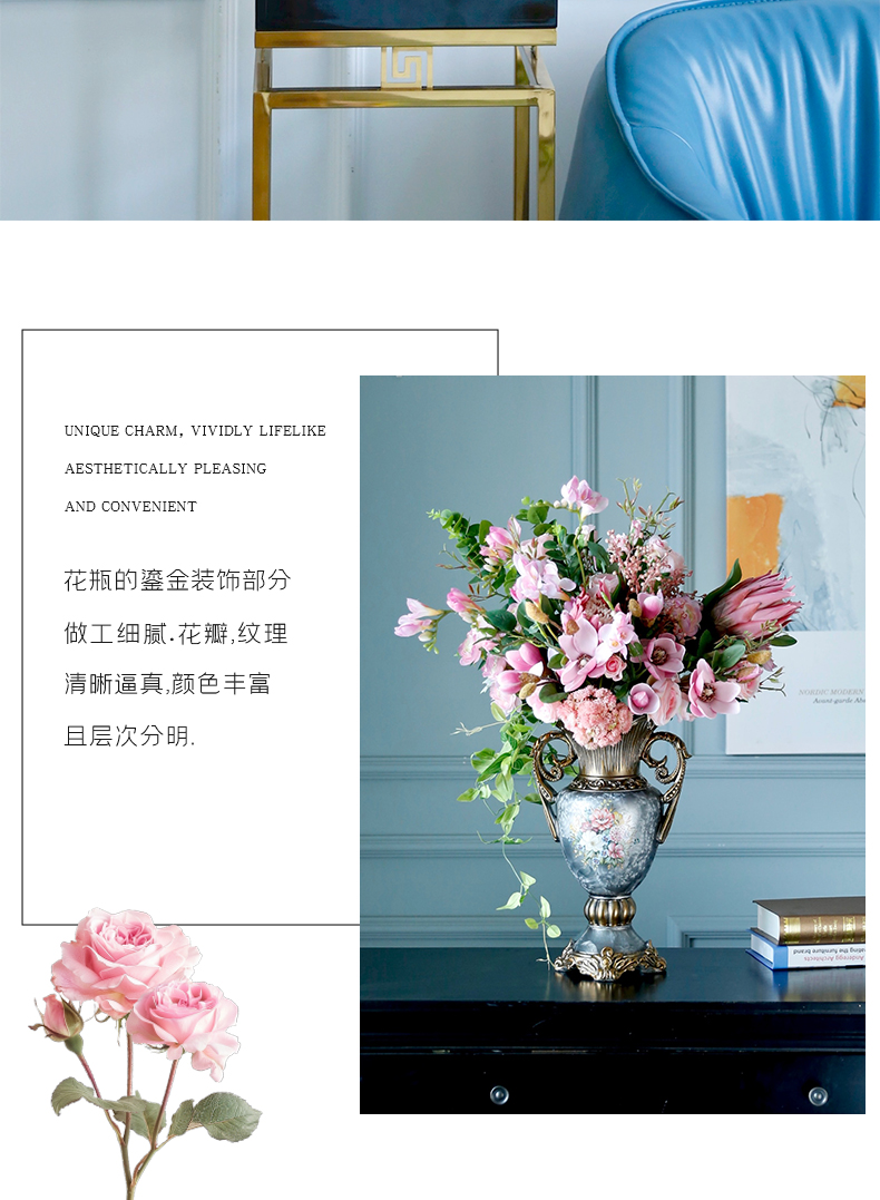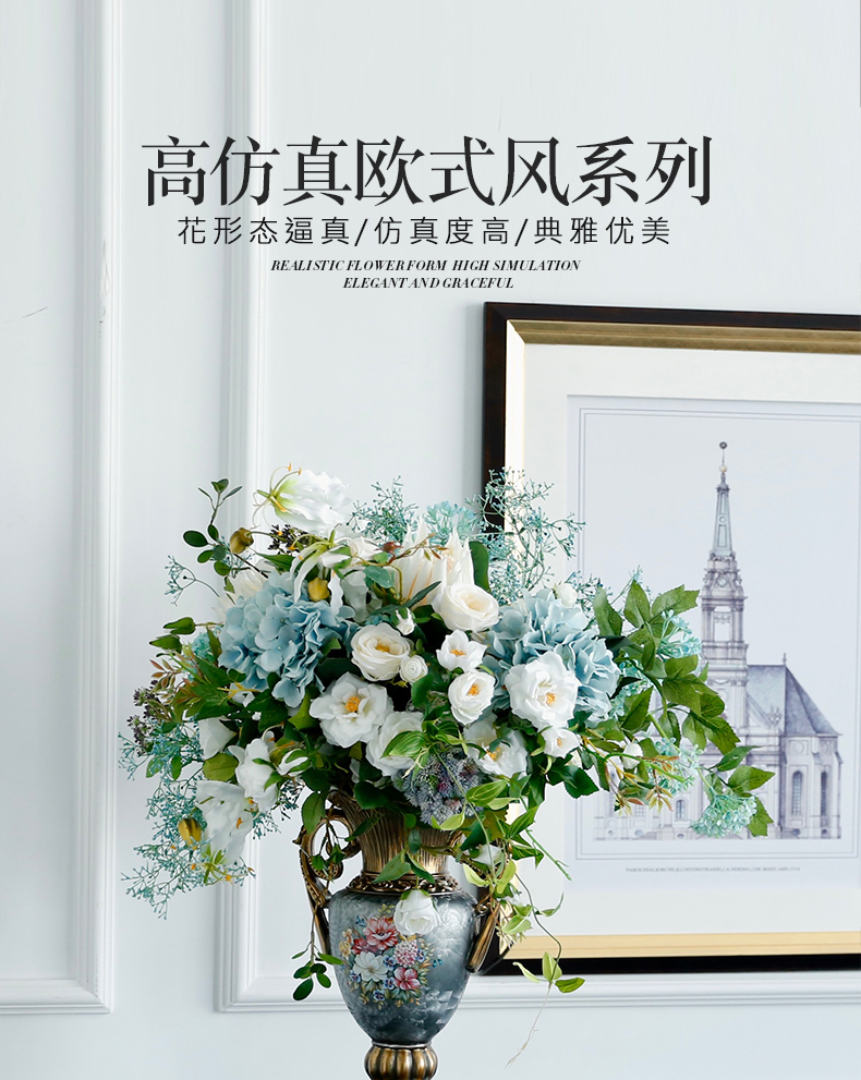 欧式轻奢仿真花假花摆件酒店餐桌客厅玄关摆设电视柜玄关装饰花