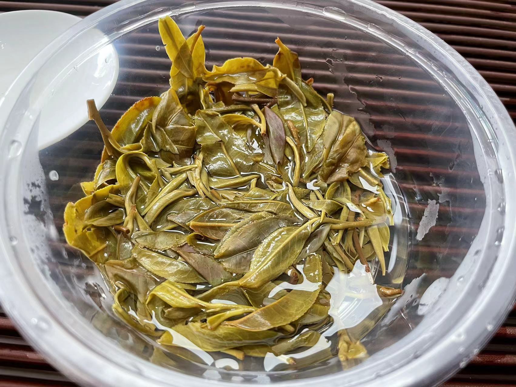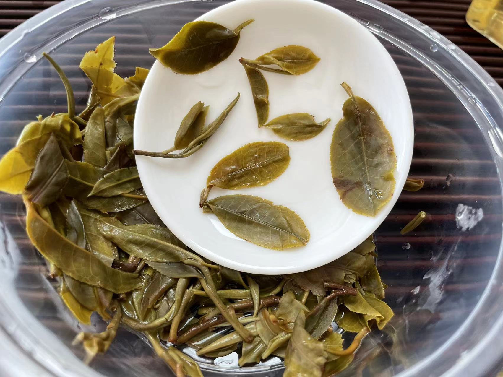第四道:继续看叶底,它不像别地那些大叶种,大叶种叶形很大、比较肥硕;而这细叶种则是小巧风。