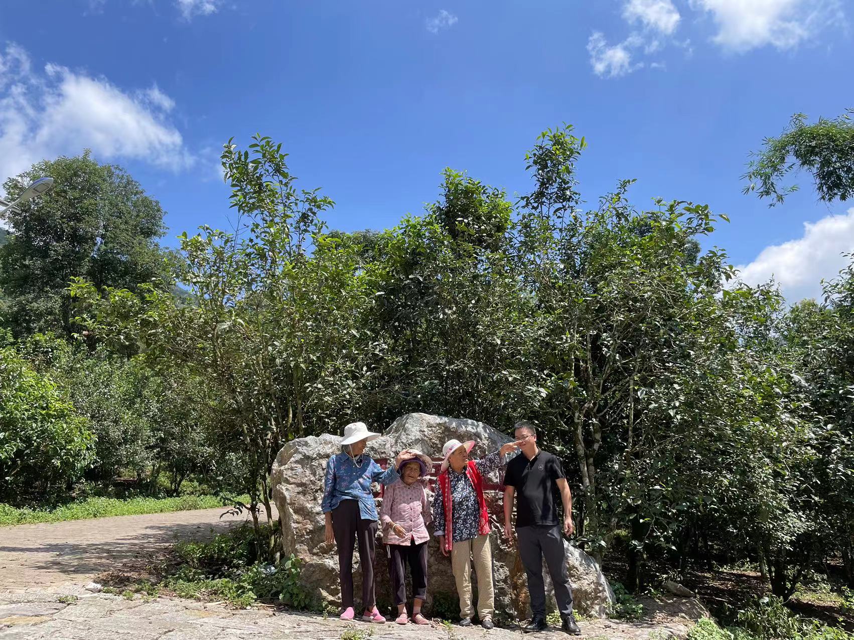 上图是几个80多岁的阿姨在跟我介绍他们的古茶树。