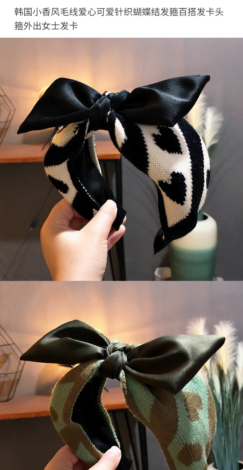 【精品】韩国小香风毛线爱心可爱蝴蝶结发箍百搭发卡头箍女士发卡
