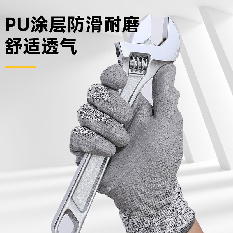 得力DL521043PU涂层防切割手套(灰)
