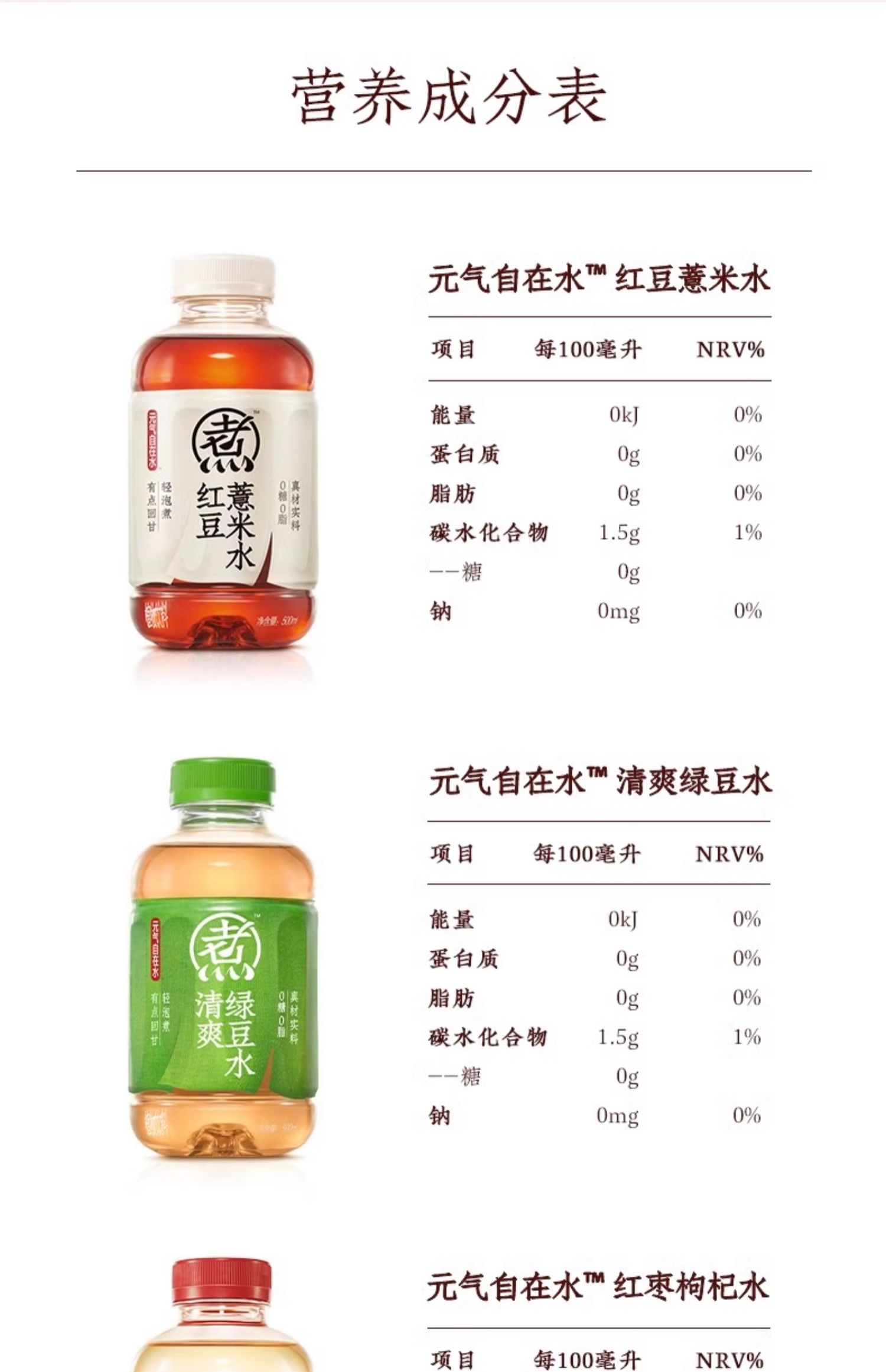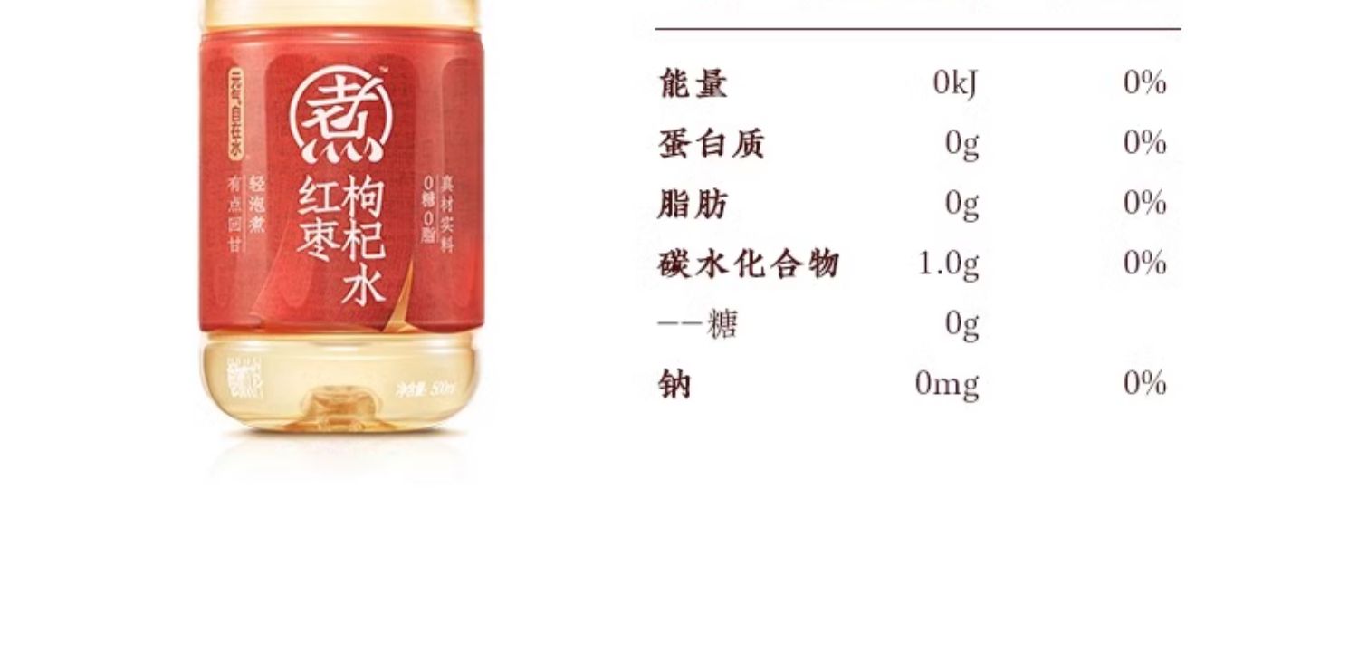 配料干净 元气森林自在水0糖0脂红枣枸杞水500ml 少负担大口喝