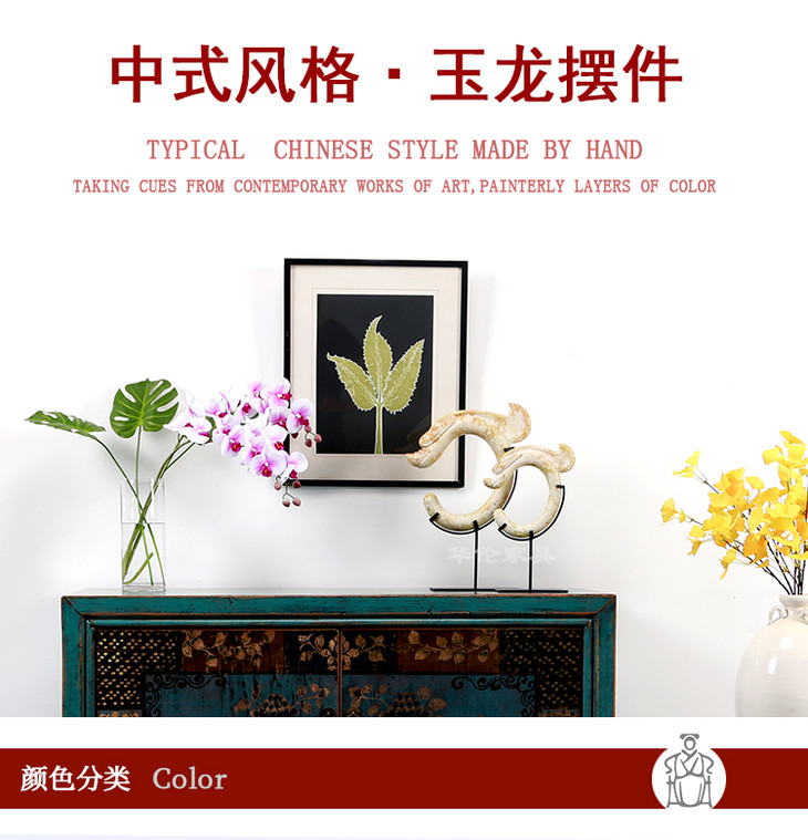玉龙仿古做旧雕刻玉璧龙家居玄关玉片摆件酒店新中式软装摆设饰品