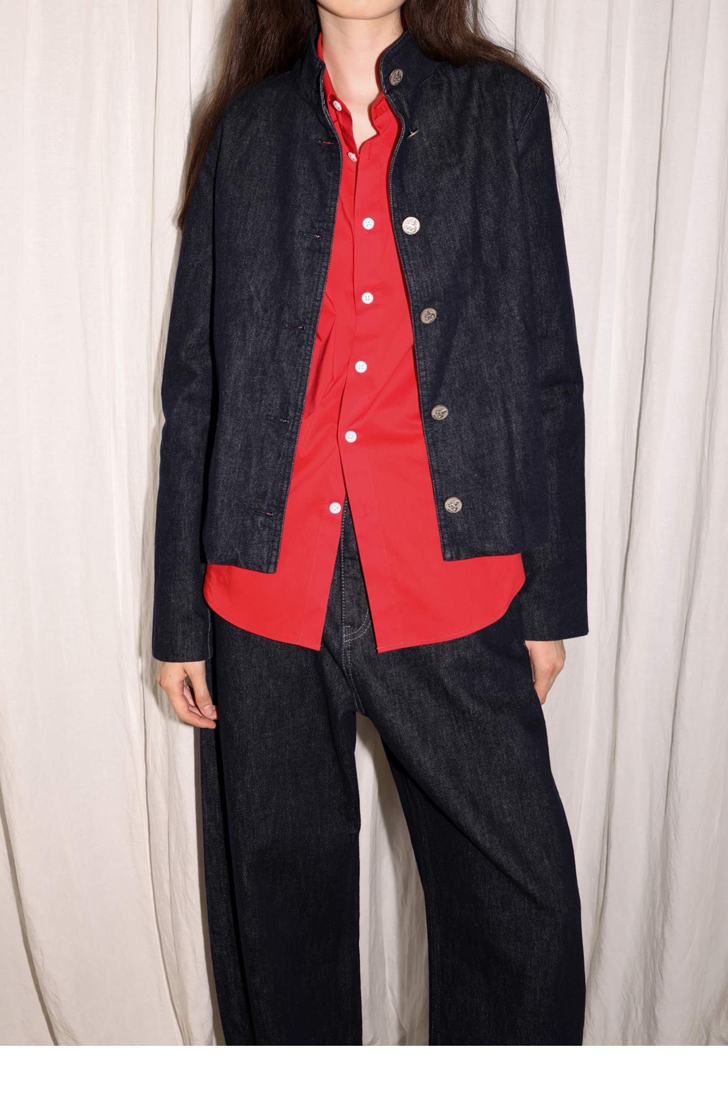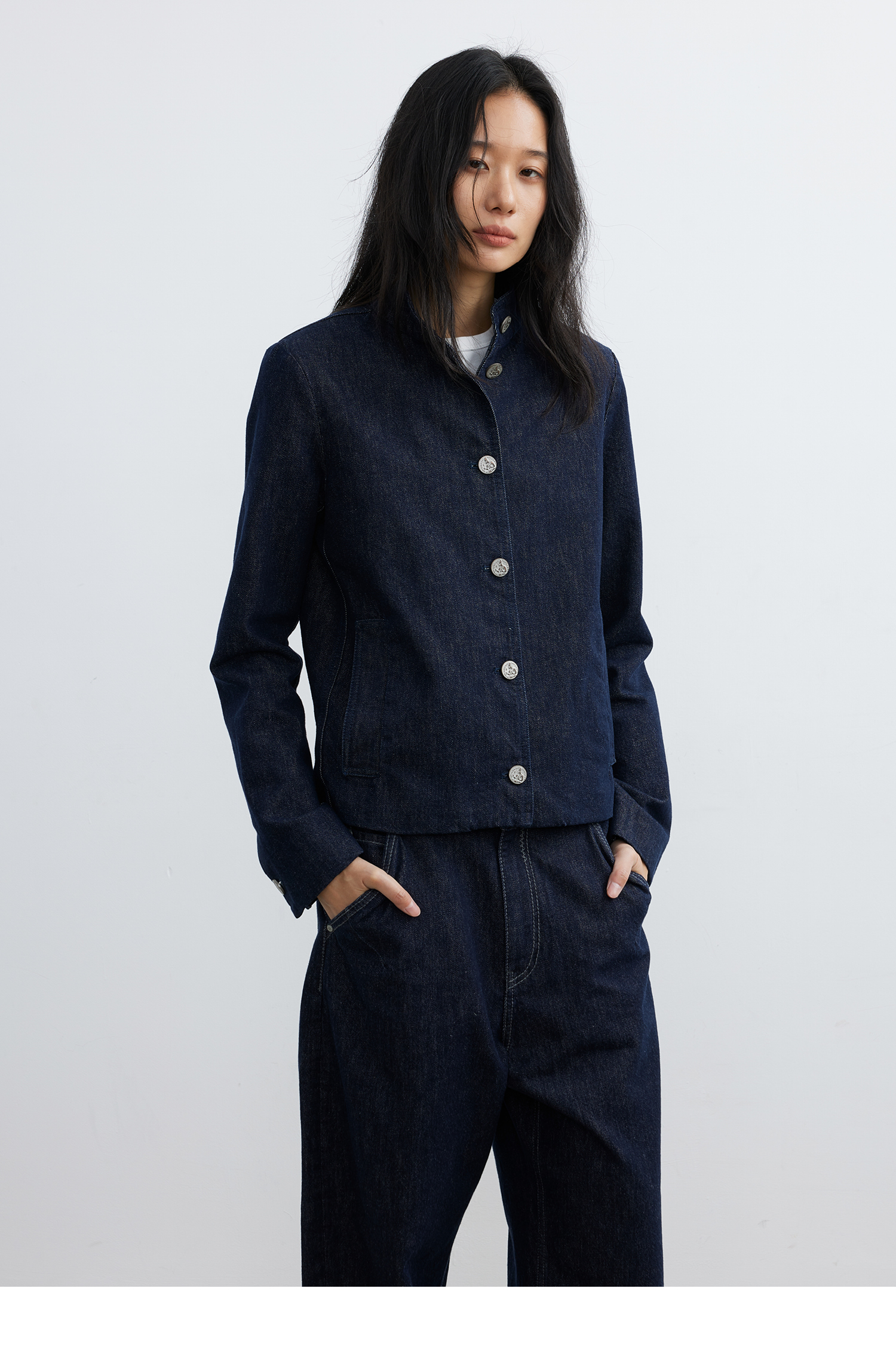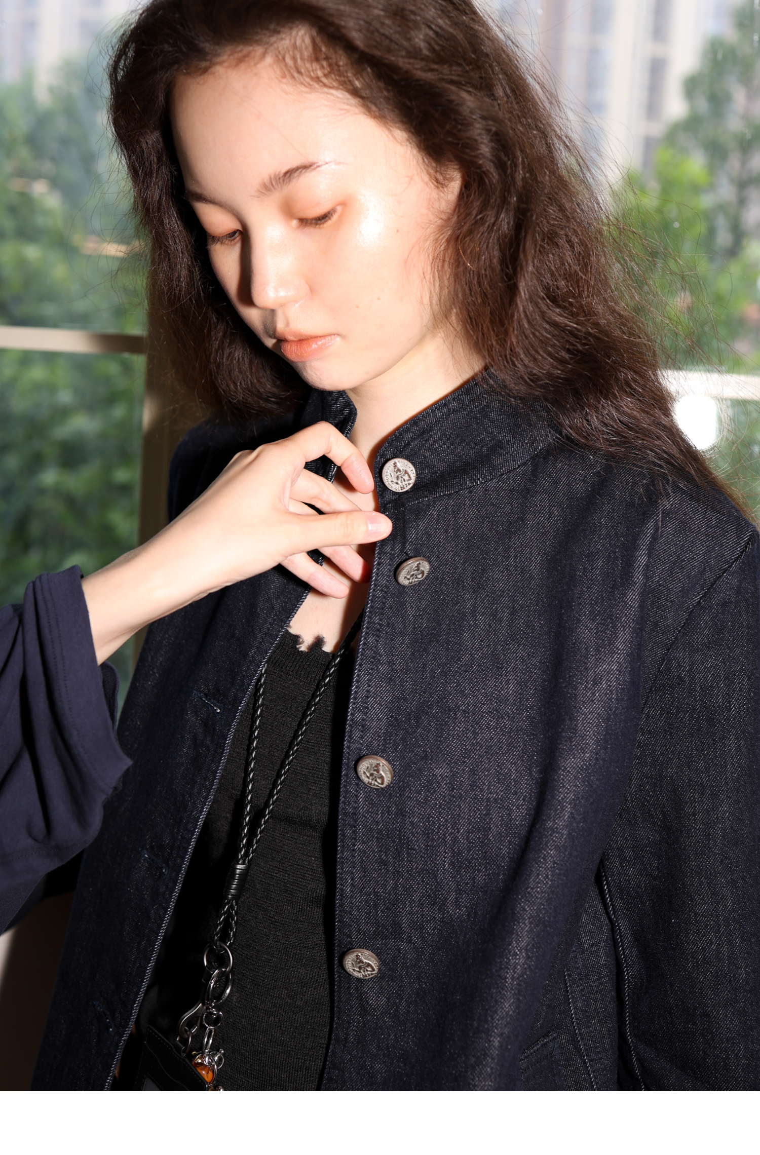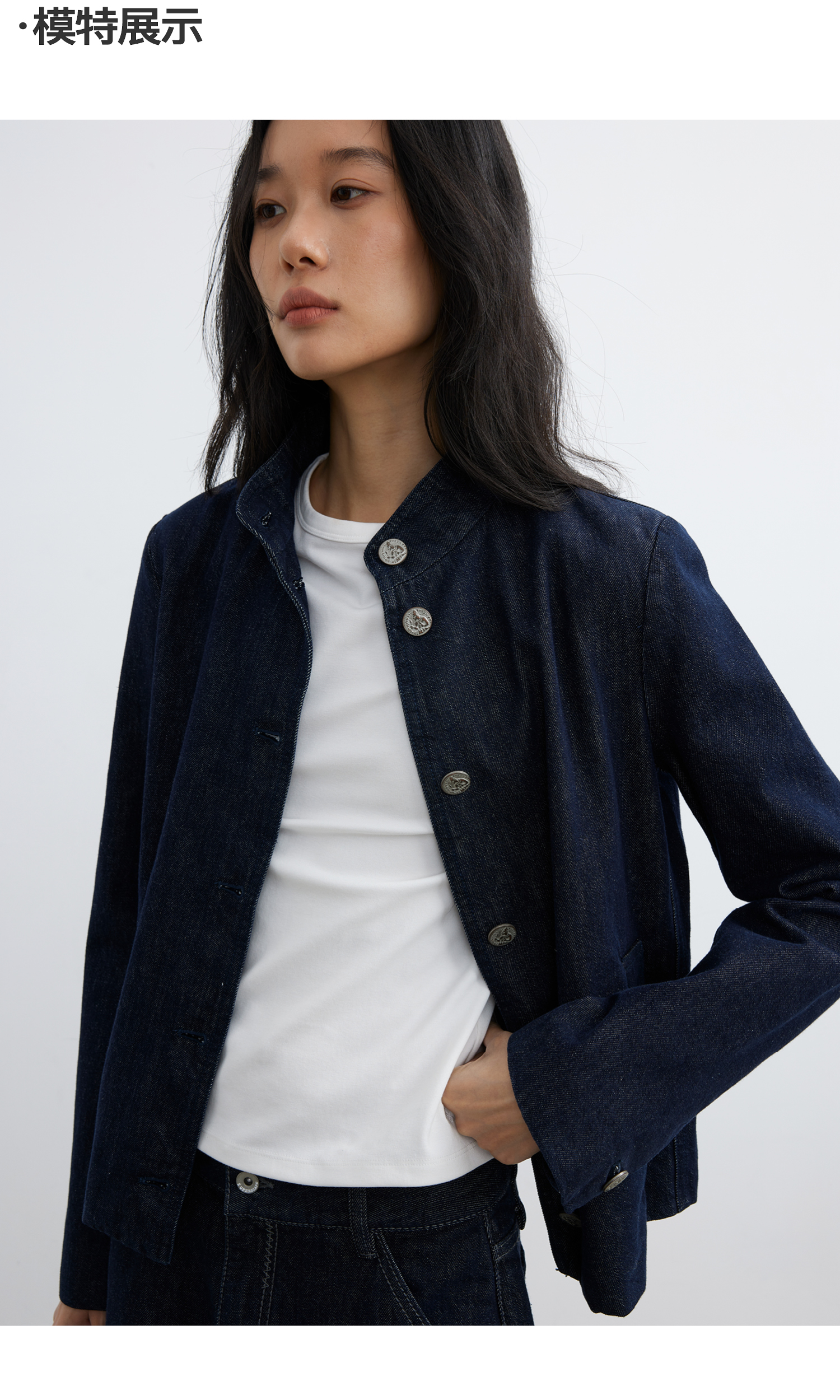 【8/6新品】素舶正肩立领金属古币纽扣不掉色原牛水洗牛仔外套