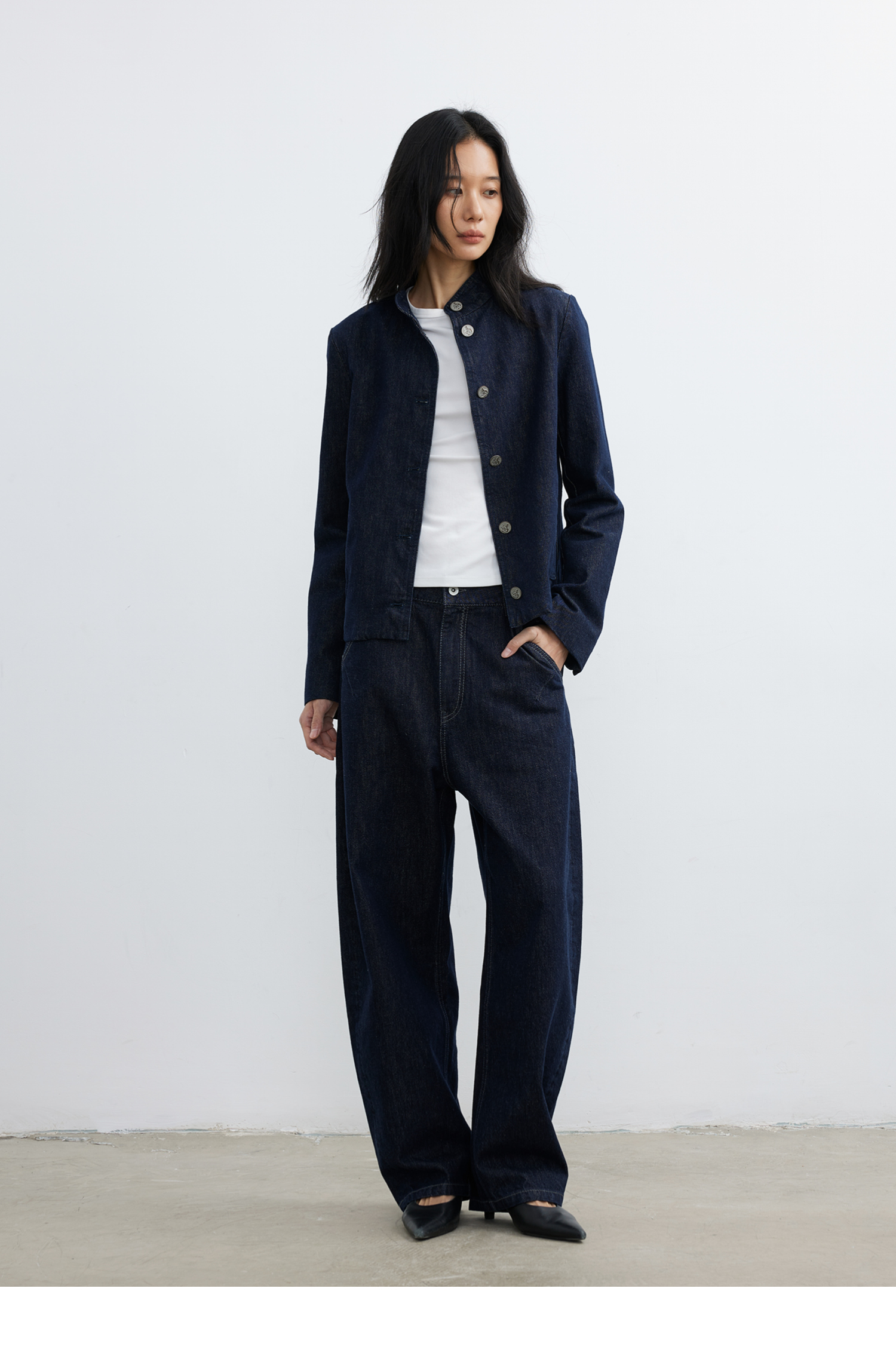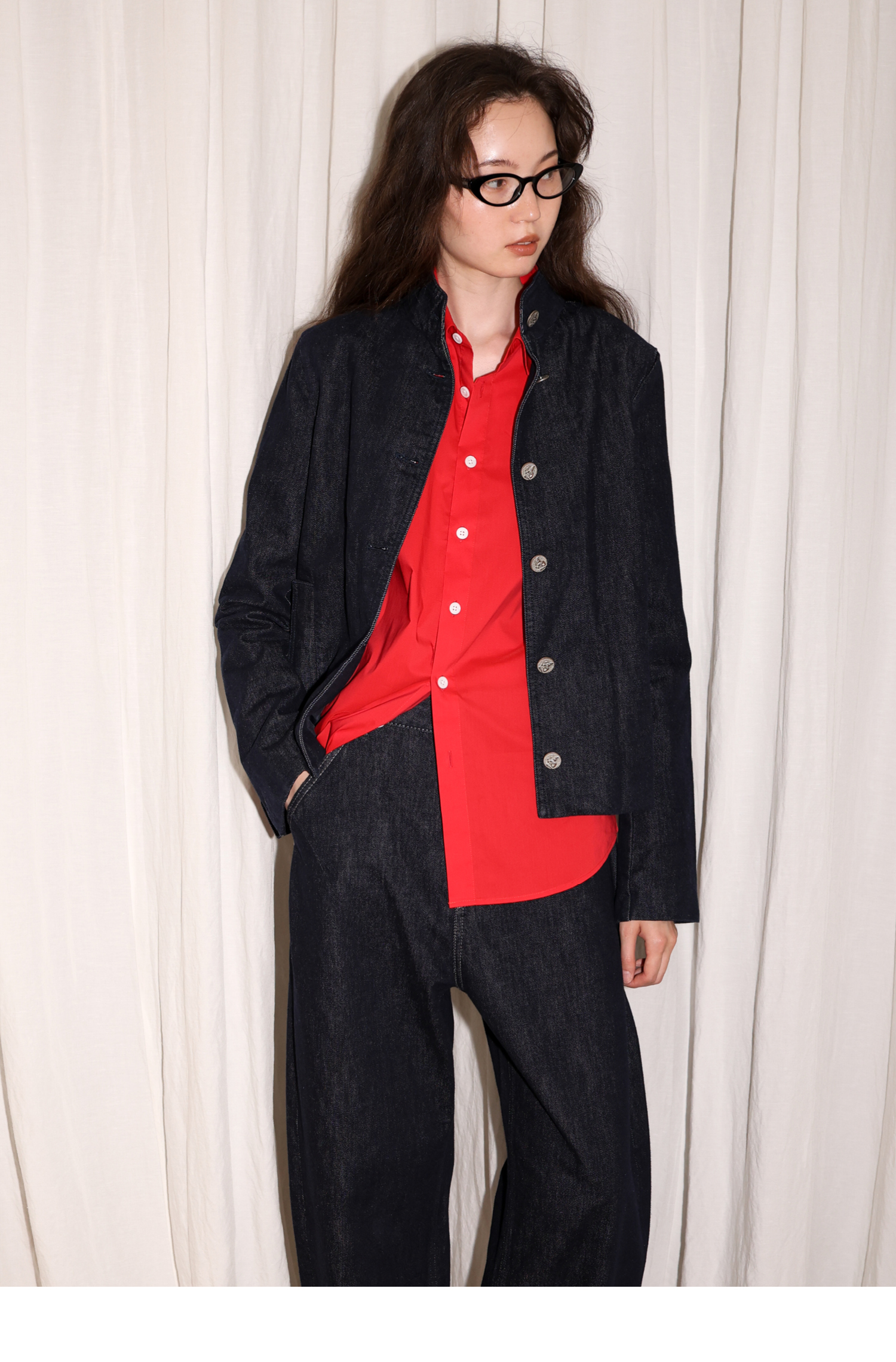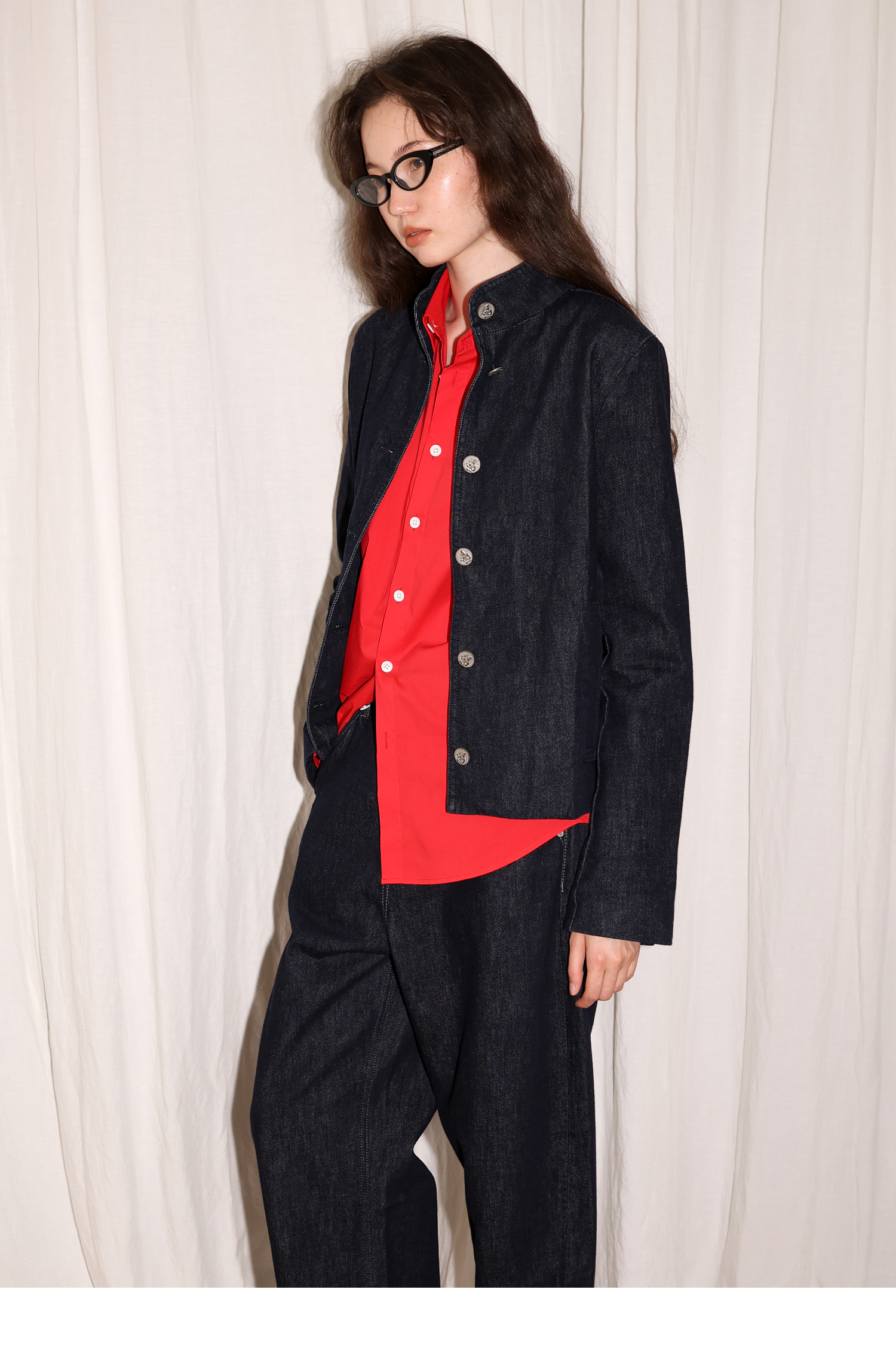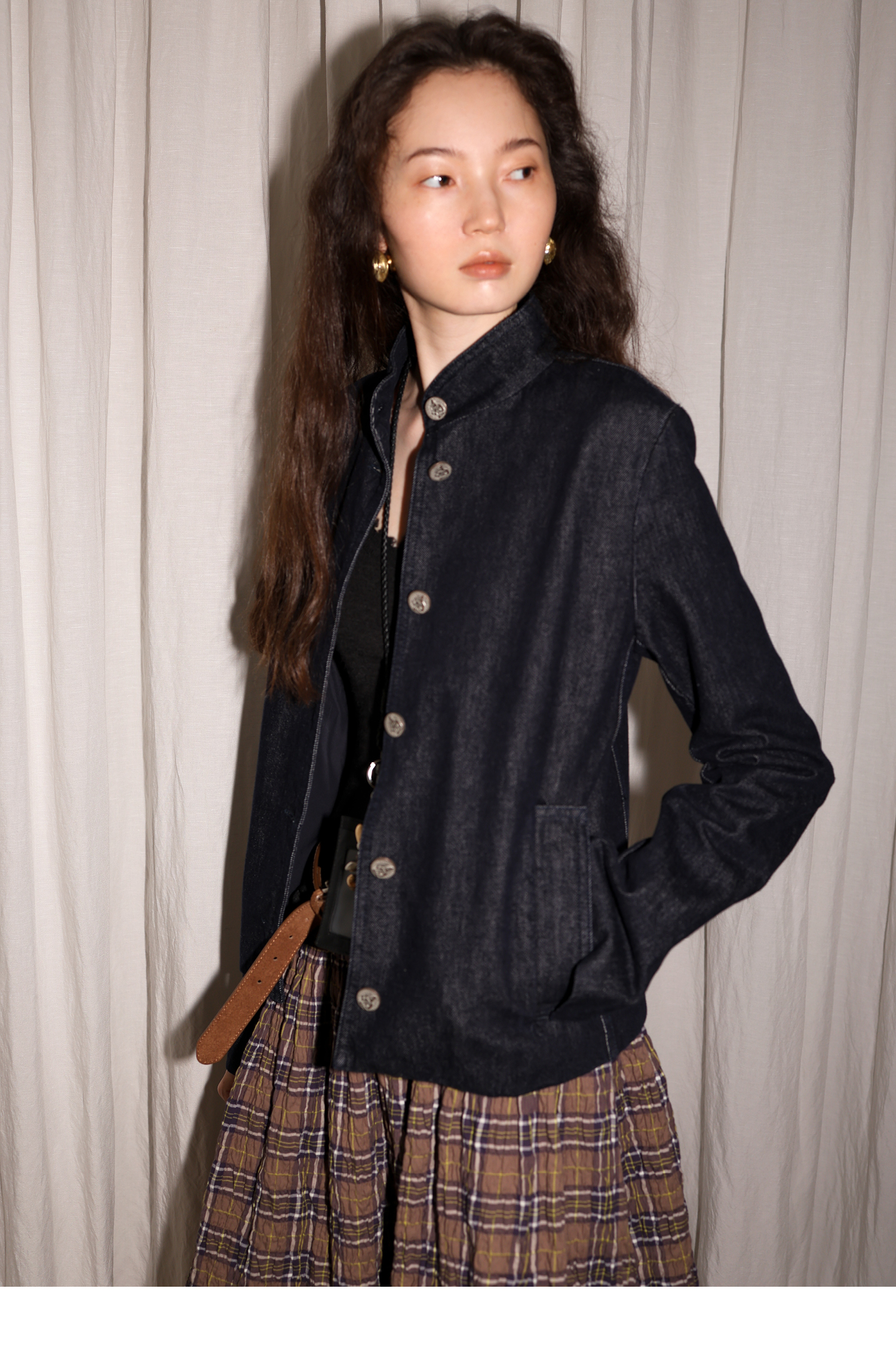 【8/6新品】素舶正肩立领金属古币纽扣不掉色原牛水洗牛仔外套