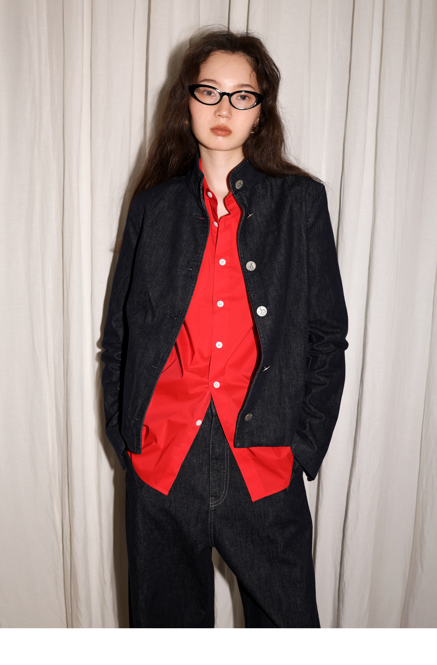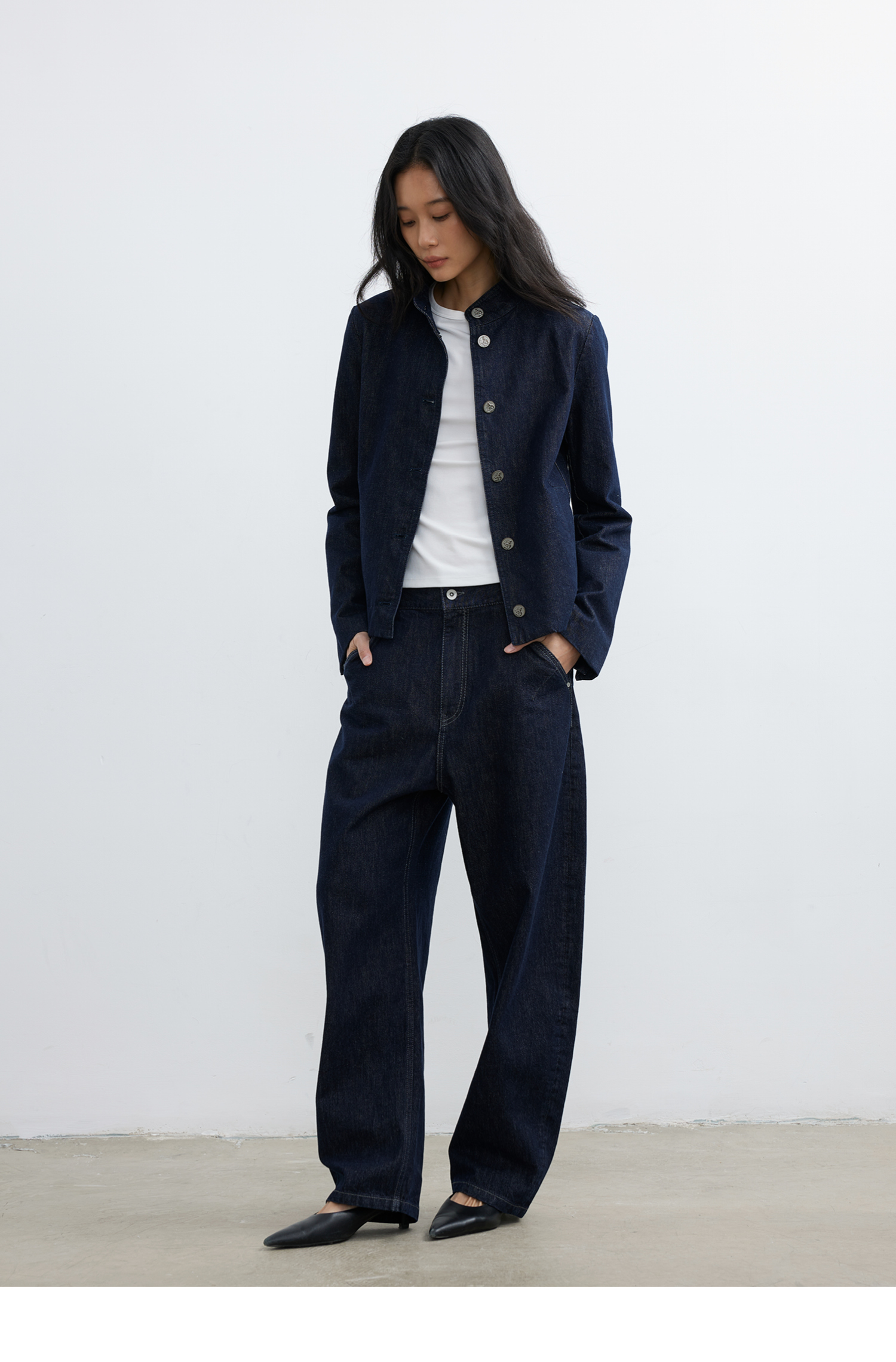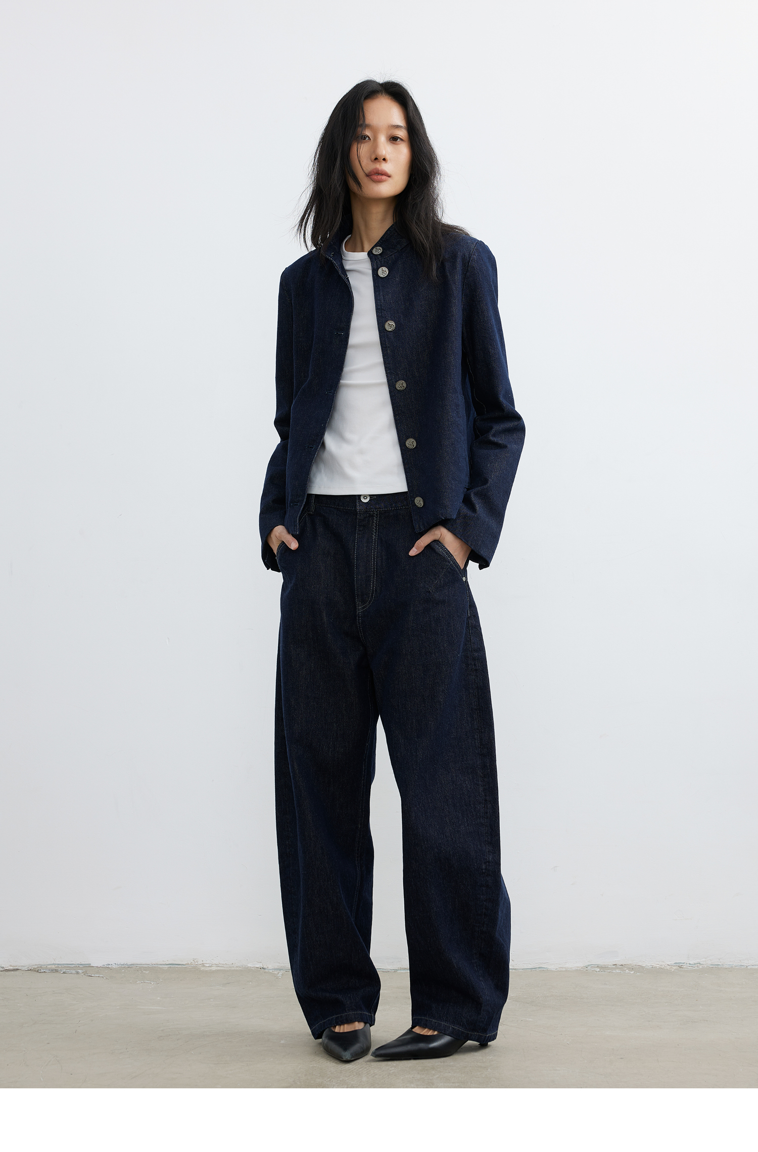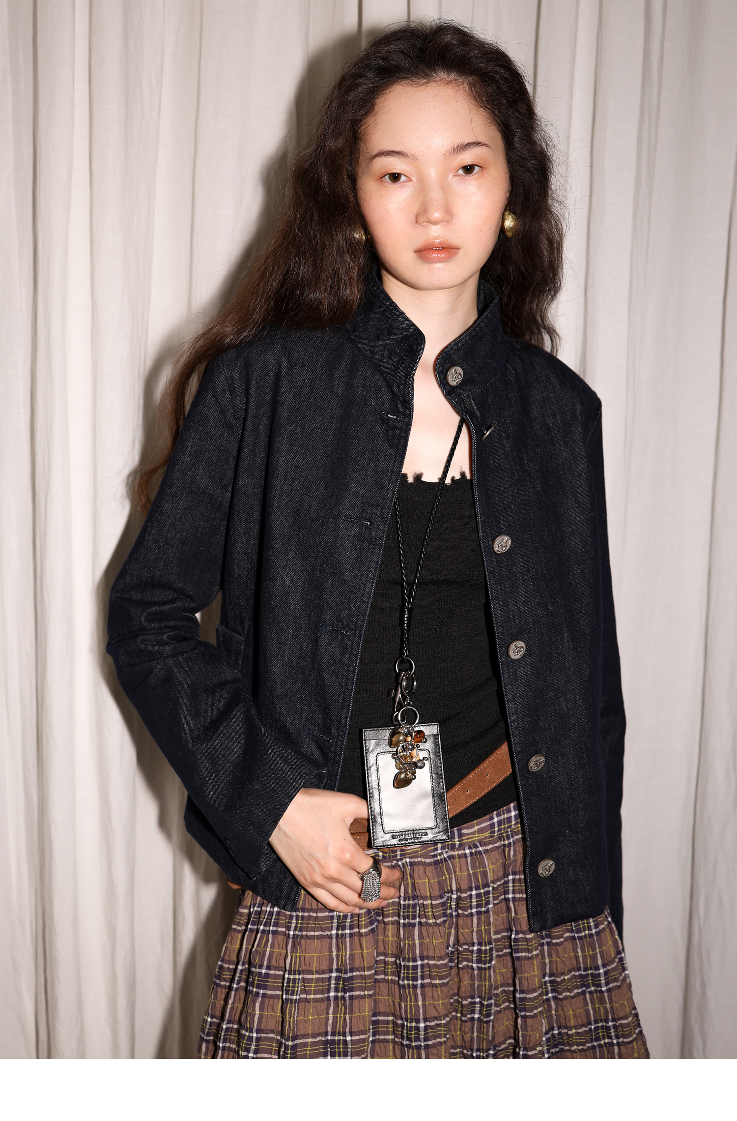 【8/6新品】素舶正肩立领金属古币纽扣不掉色原牛水洗牛仔外套