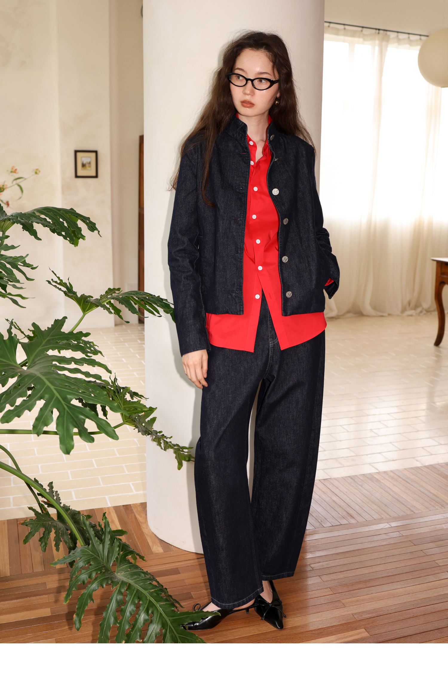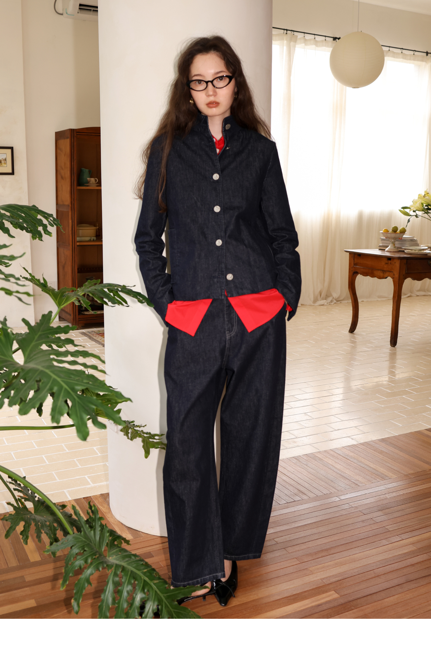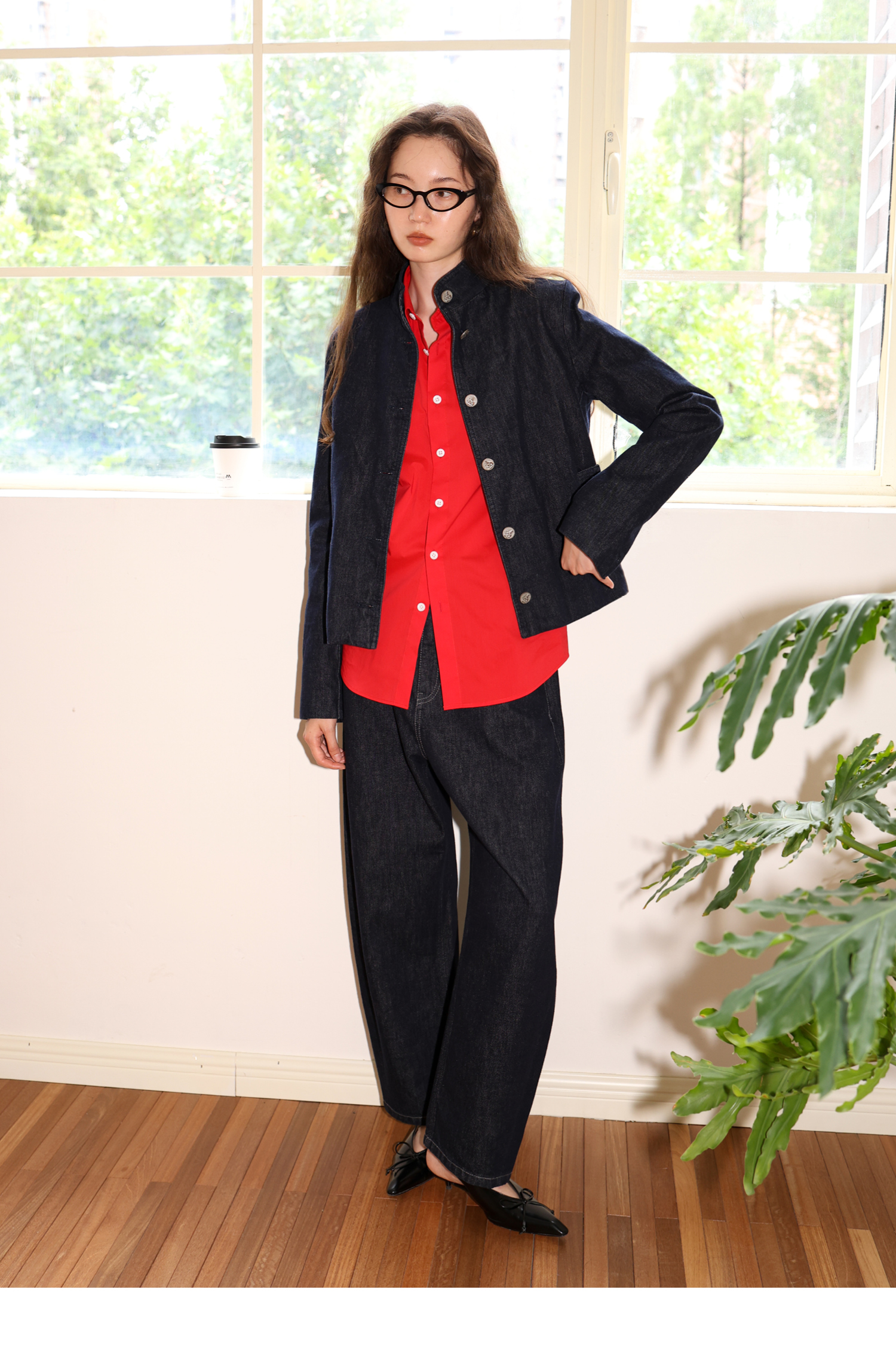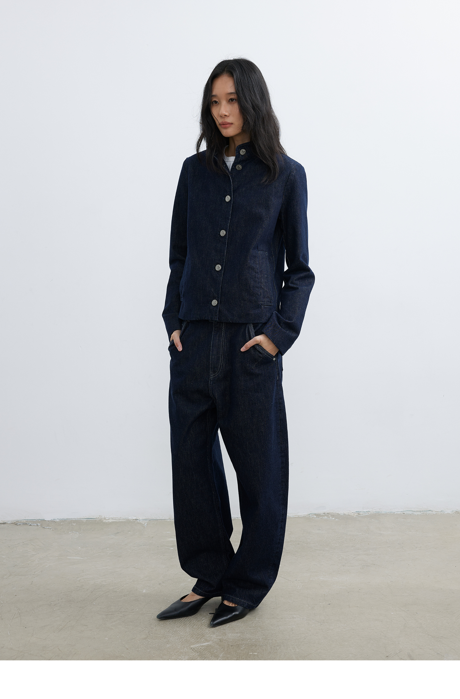 【8/6新品】素舶正肩立领金属古币纽扣不掉色原牛水洗牛仔外套