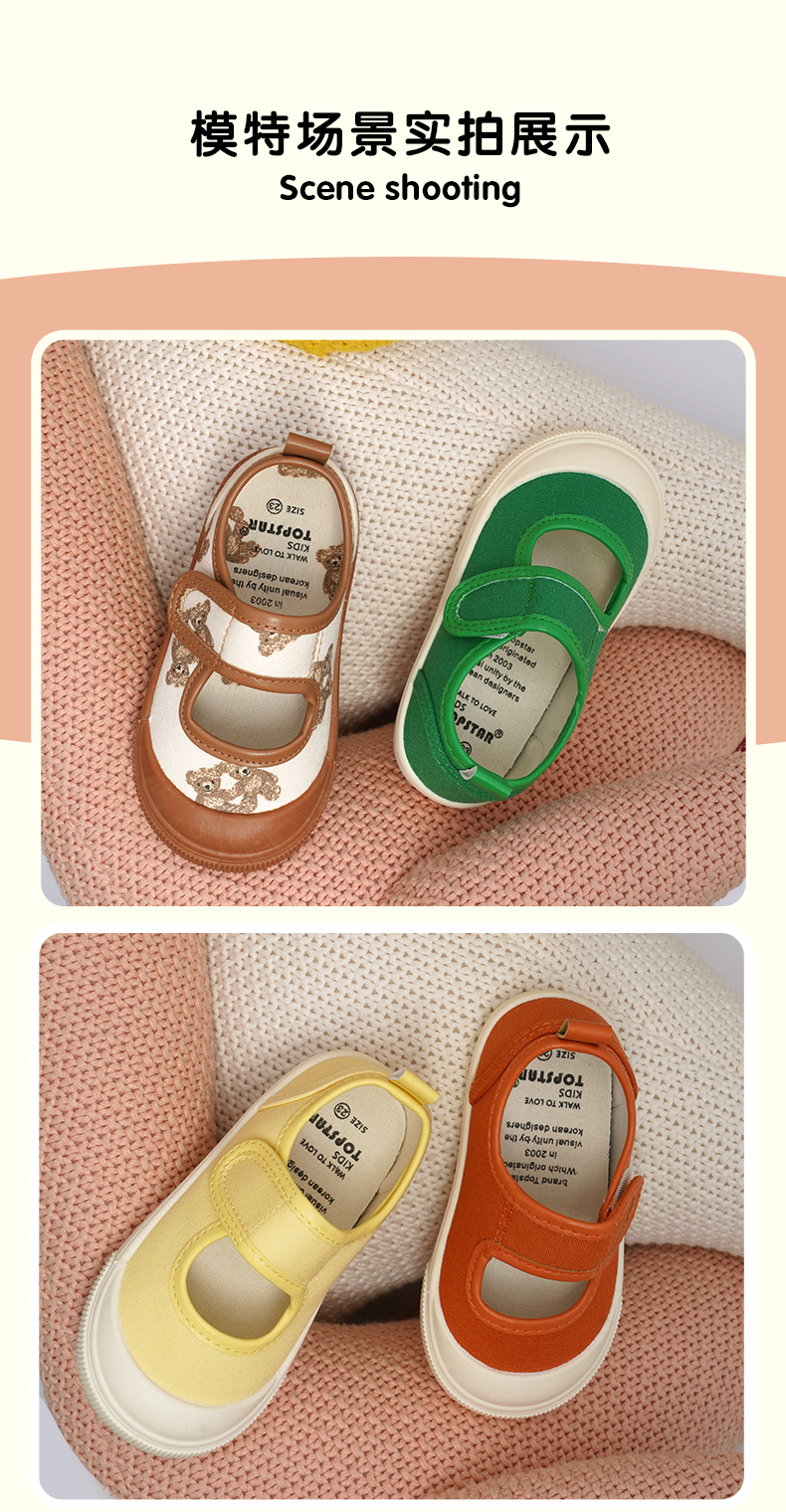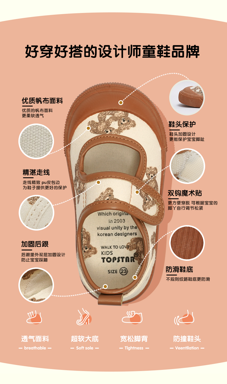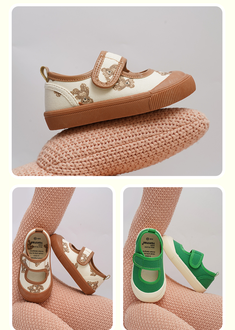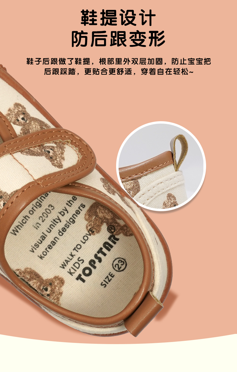 TOPSTAR男女童软萌小熊魔术贴软底幼儿园帆布板鞋1239