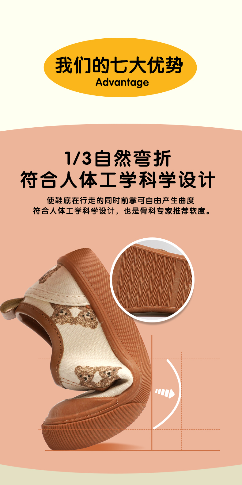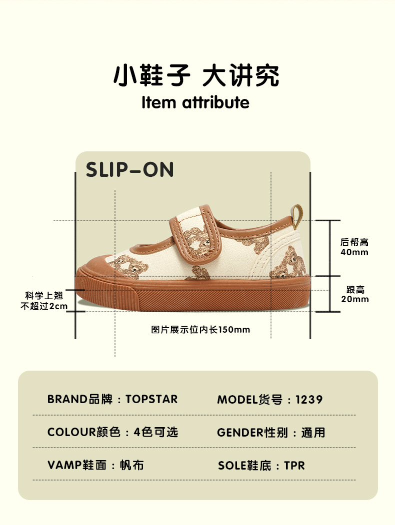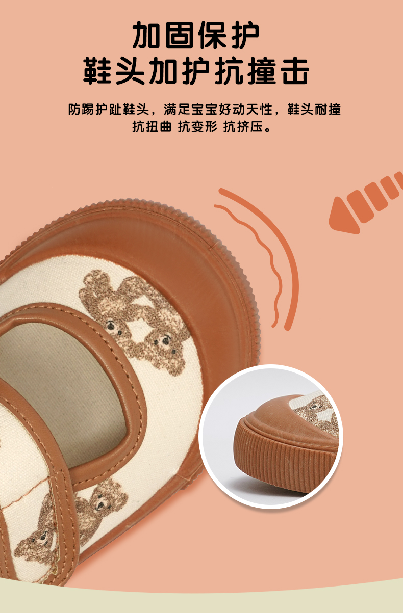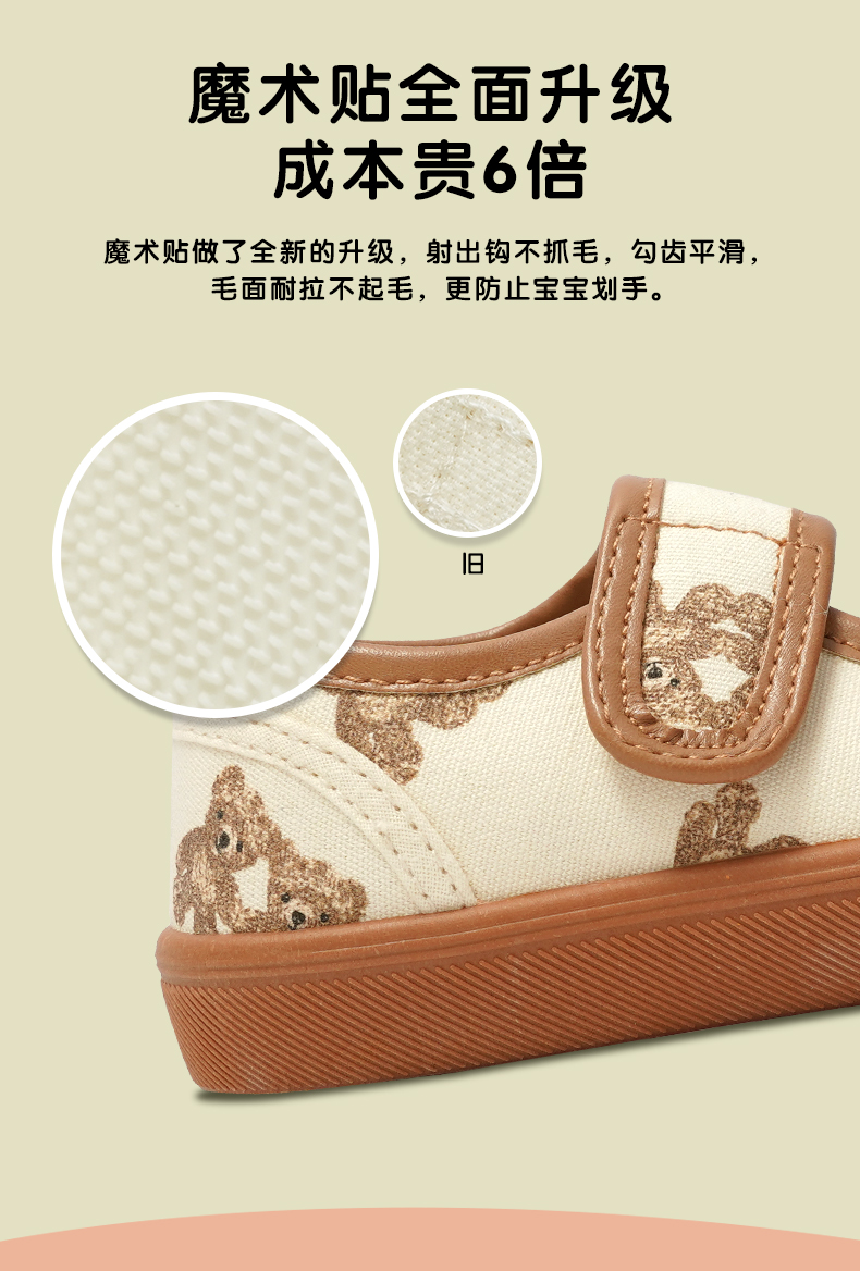 TOPSTAR男女童软萌小熊魔术贴软底幼儿园帆布板鞋1239