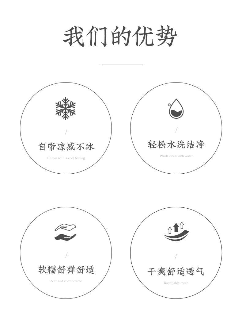 1、用新型 430g/平方高分子凉豆豆面料,自带凉感特性,夹层加捻柔软丝, 软糯舒弹, 凉而不冰 ,舒适爽滑,干爽透气。