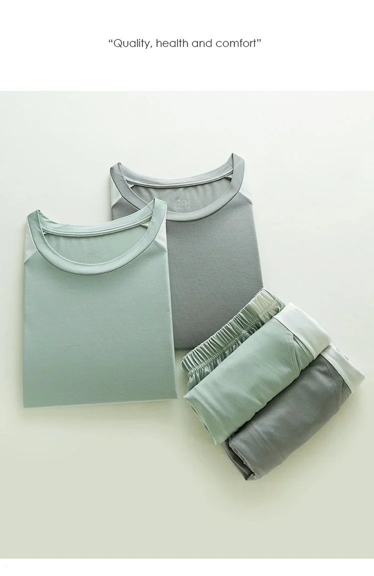 weyo男款冰丝棉撞色插肩短袖短裤套装休闲舒适家居服2576