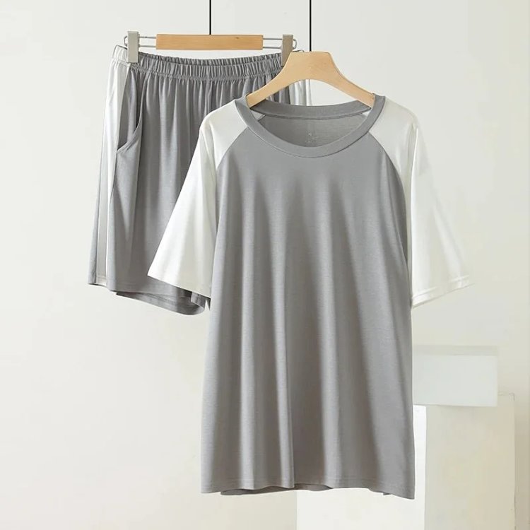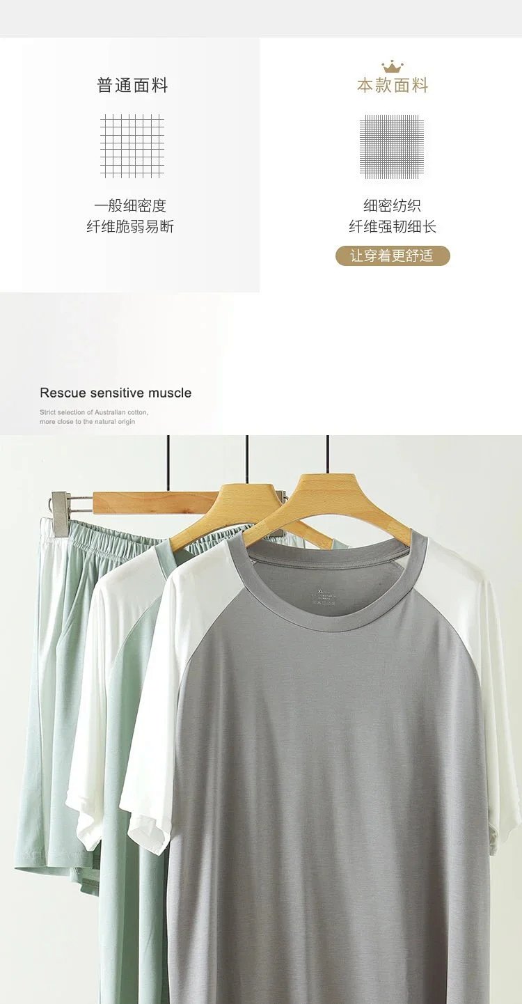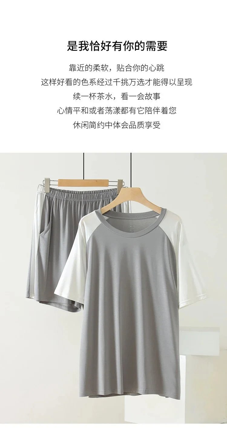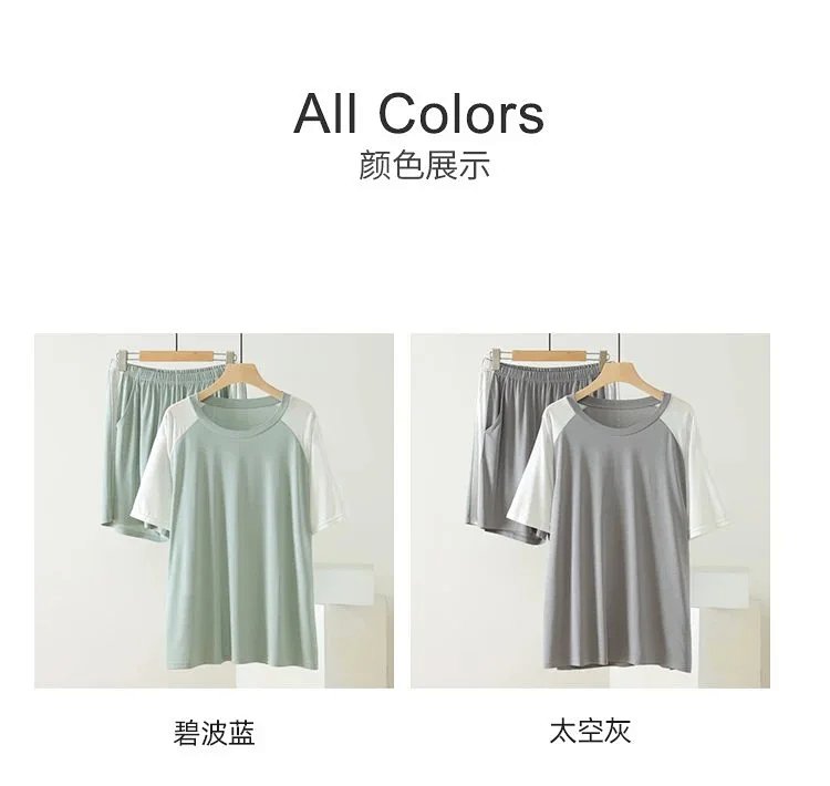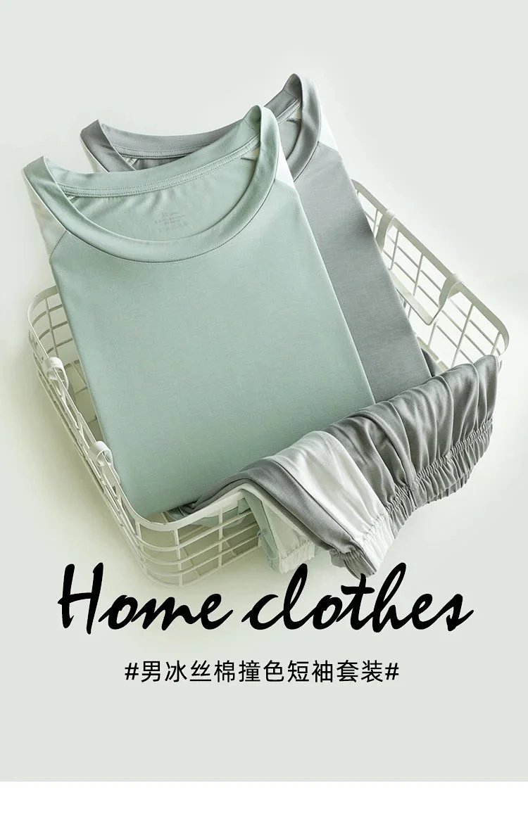 weyo男款冰丝棉撞色插肩短袖短裤套装休闲舒适家居服2576 商品图0
