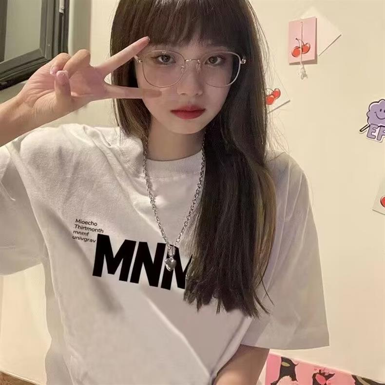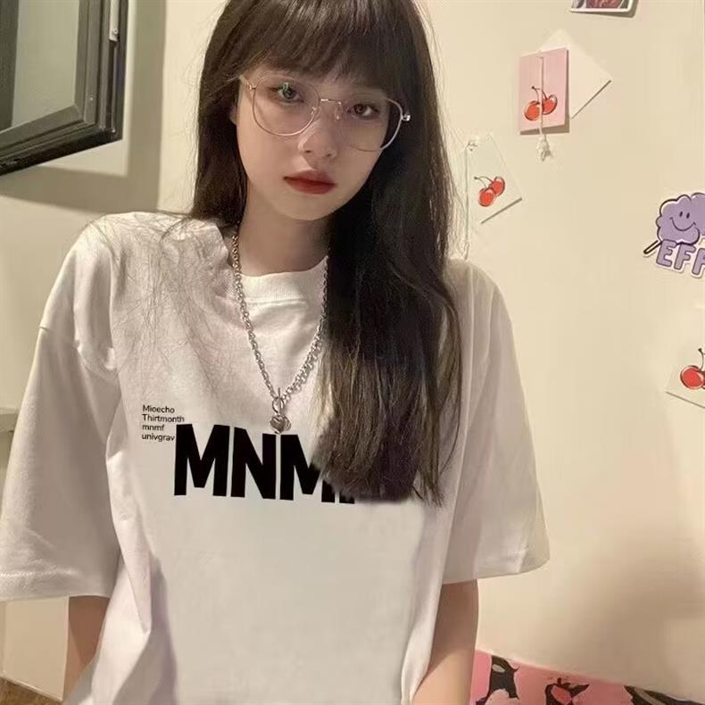 【宽松舒适!港风简约印花T恤】潮流百搭不易变形,纯棉T恤不易褪色,夏季小众美式风字母印花短袖女L