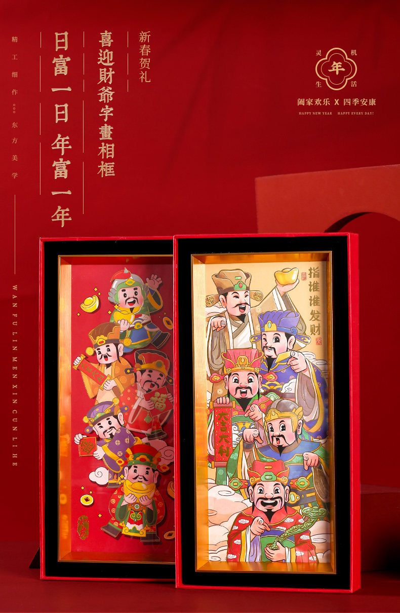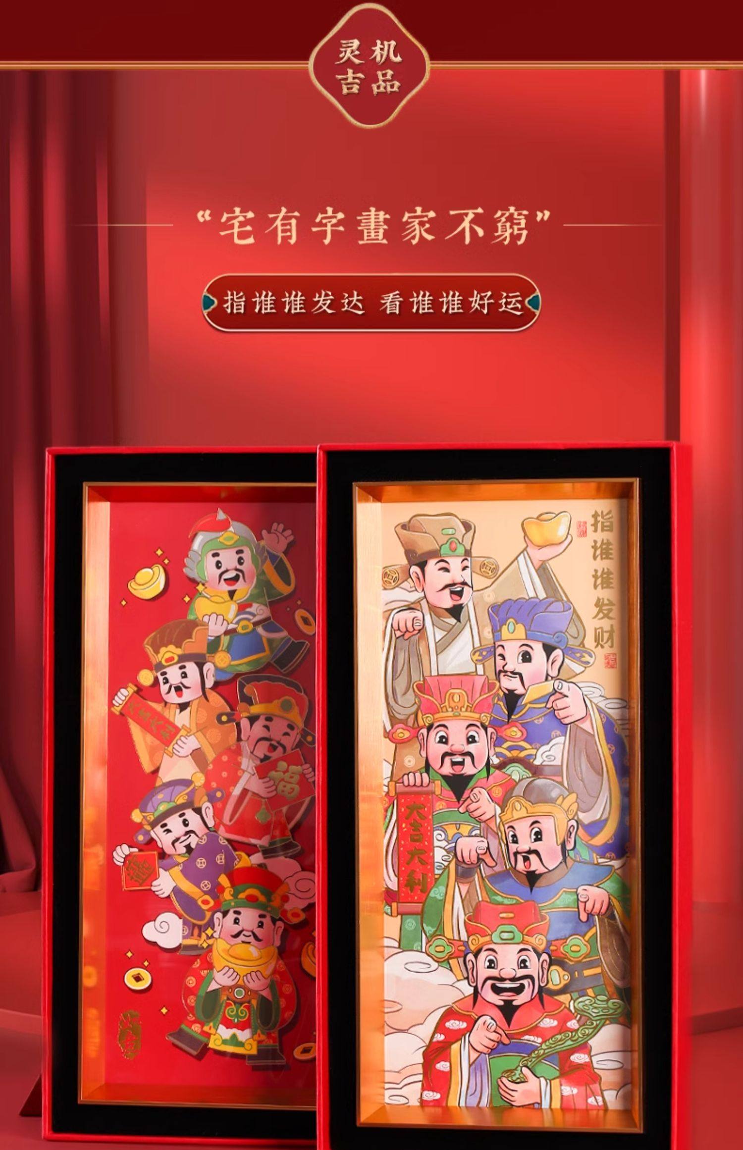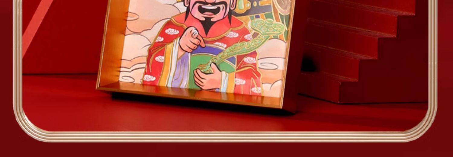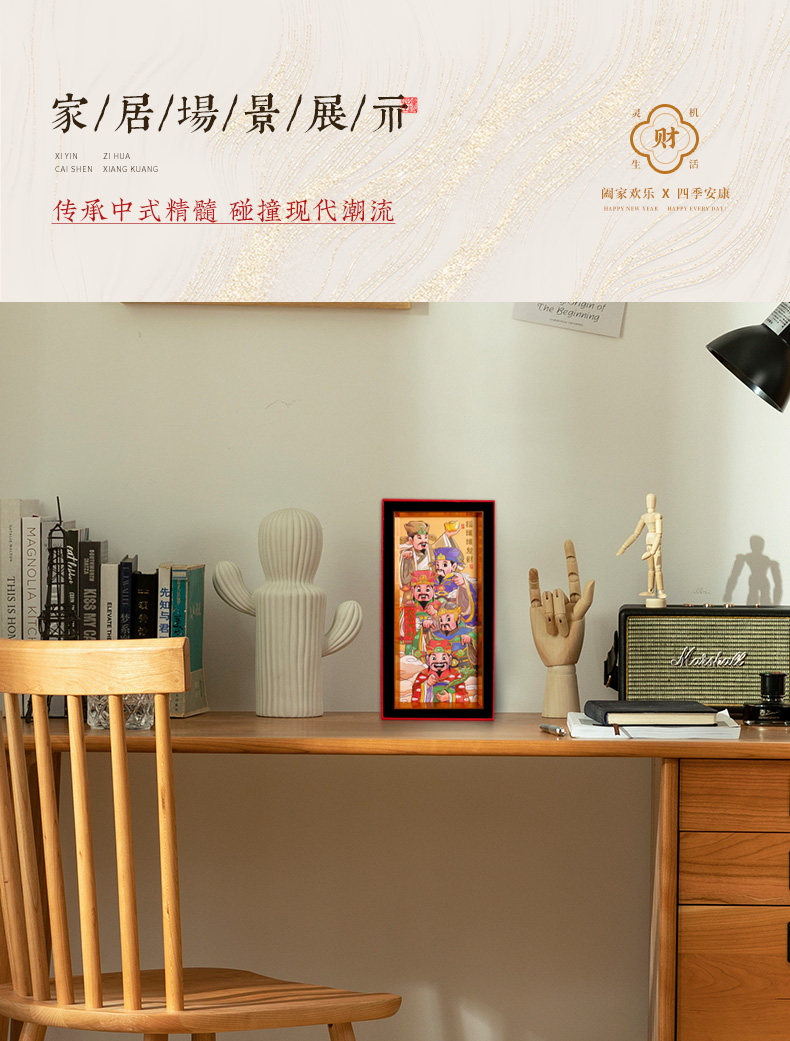 【祈愿吉品】喜迎财爷字画相框摆件办公桌前台收银卧室客厅