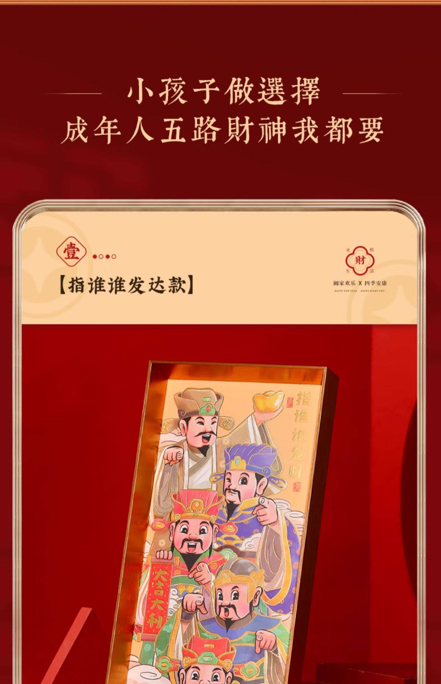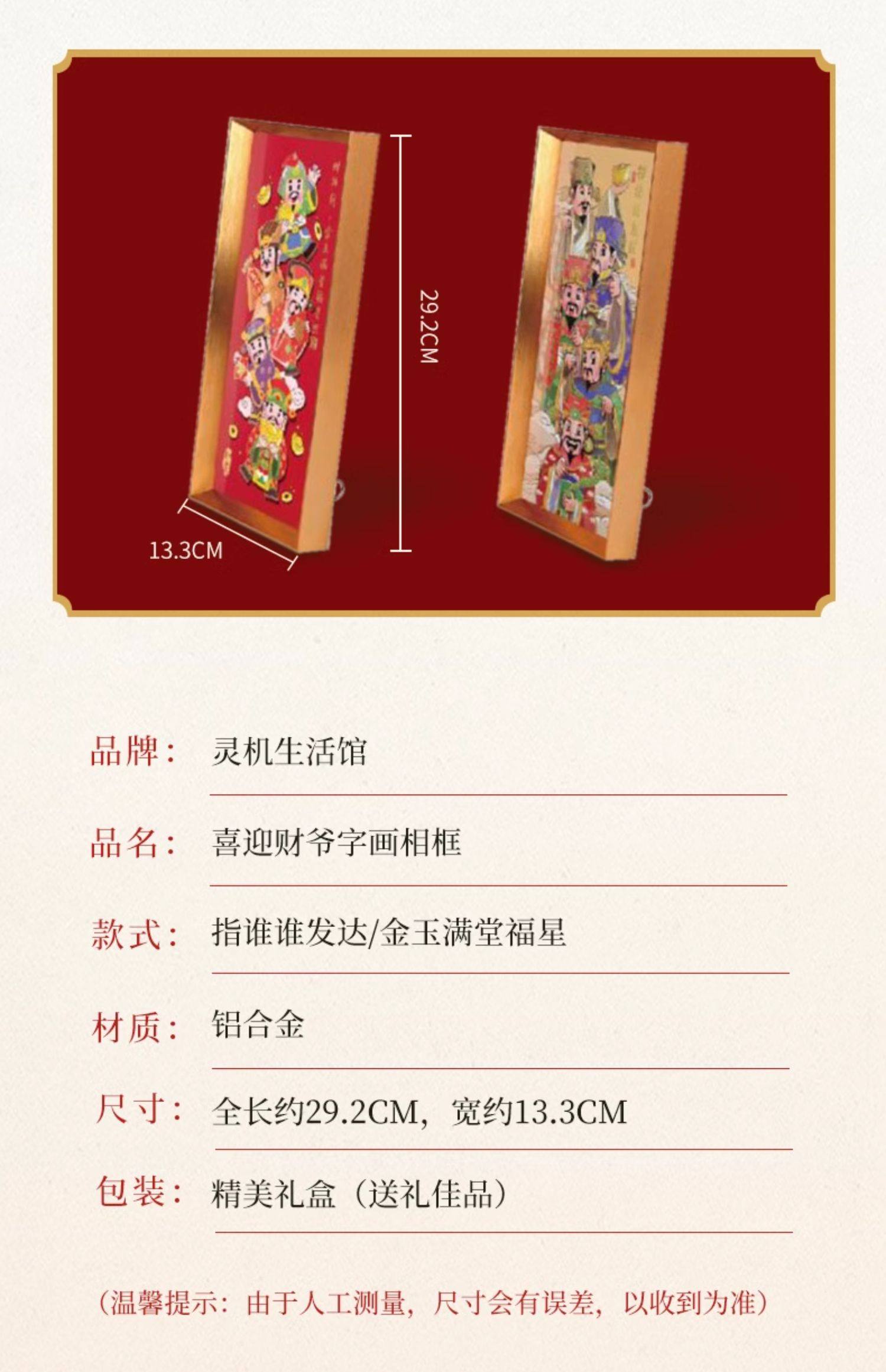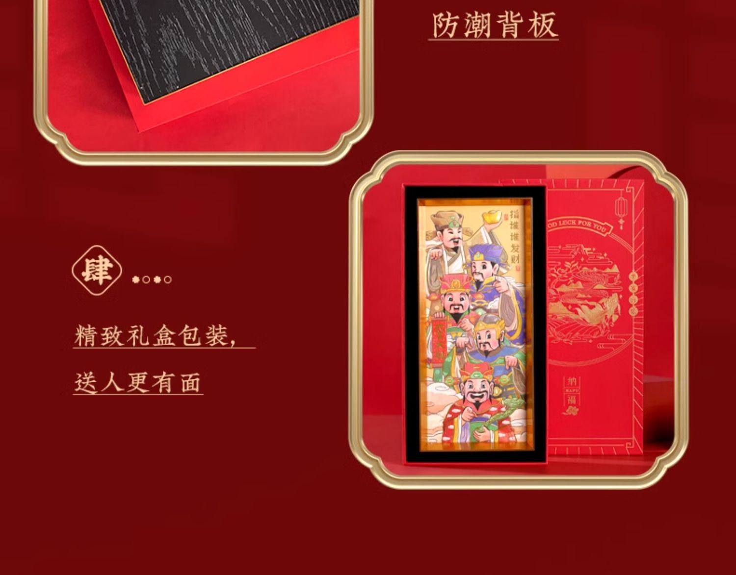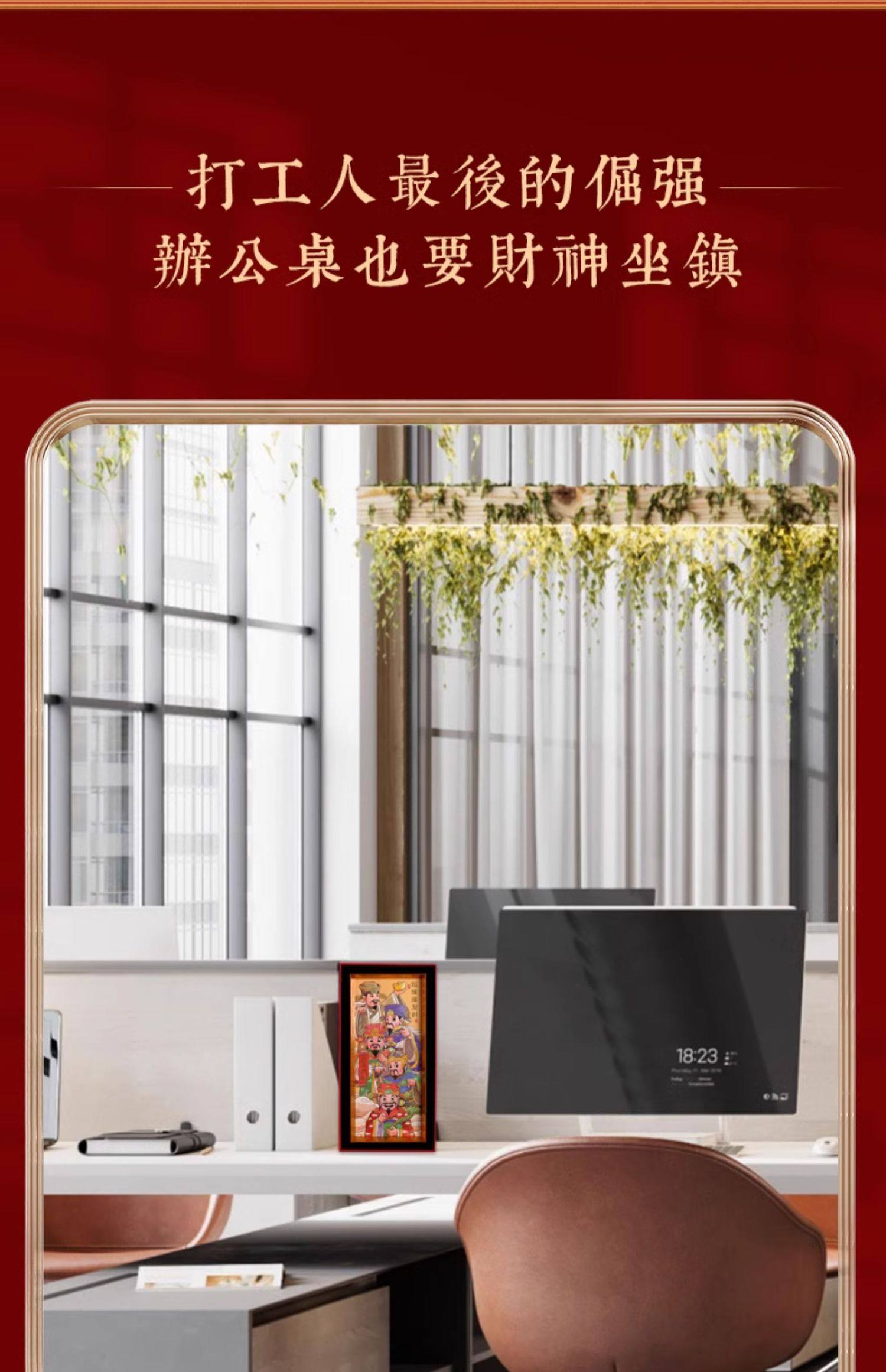【祈愿吉品】喜迎财爷字画相框摆件办公桌前台收银卧室客厅