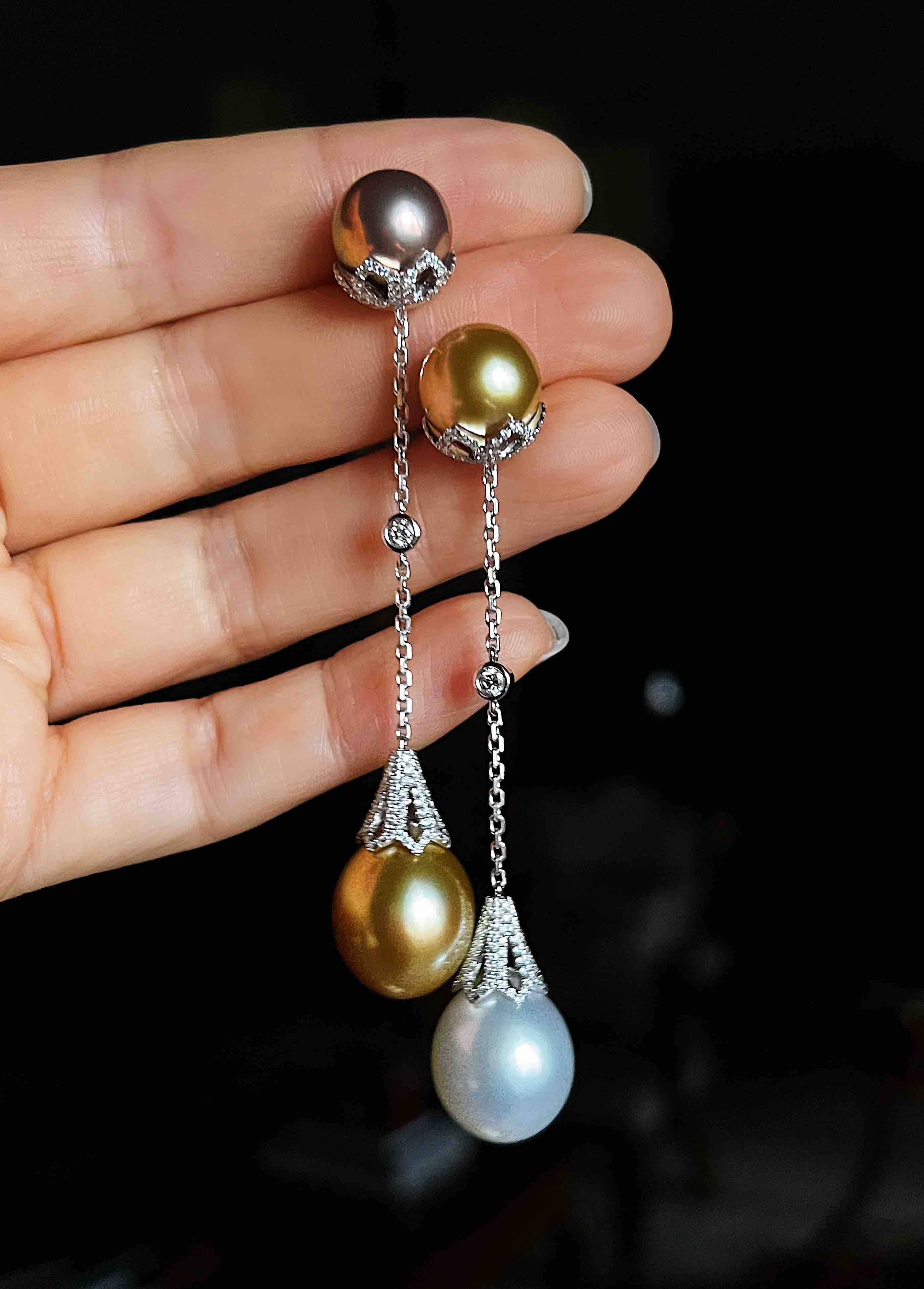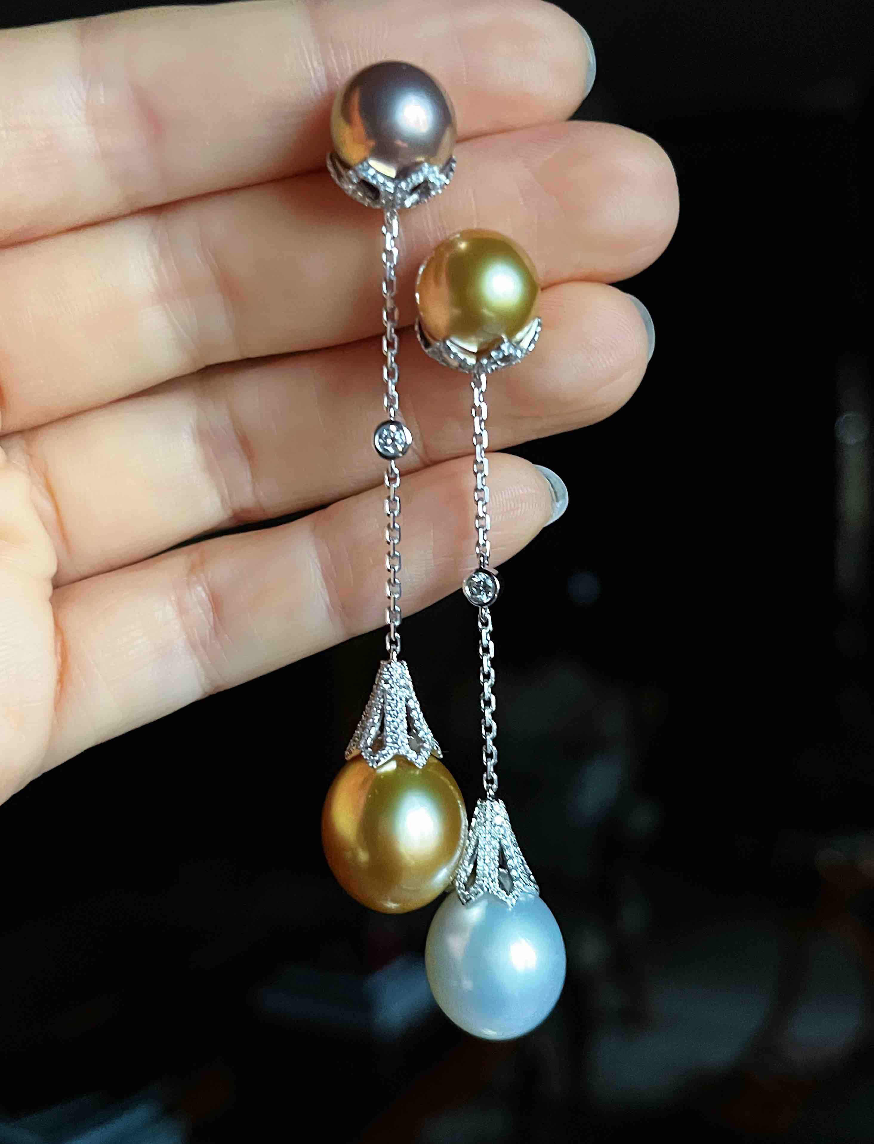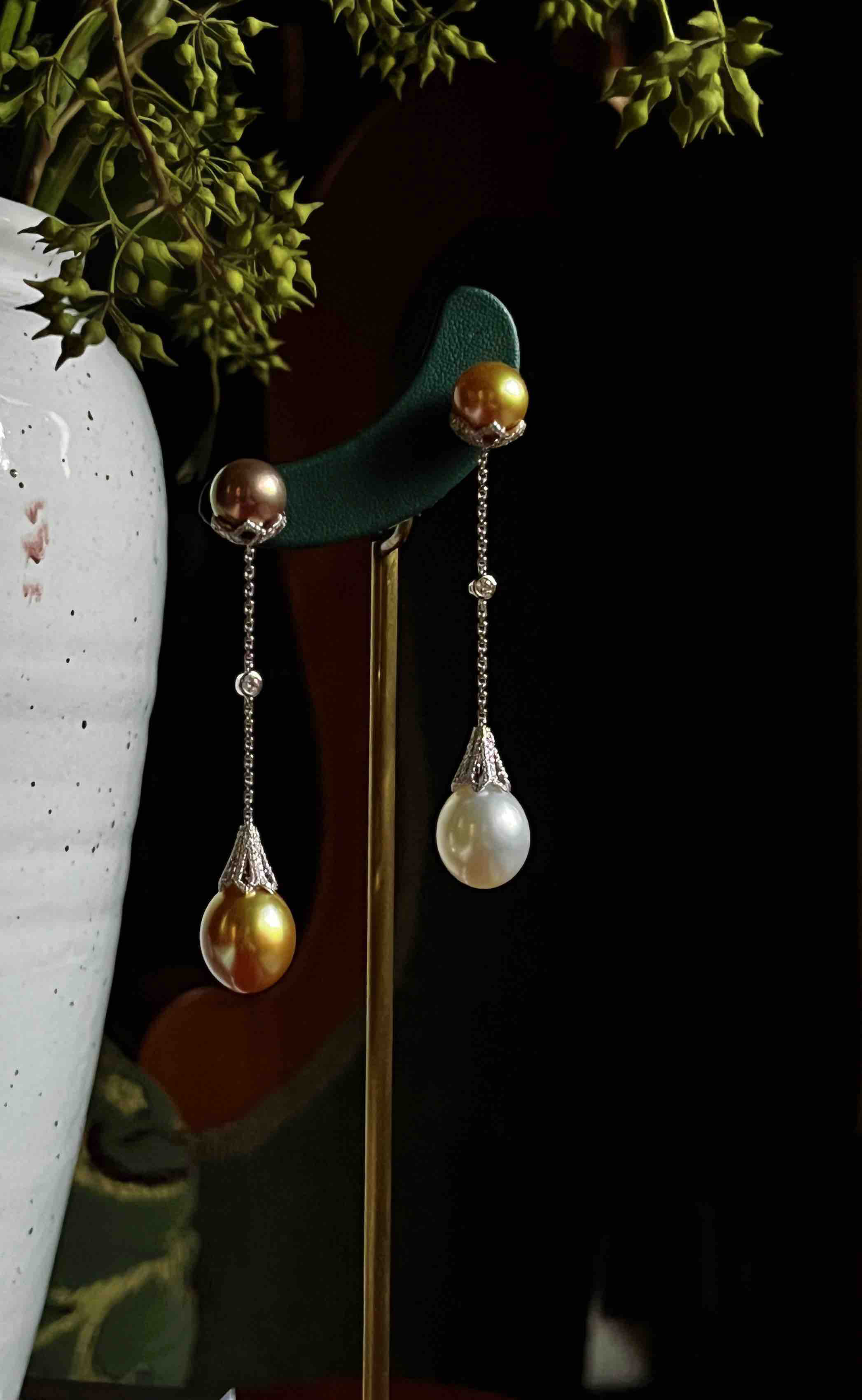 作品名称:18K镶钻石、南洋珍珠和爱迪生珍珠耳坠