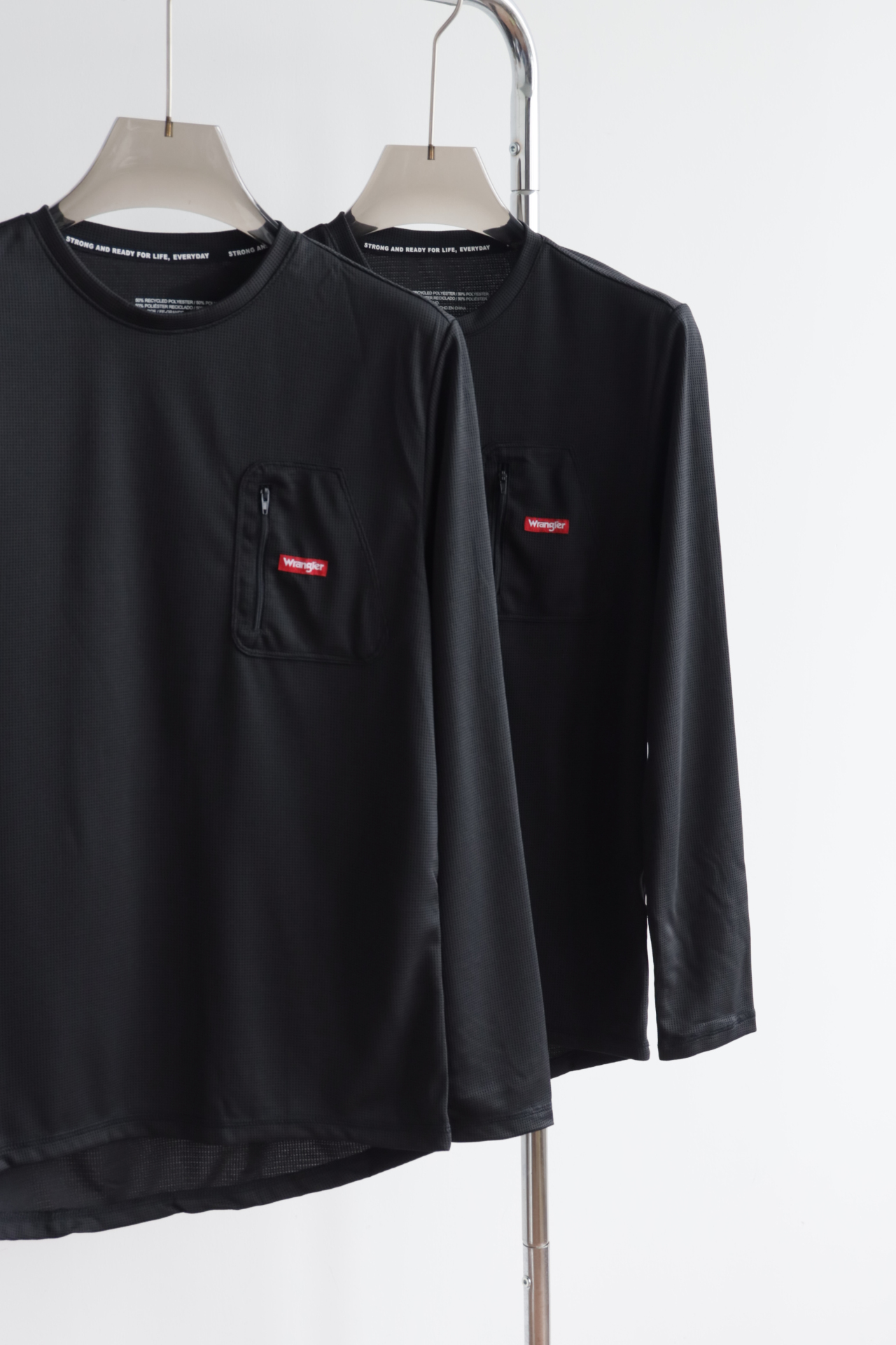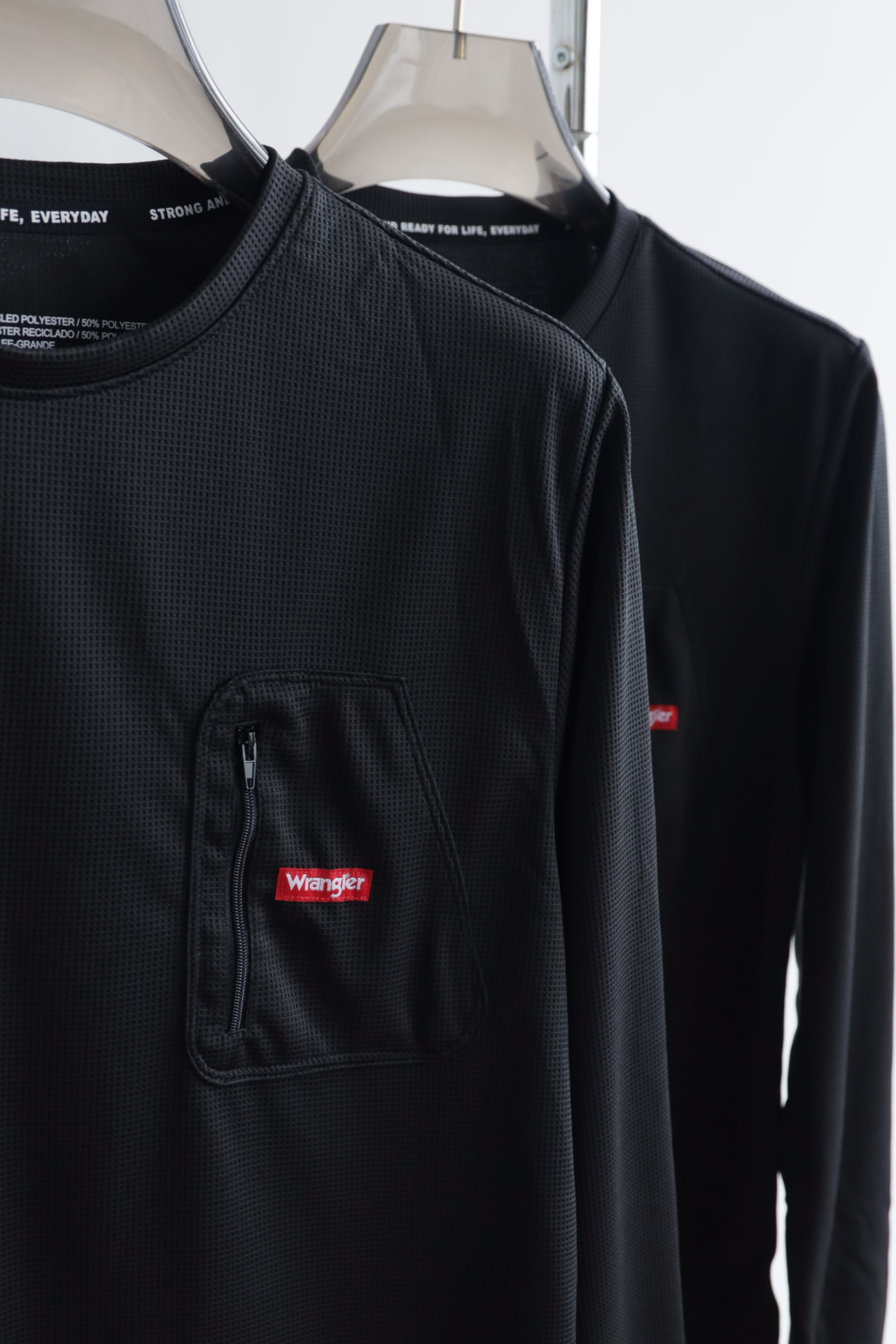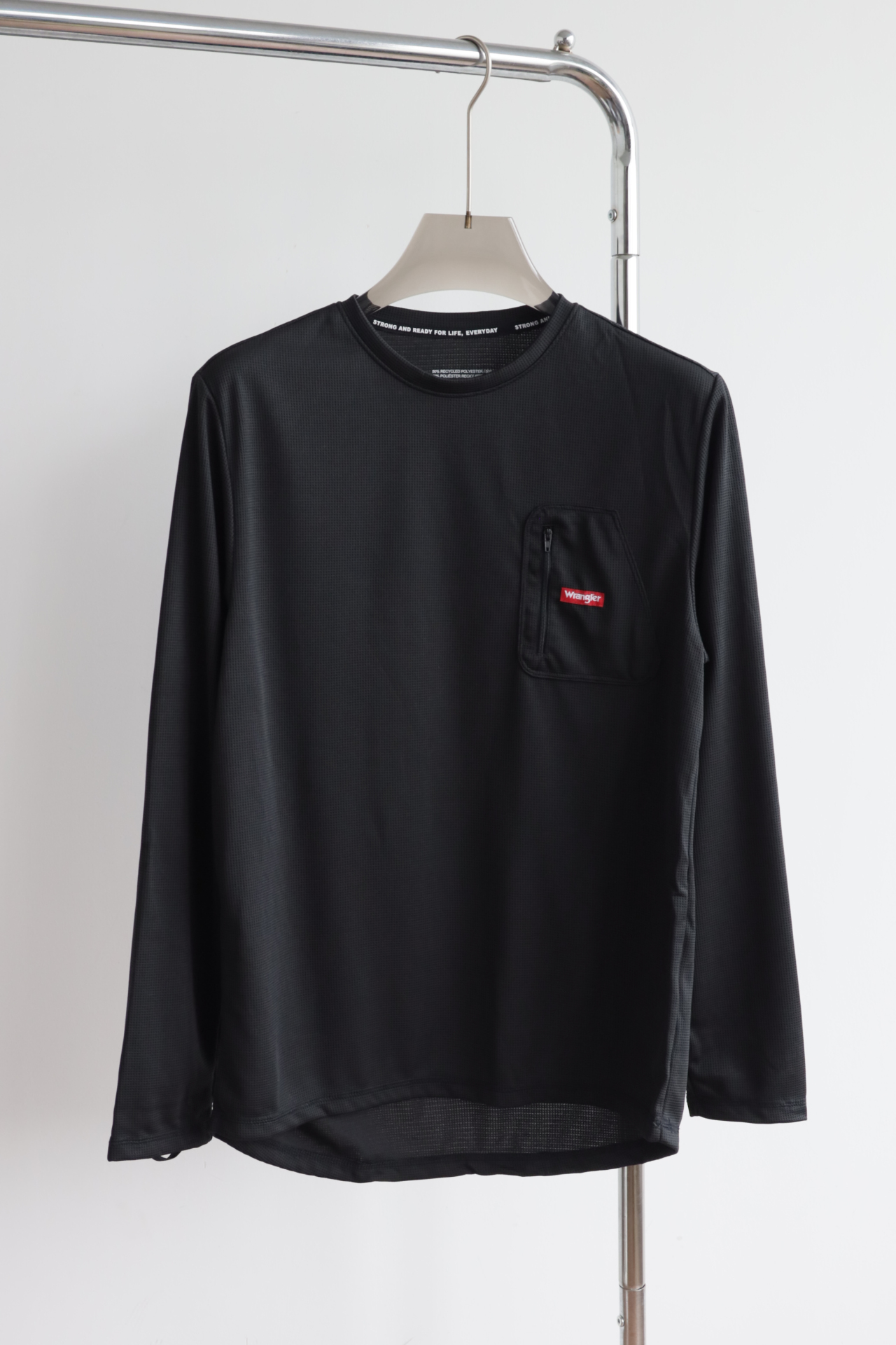 立体纹理速干透气,胸前定制拉链口袋设计,点缀品牌红标细节,低调彰显质感;