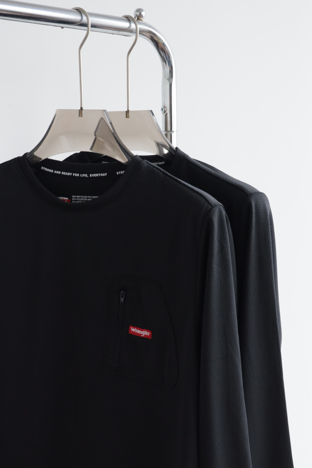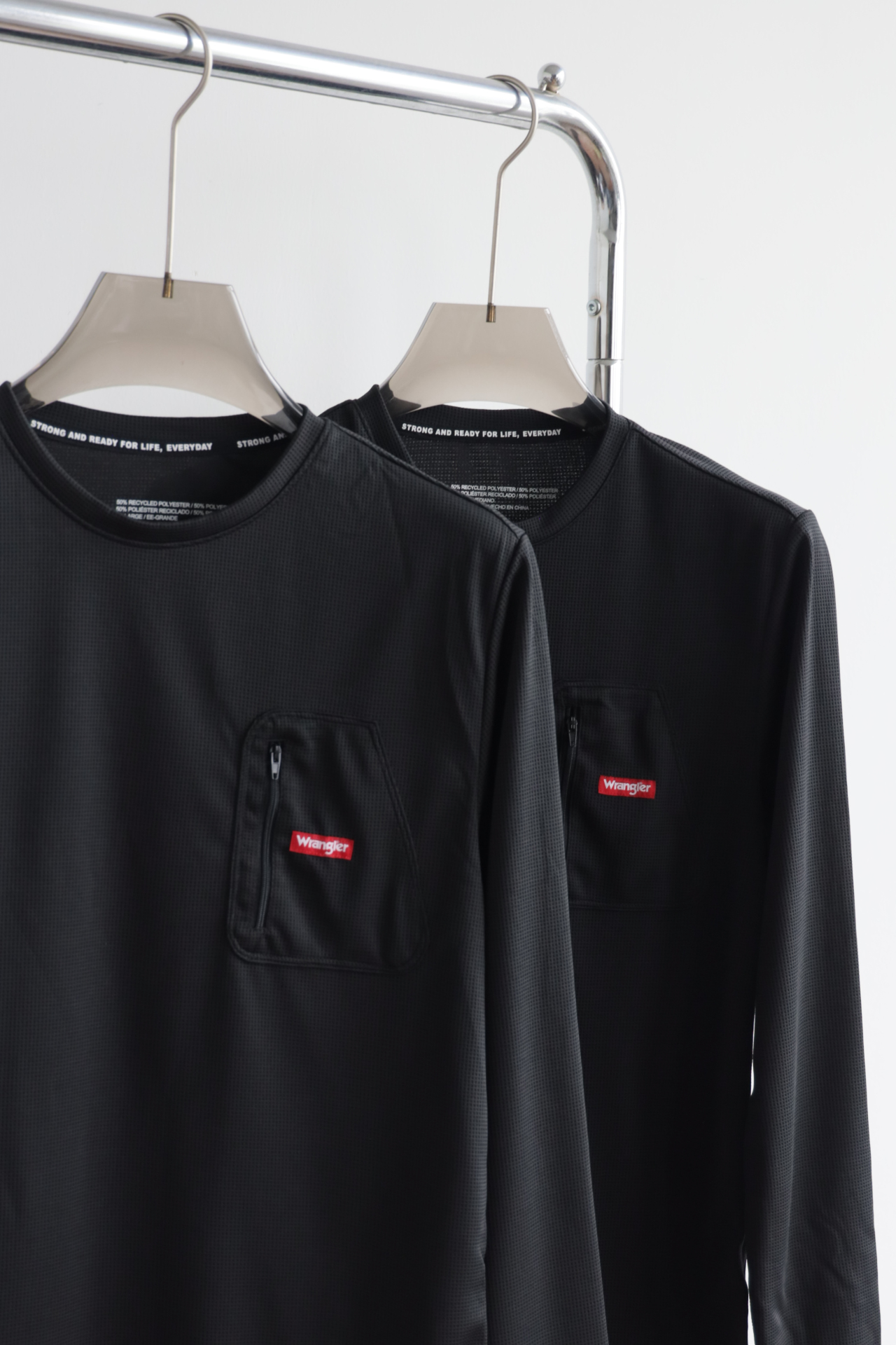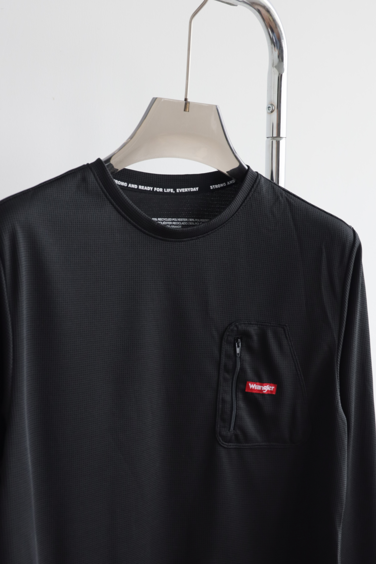 立体纹理速干透气,胸前定制拉链口袋设计,点缀品牌红标细节,低调彰显质感;
