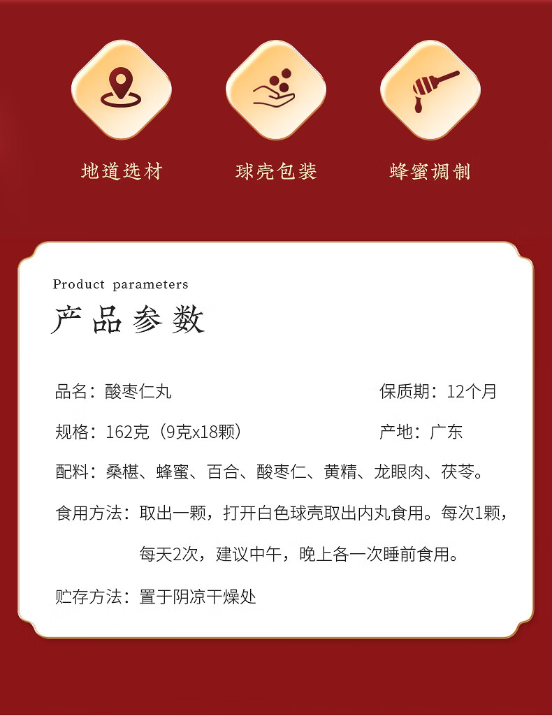【红杏林专属】福东海 酸枣仁丸162克/盒 拍一发三 酸枣仁桑葚茯苓桂圆百合蜂蜜养生丸