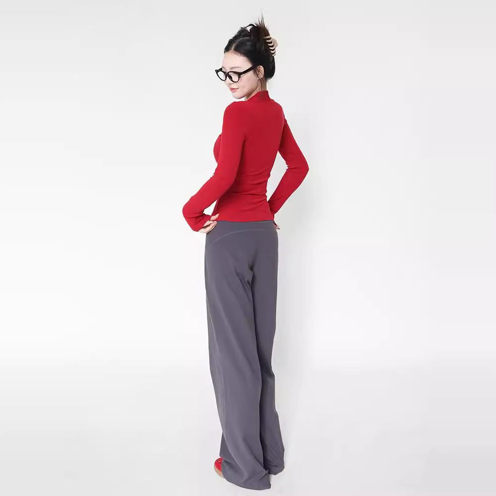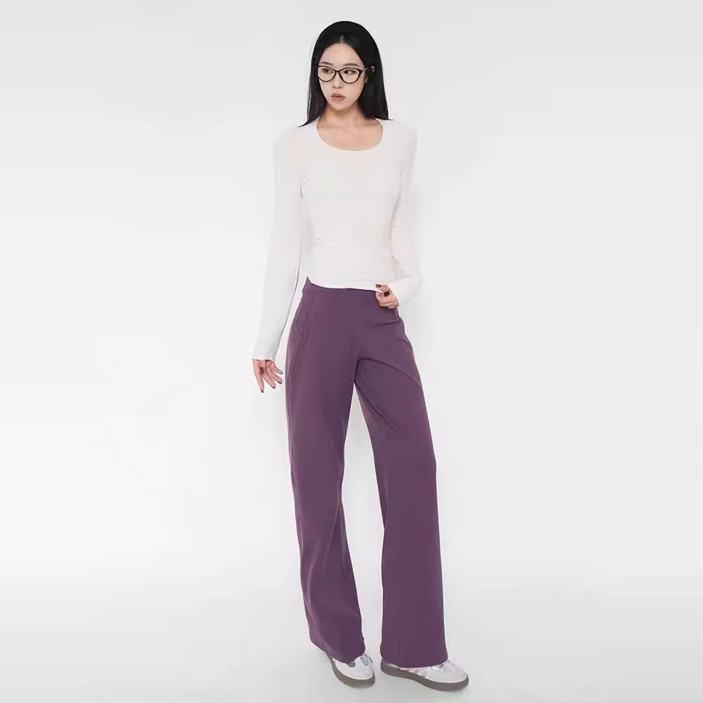 跃牌【禅语梵心】高腰加绒收腹运动宽松直筒长裤女CK3068