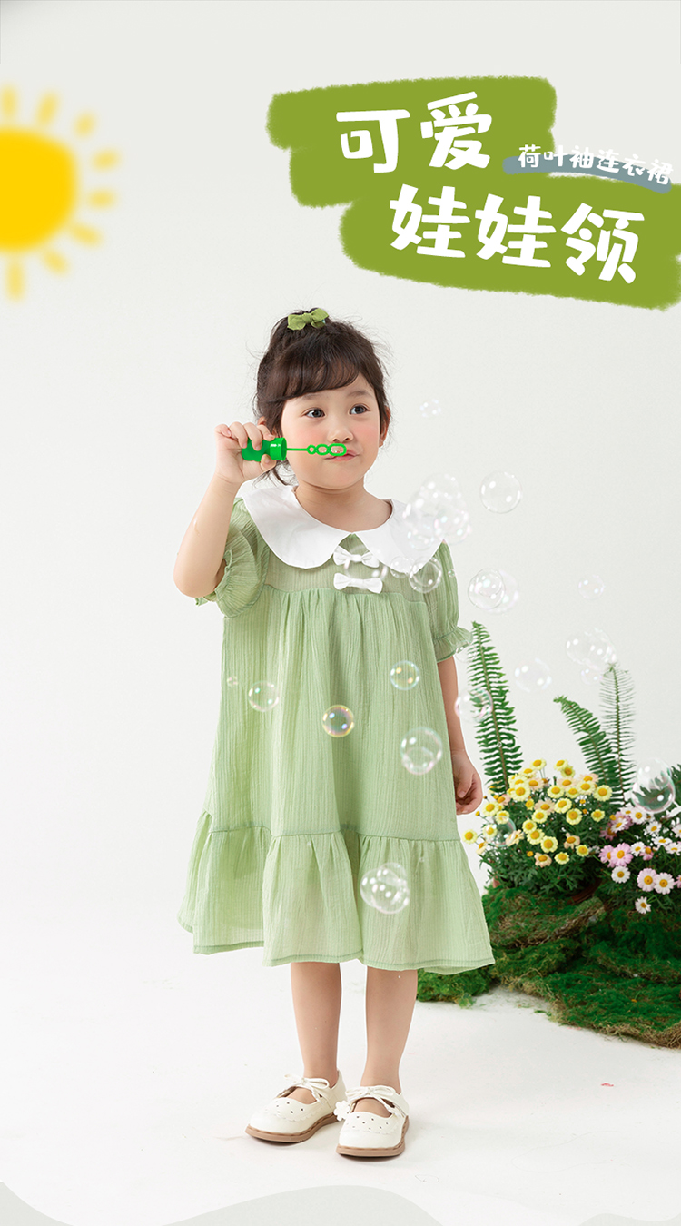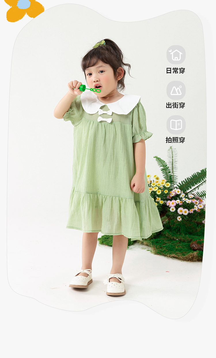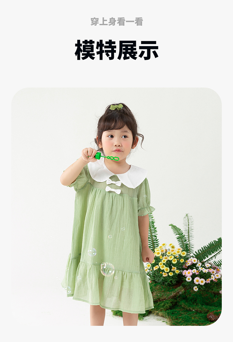 贝贝怡儿童裙子夏季新款薄款亲肤透气甜美短袖宝宝连衣裙ZB2DQ008