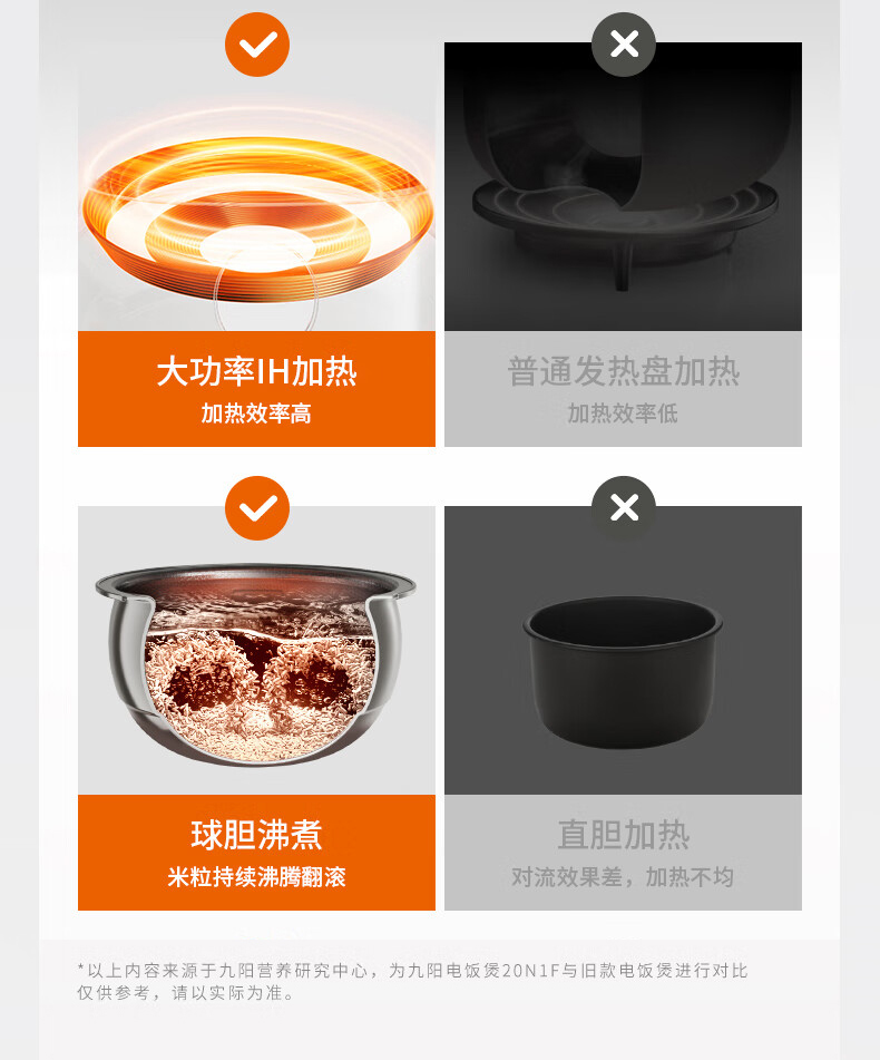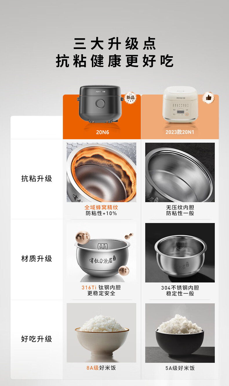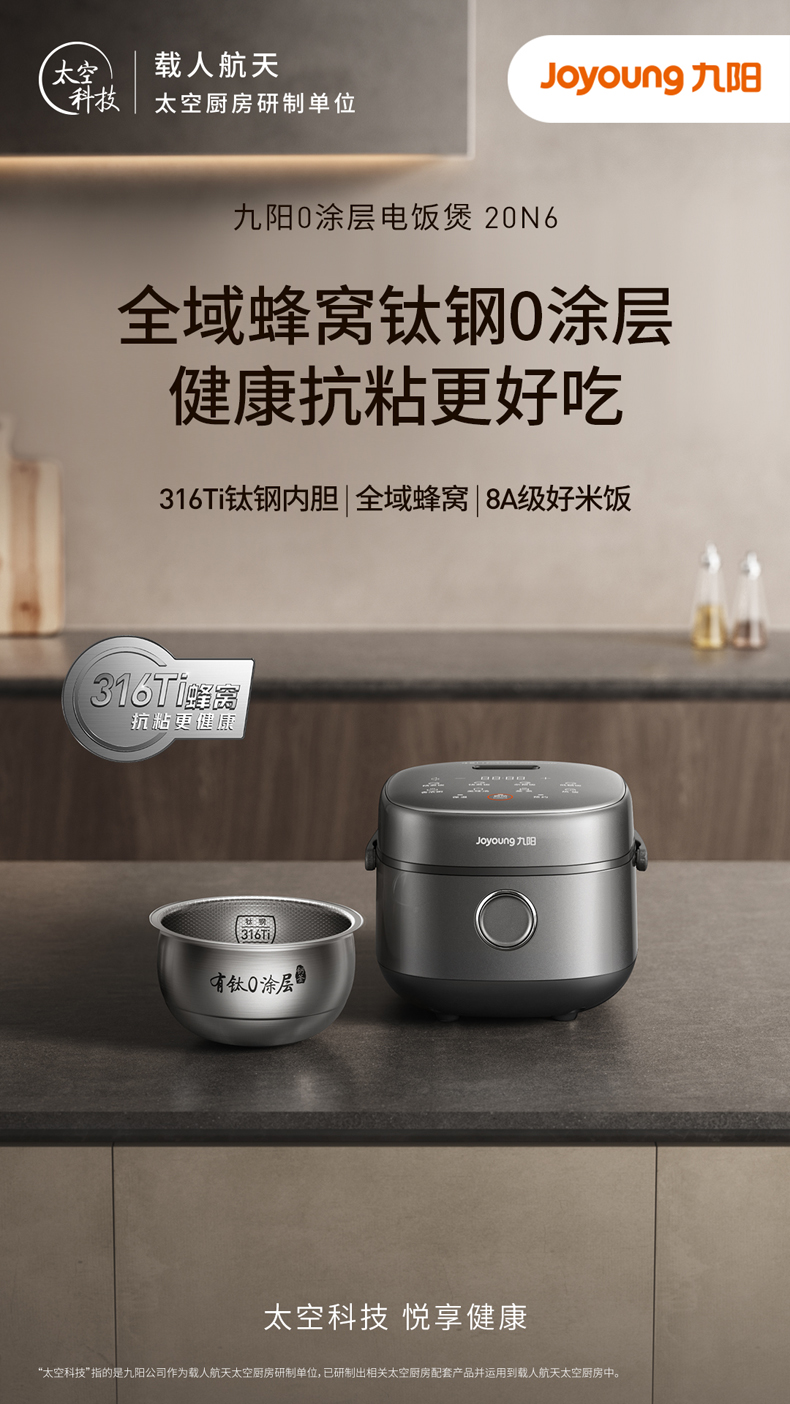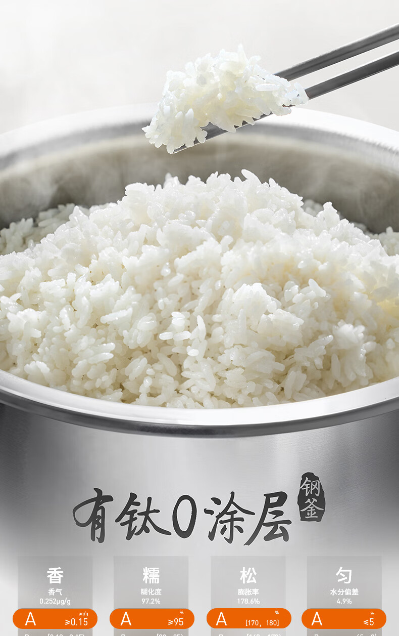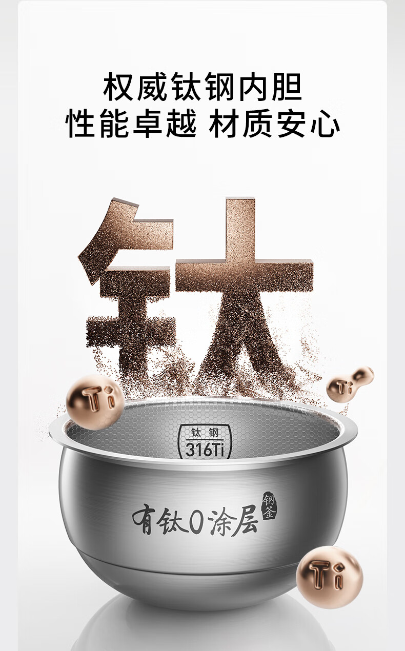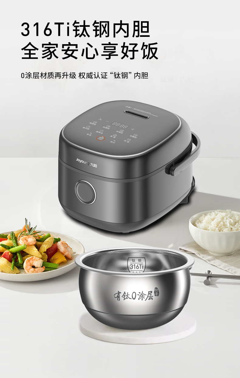 九阳IH全域蜂窝钛钢0涂层电饭煲有钛316Ti钢胆2.0L升低糖饭电饭锅