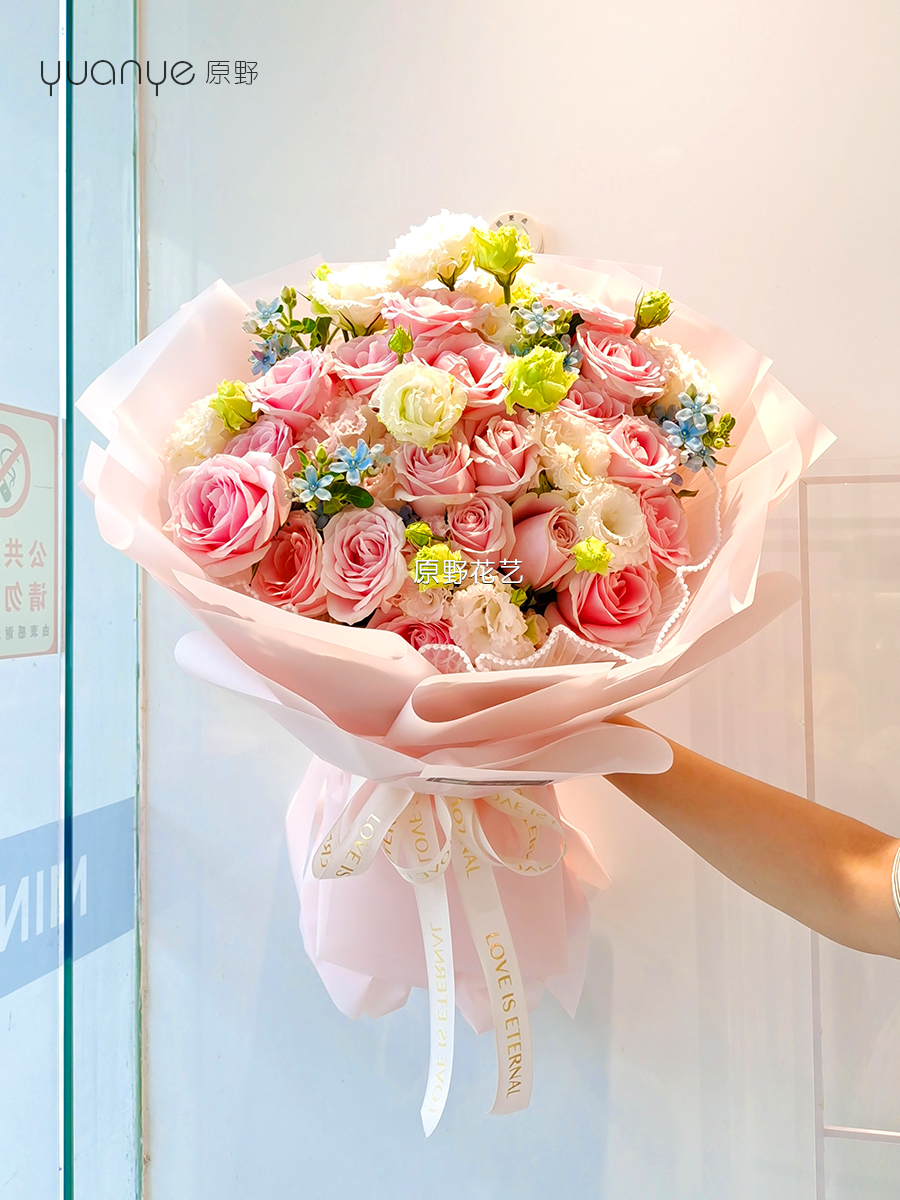 【粉色佳人】粉玫瑰混搭花束