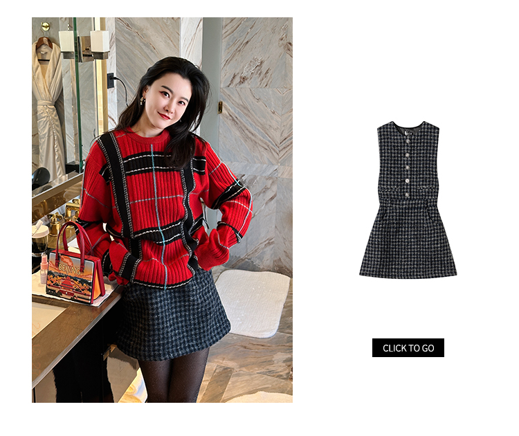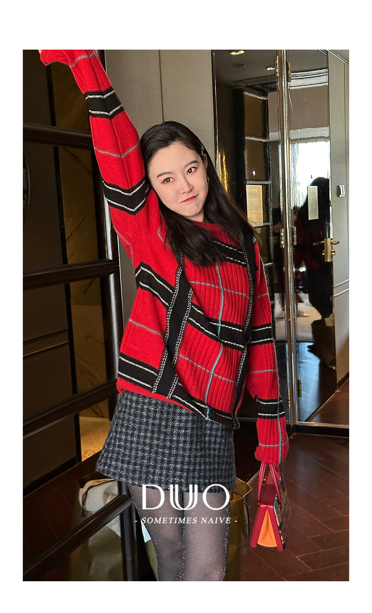DUO智仙生 红色魔力复古苏格兰学院风羊毛针织衫