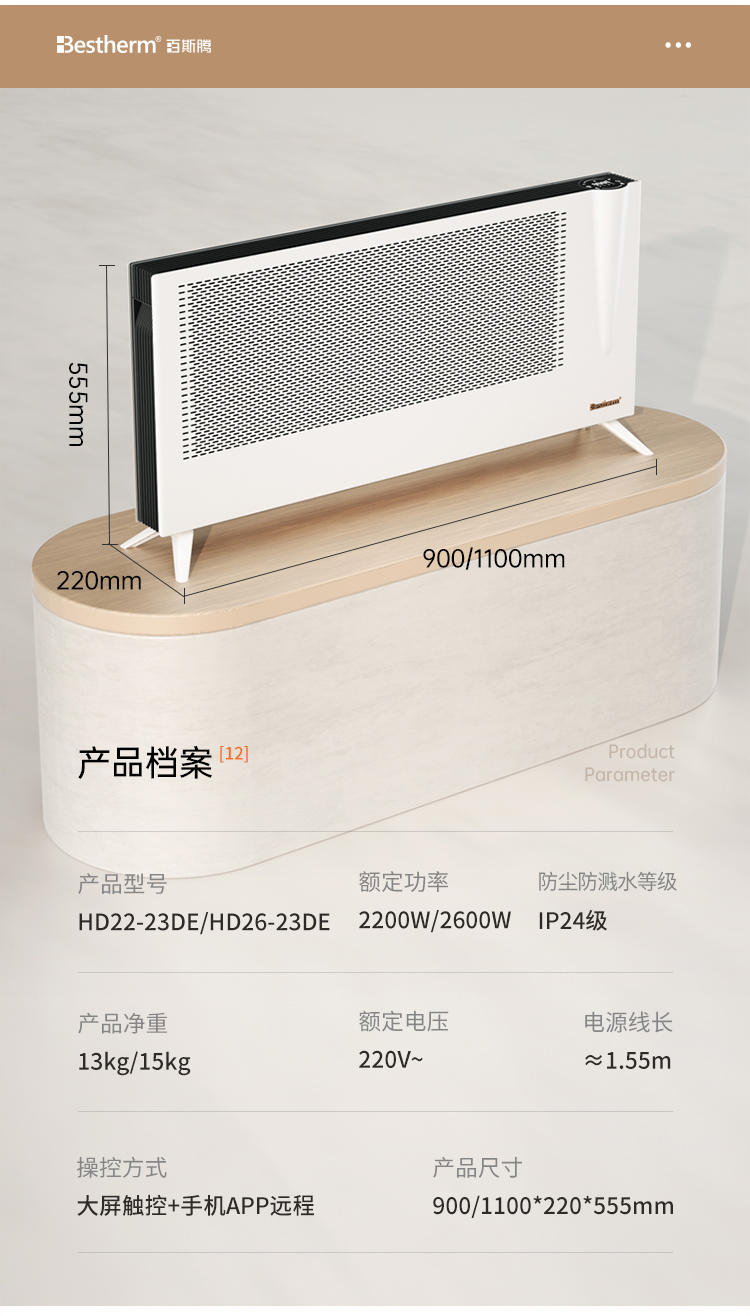 Bestherm百斯腾火炬系列双制热双散热抗菌全屋主供暖电暖器H1