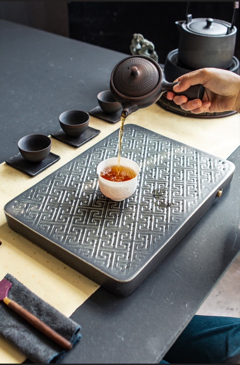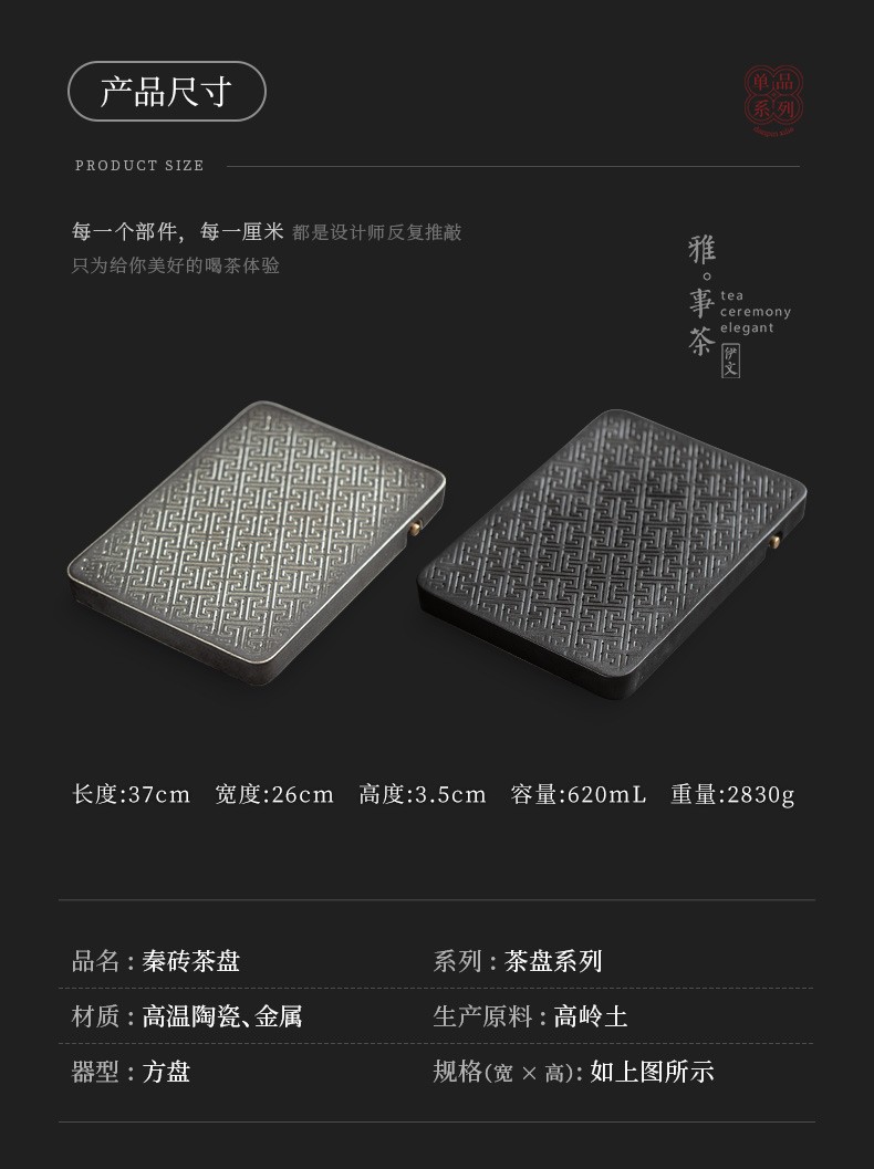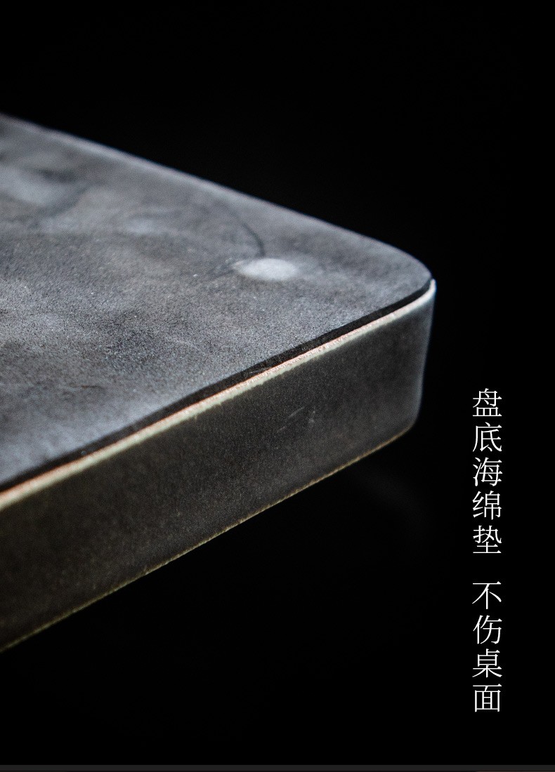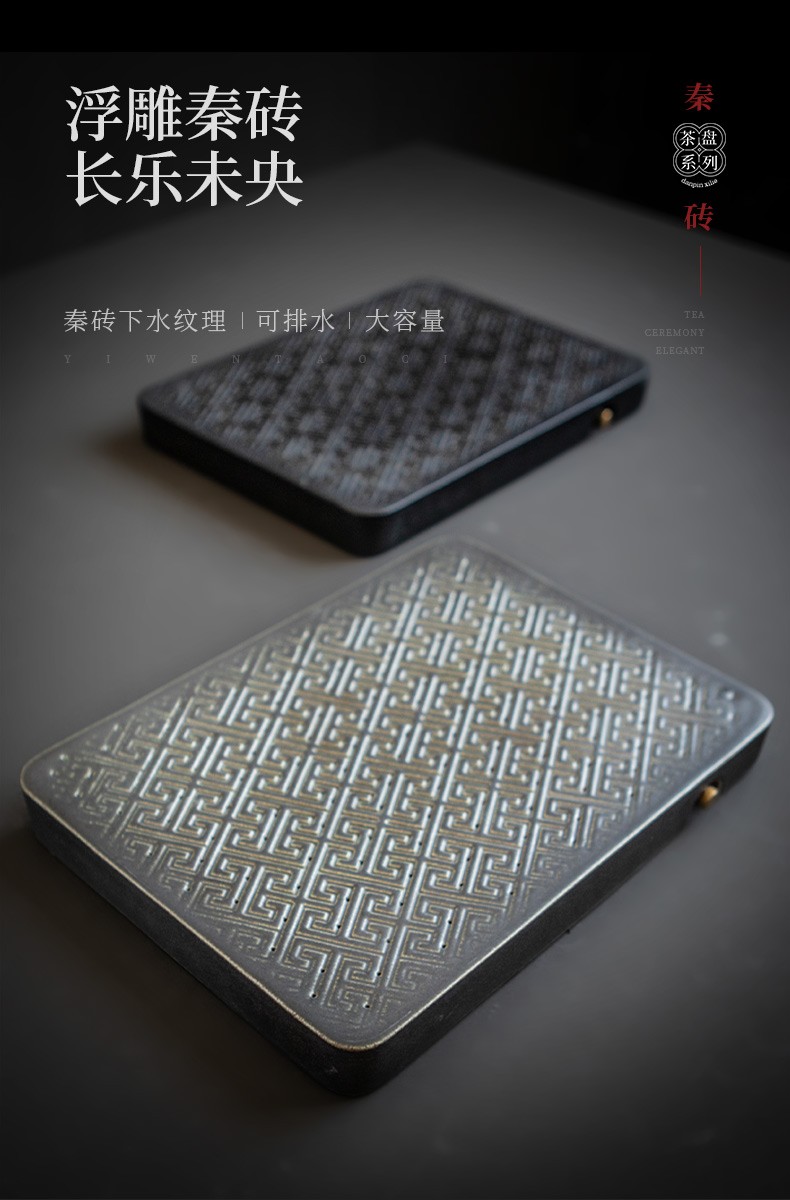 陶瓷秦砖茶盘家用储水式干泡盘功夫茶具简约陶瓷小茶台托盘 秦砖茶盘-灰白VD3a