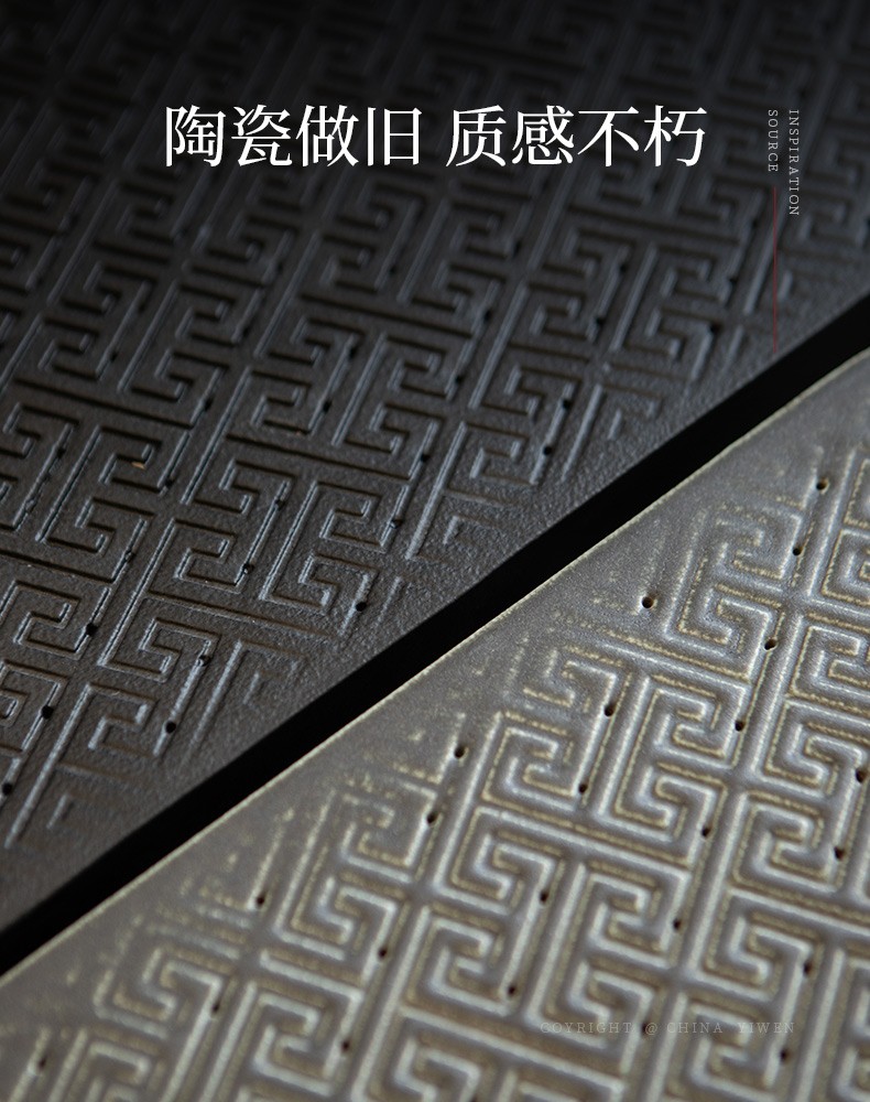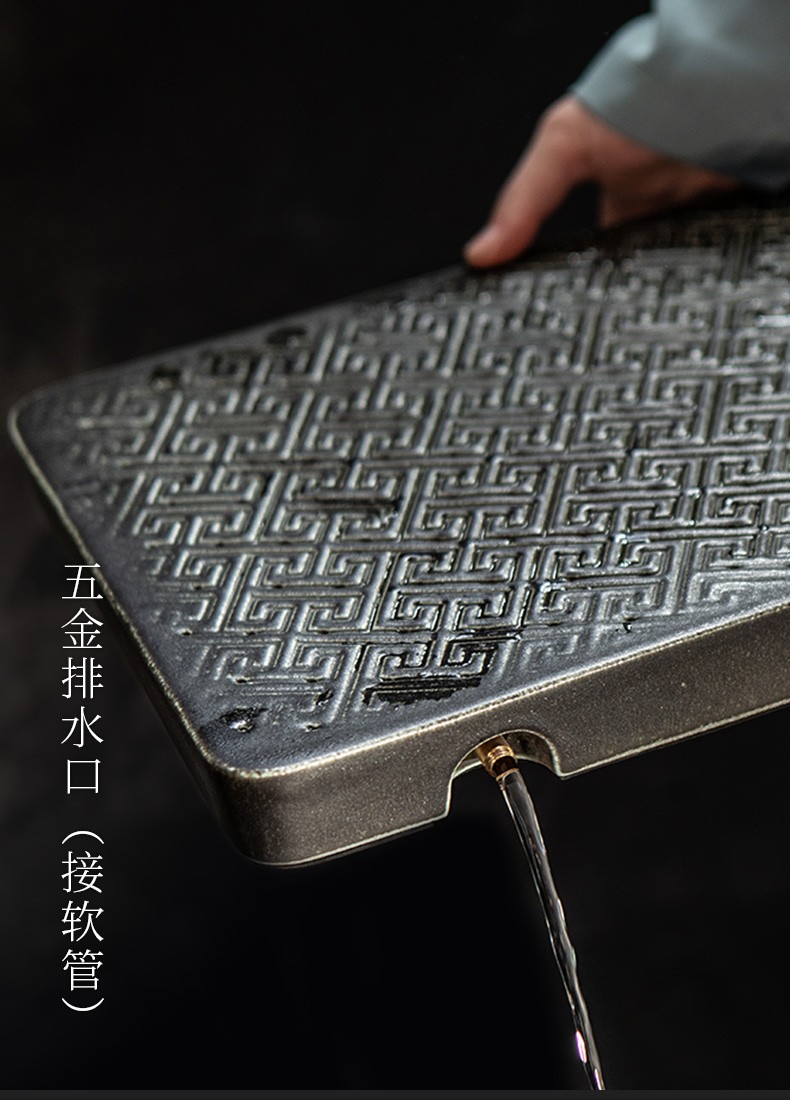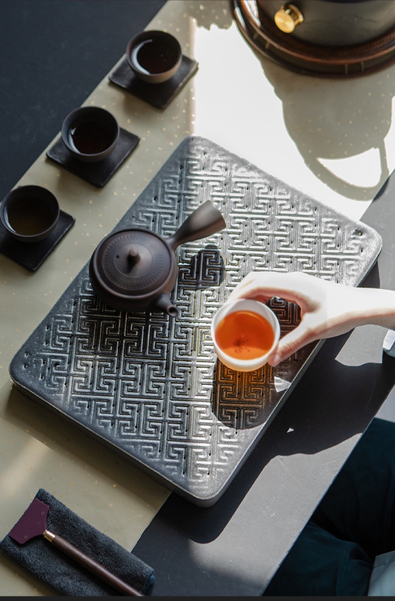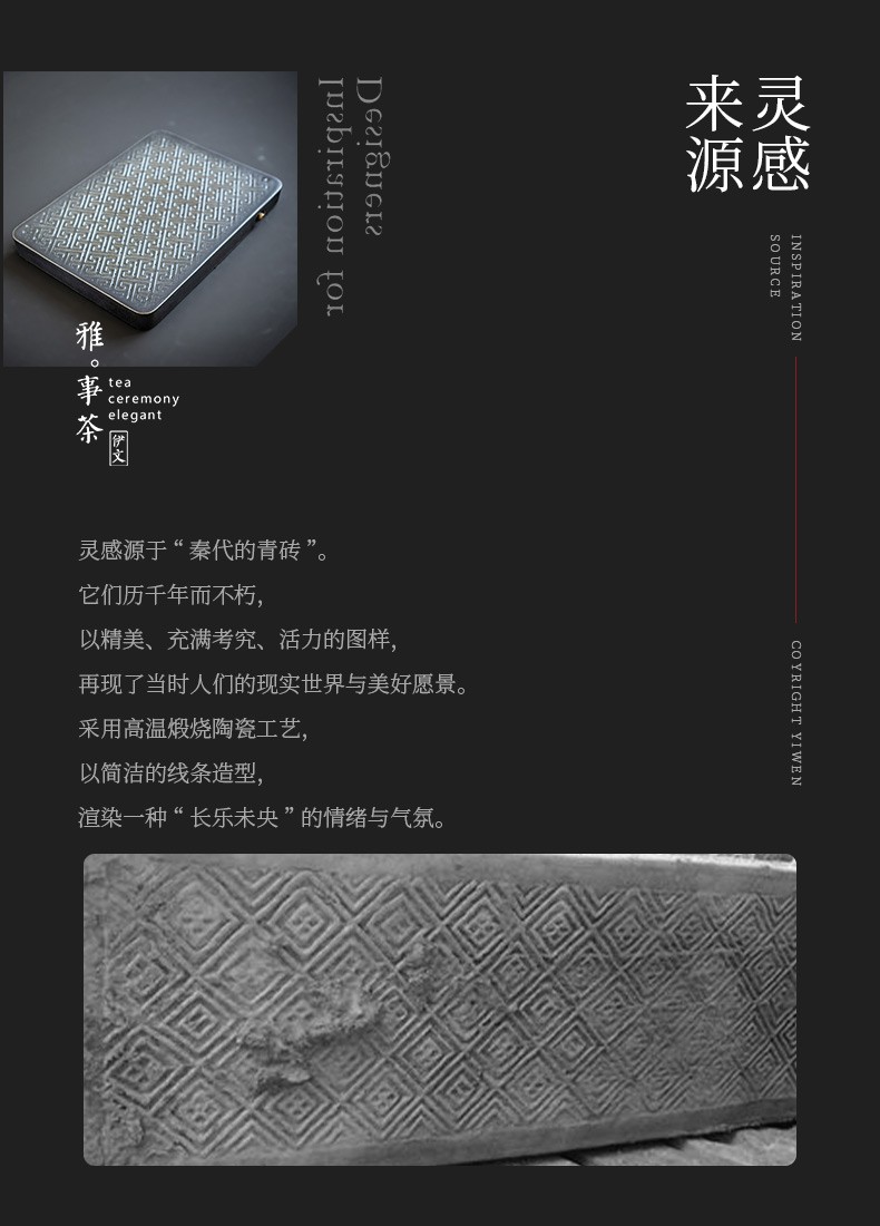 陶瓷秦砖茶盘家用储水式干泡盘功夫茶具简约陶瓷小茶台托盘 秦砖茶盘-灰白VD3a