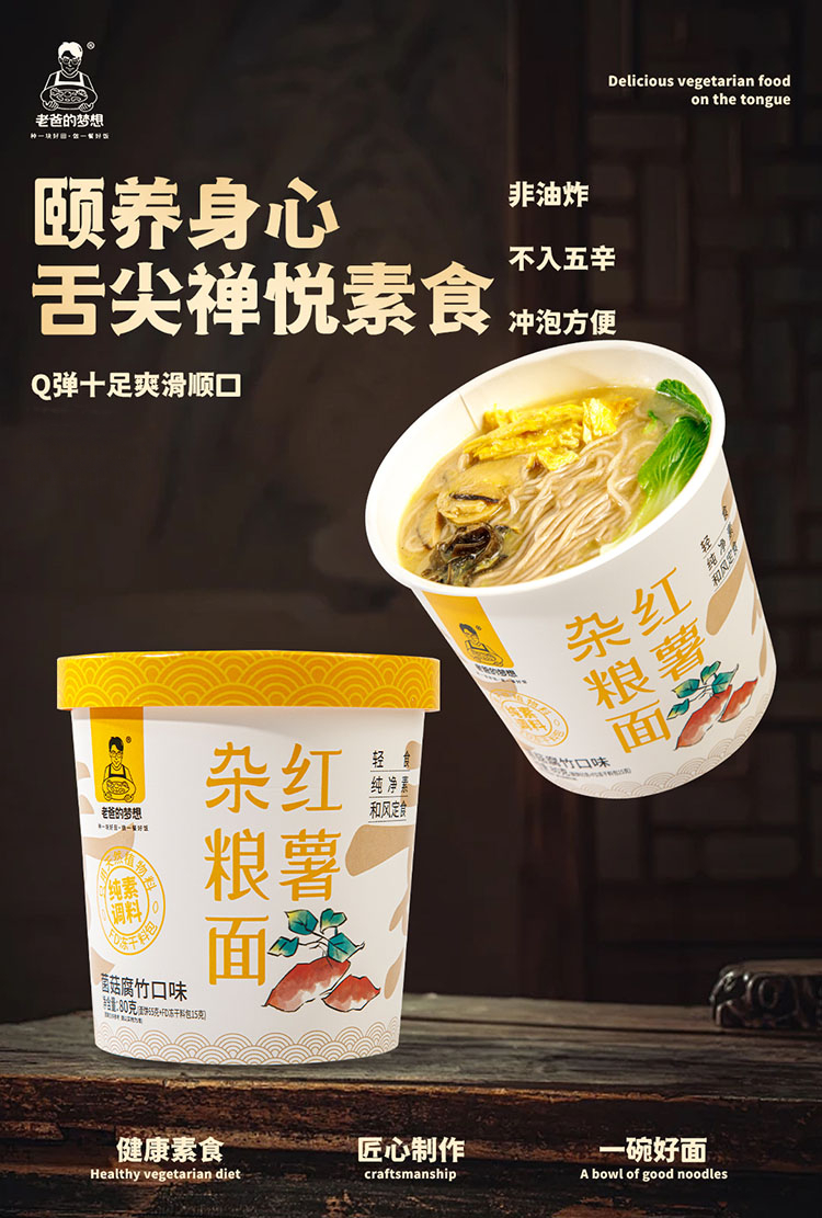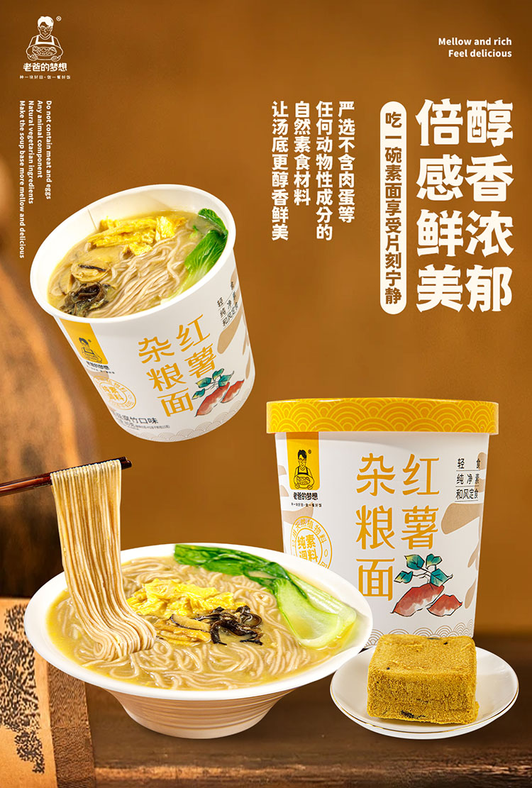 老爸的梦想 红薯杂粮面 菌菇腐竹味方便面 80g*4桶