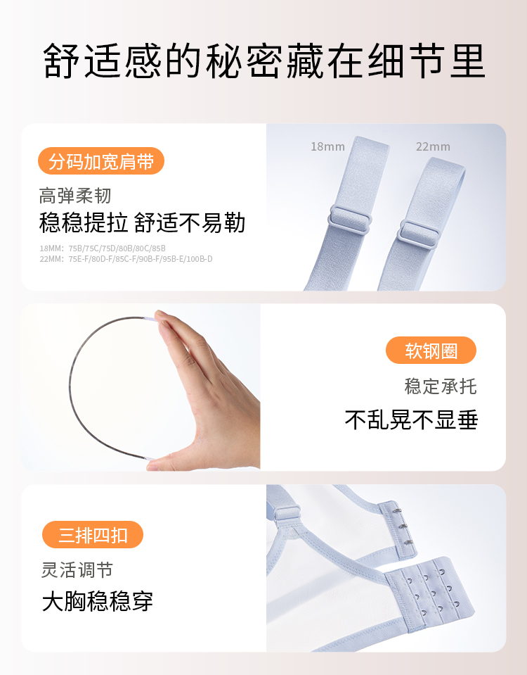 [微甜加高款]大胸显小全罩杯显瘦大底围防凸点软胸性感蕾丝内衣