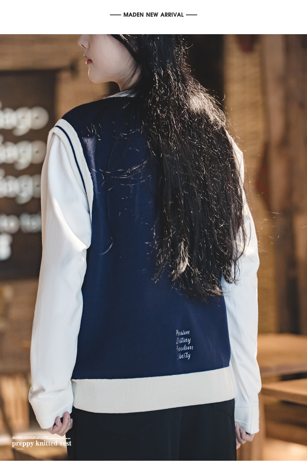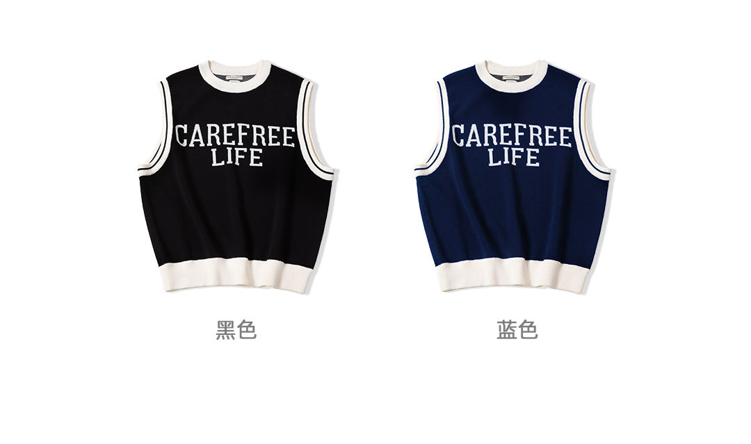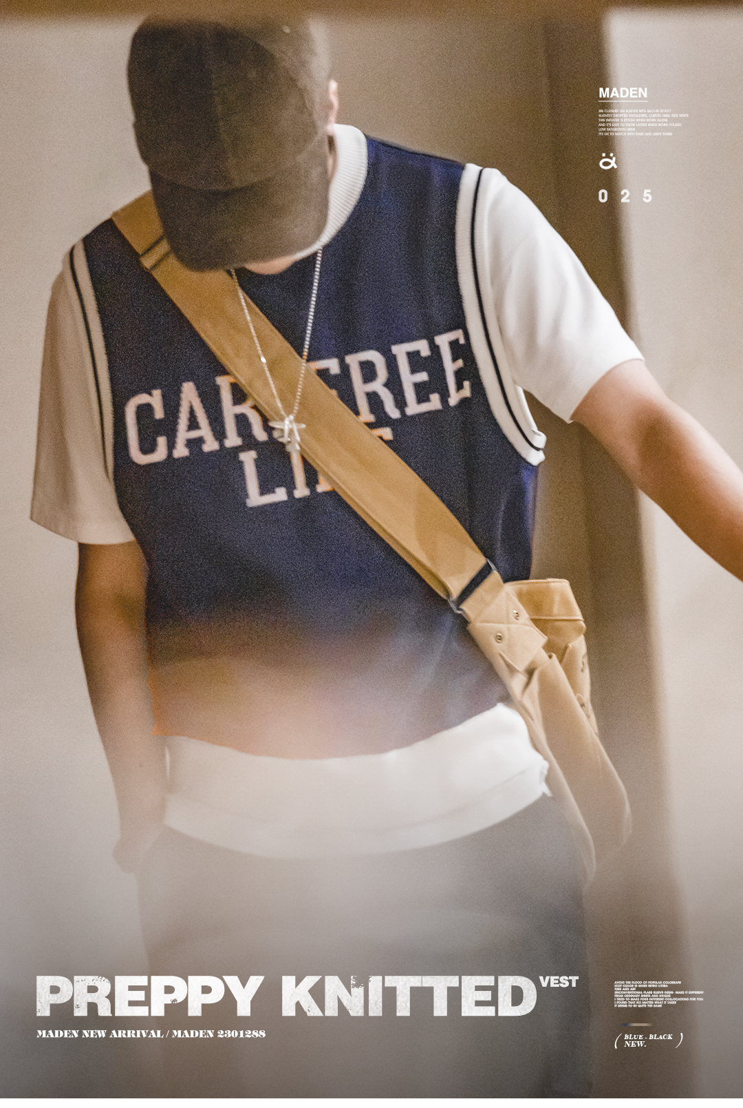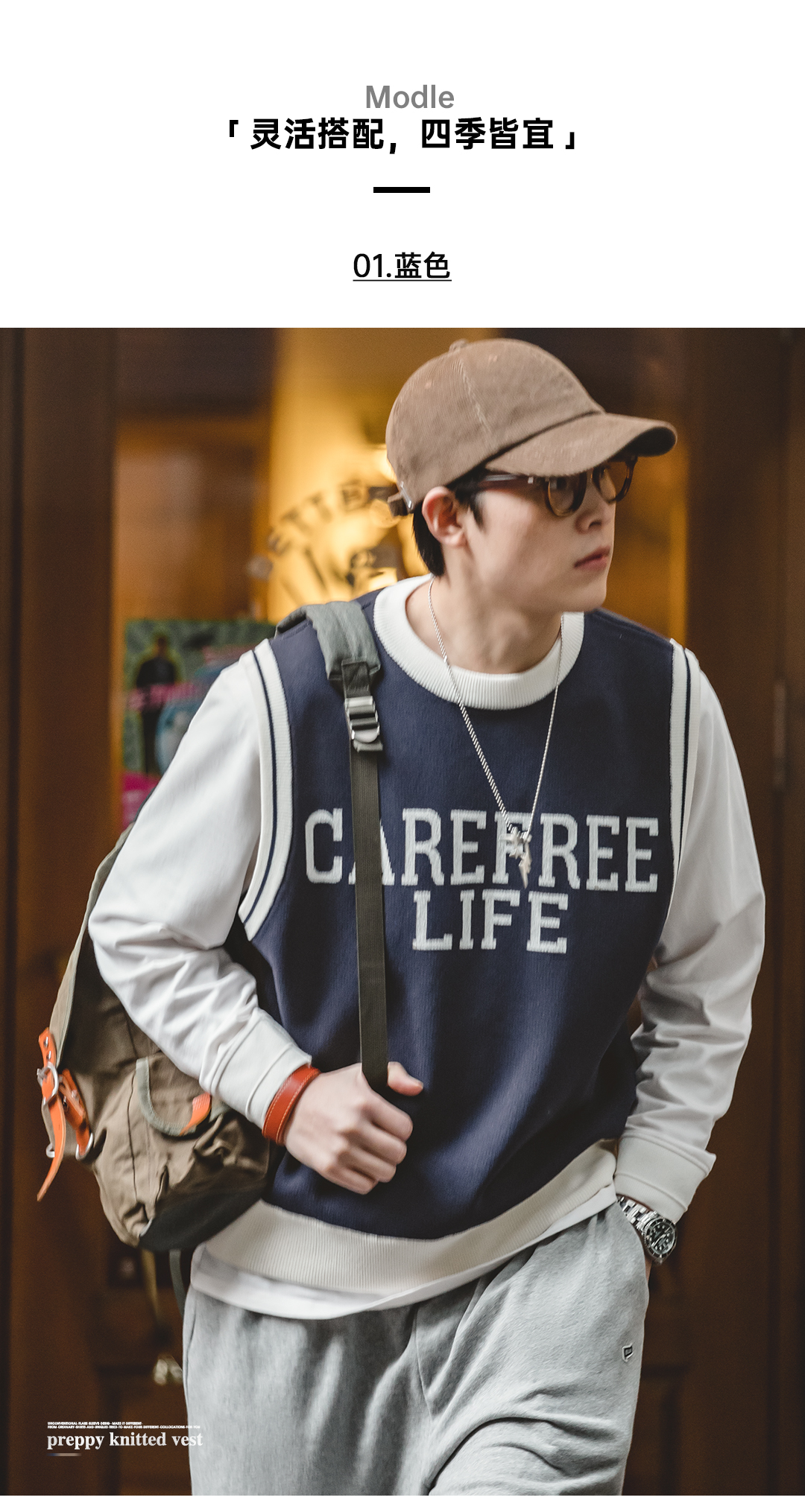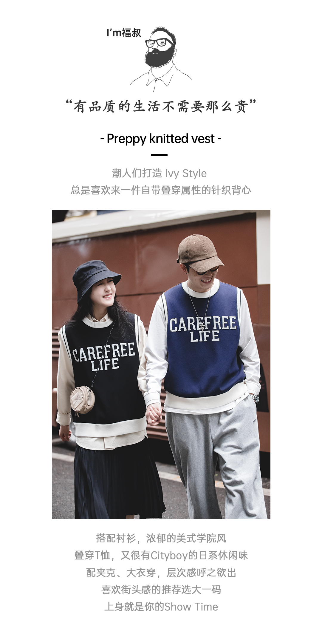 马登学院风情侣针织马甲背心圆领套头毛衣无袖叠穿上衣春季