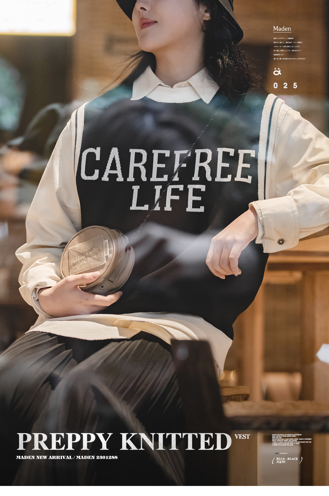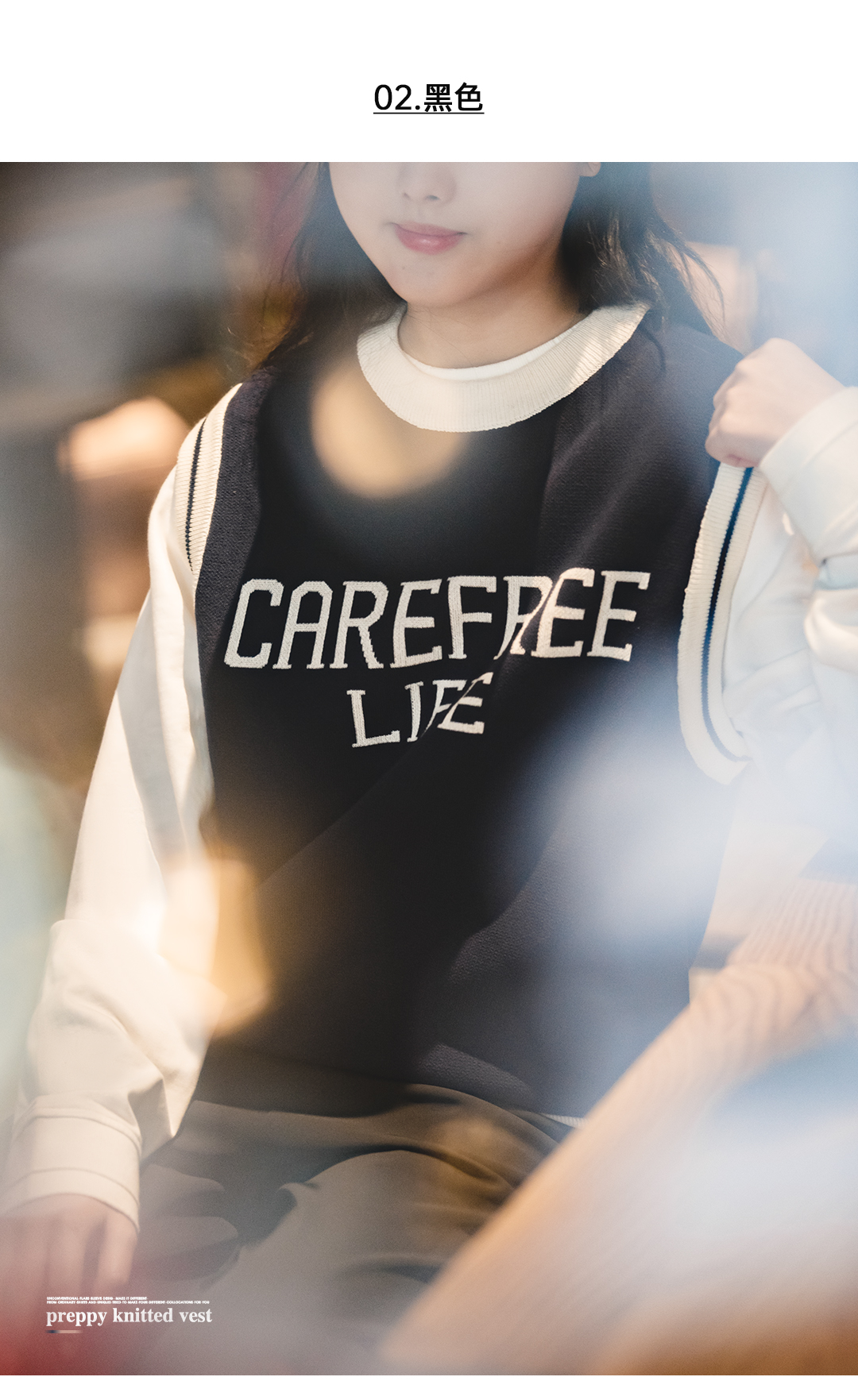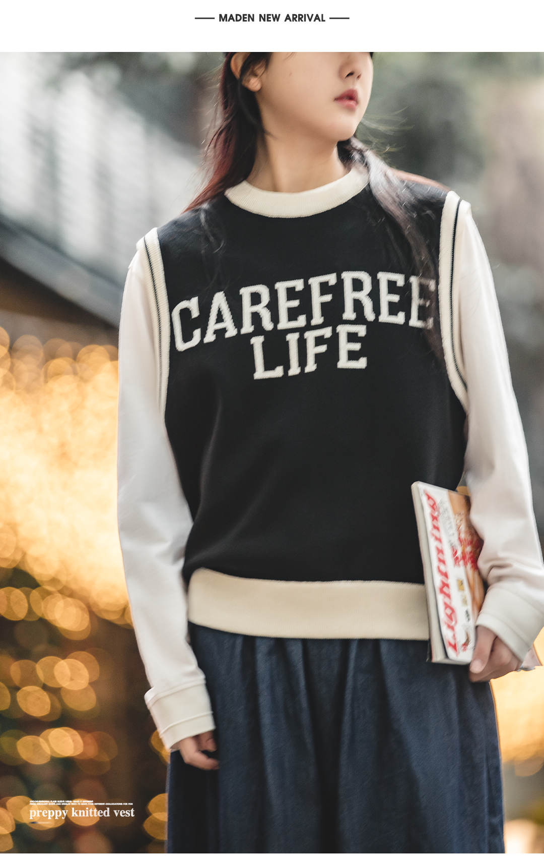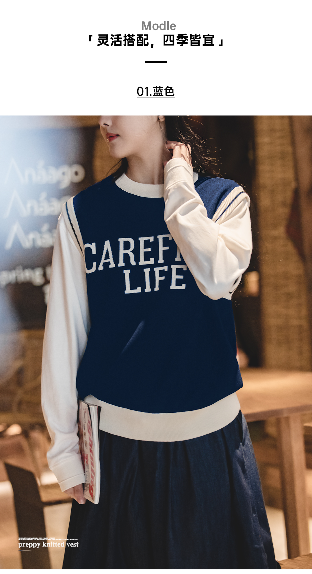 马登学院风情侣针织马甲背心圆领套头毛衣无袖叠穿上衣春季