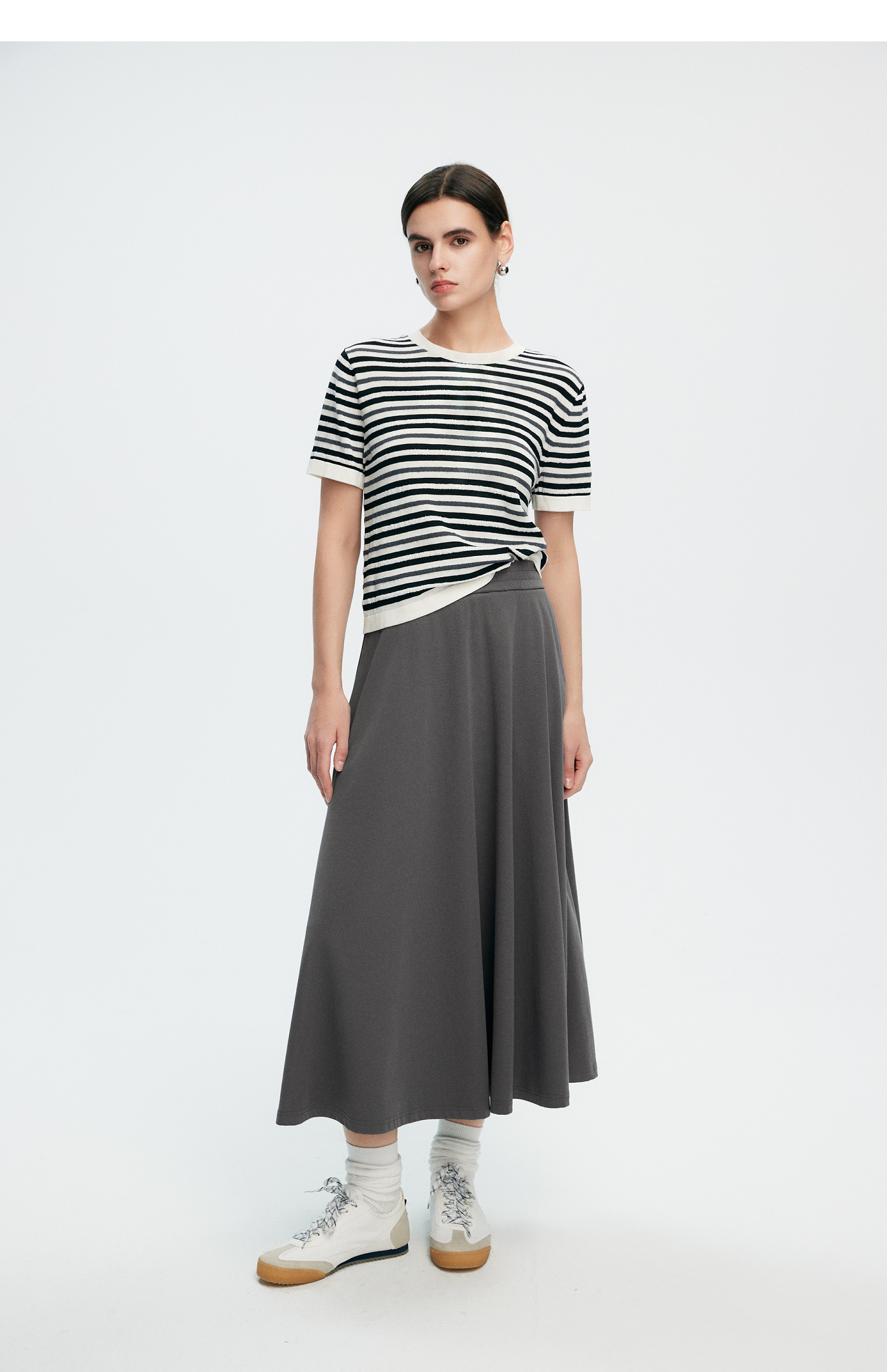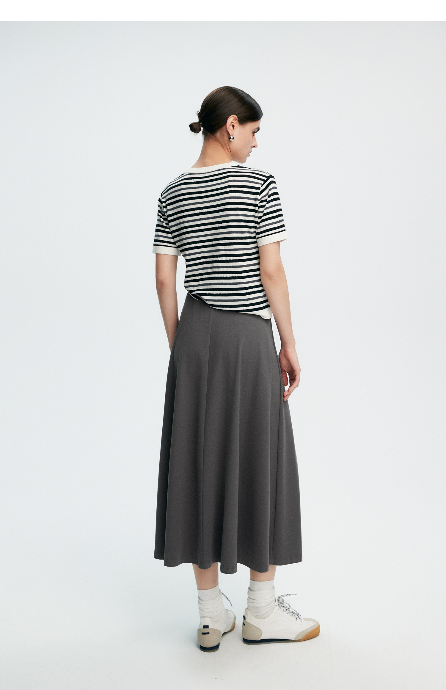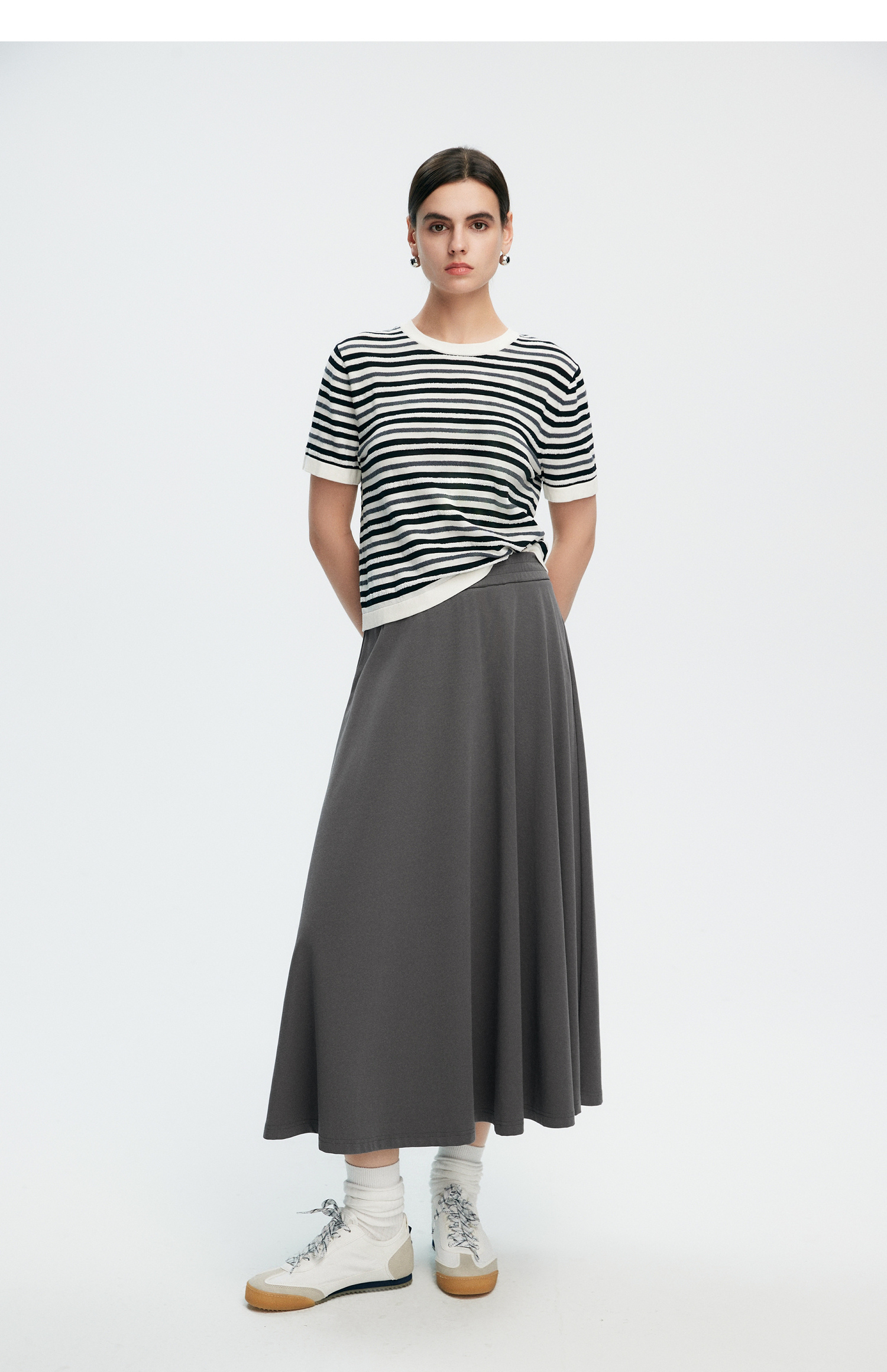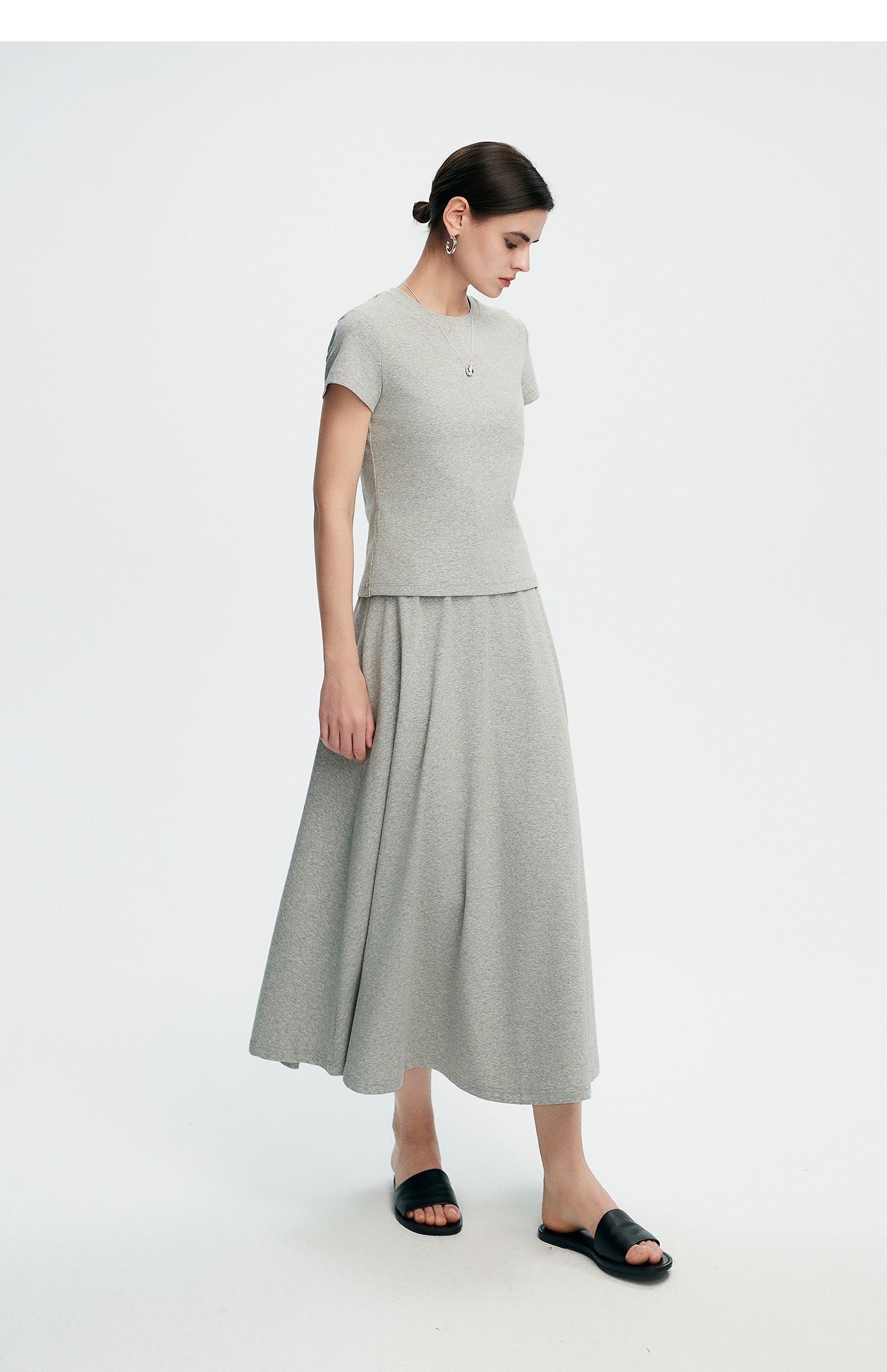棉仓3431501010 24SS夏季新品多色镶边短袖T恤女真丝棉打底上衣