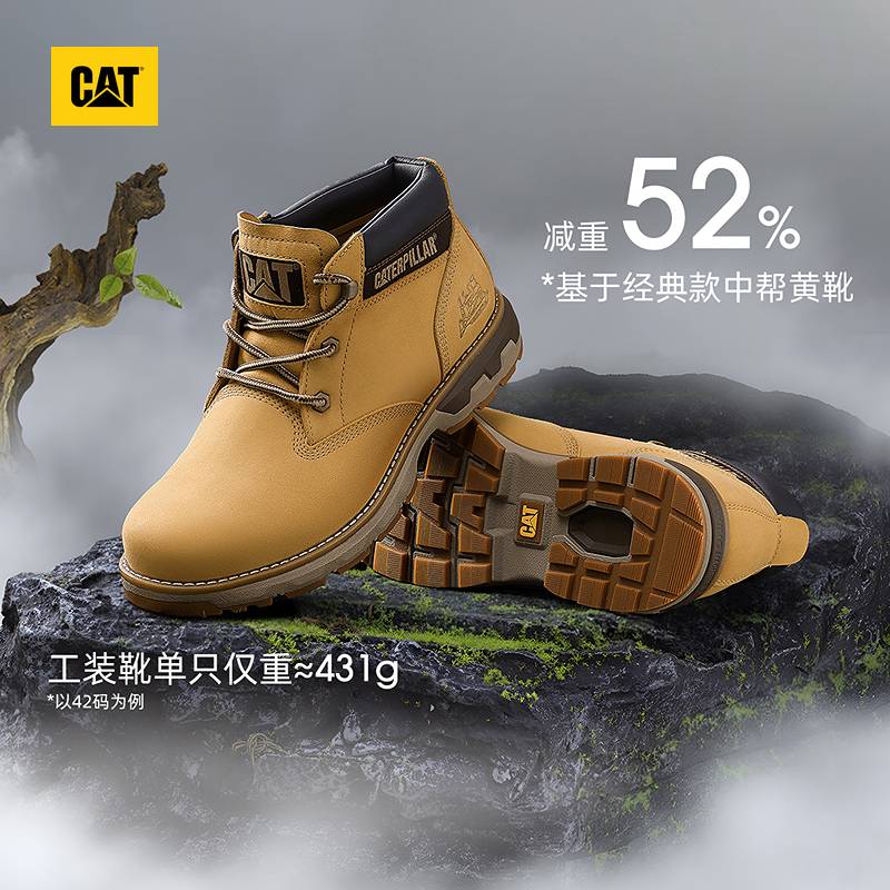 【云粉节】【95折】6楼卡特CAT经典黄靴轻量中帮男款黄色P727021O3EDC25,吊牌价1258现价1195
